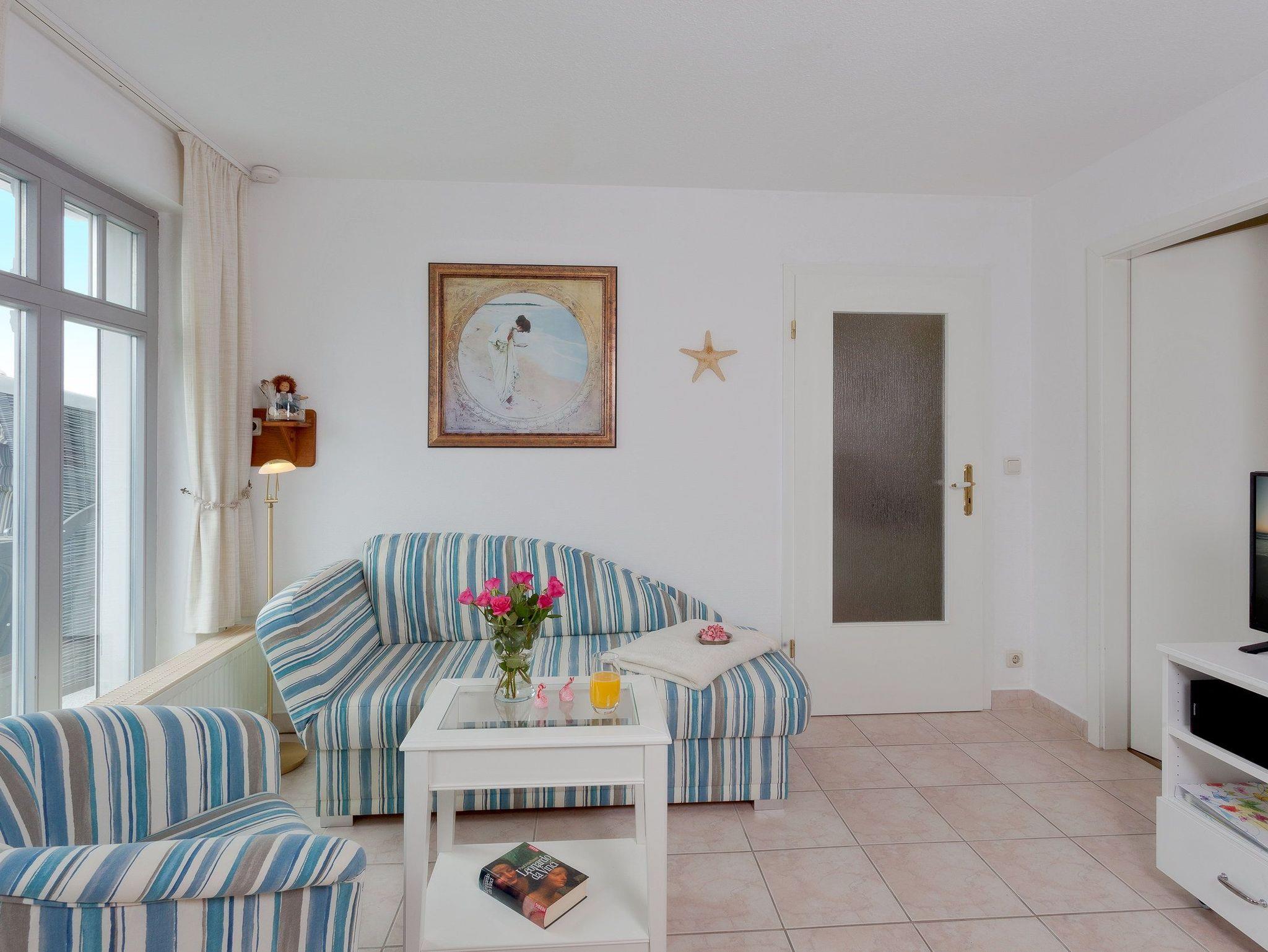 Vom Wohnbereich erreichen Sie Ihre private Südwestterrasse mit eigenem Strandkorb lassen Sie den Tag beim Rauschen des Meeres und einem gemeinsamen Abendessen auf der Sonnenseite entspannt Revue passieren. Zur Nachtruhe lassen Sie sich in das bequeme Doppelbett (180 x 190cm / zwei getrennte Matratzen) fallen und starten gut erholt in den nächsten Urlaubstag.