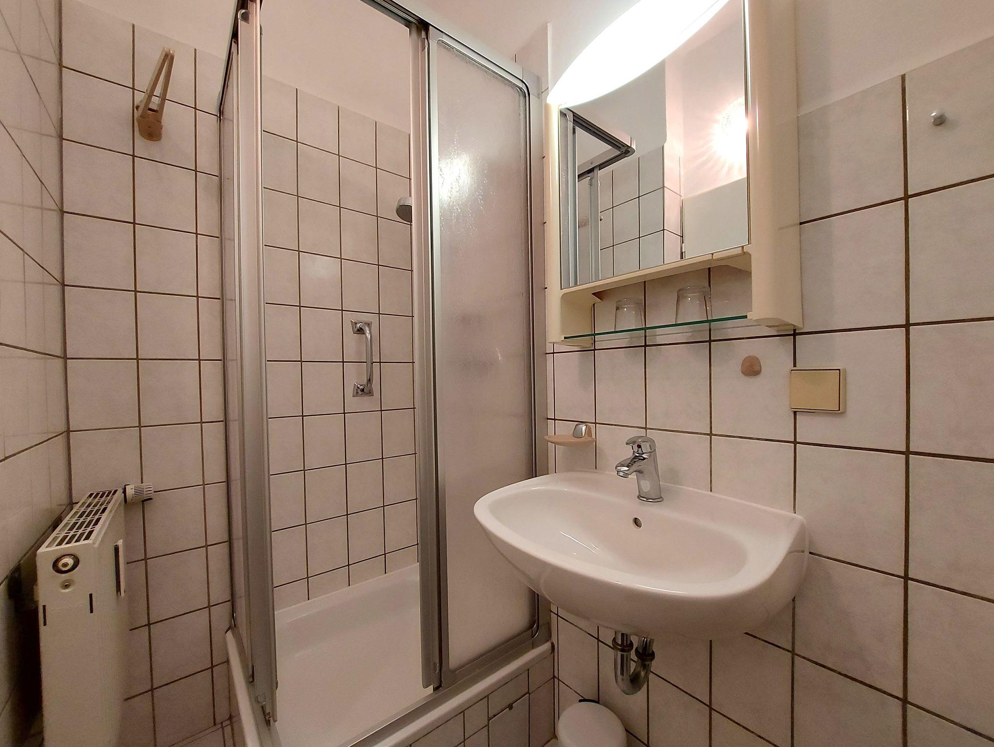Die Ferienwohnung 9 befindet sich im Obergeschoss des Hauses und ist ca. 30m² groß. Sie teilt sich auf in ein Eingangsbereich mit einer Küche, kombinierten Wohn- und Schlafraum, sowie Badezimmer. Die Küche ist ausgestattet mit Herd, Backofen, Kühlschrank, Mikrowelle, Kaffeemaschine, Wasserkocher und Toaster. Das kombinierte Wohn- und Schlafzimmer verfügt über eine gemütliches Doppelbett, Sessel, Essbereich und Flachbildfernseher. Das Badezimmer ist mit einer Dusche und Haartrockner ausgestattet.