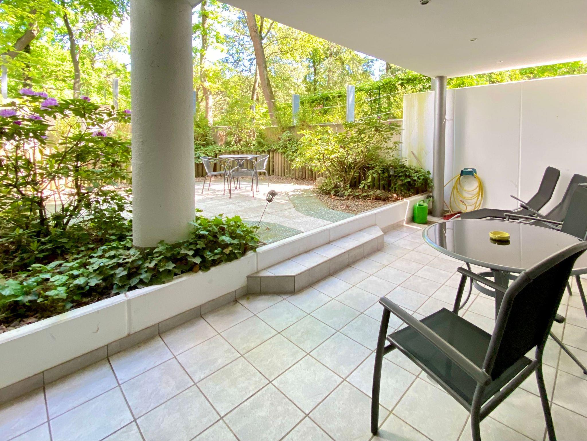 Ein Höhepunkt ist die große überdachte und abgeschlossene freie Terrasse mit Liegen.