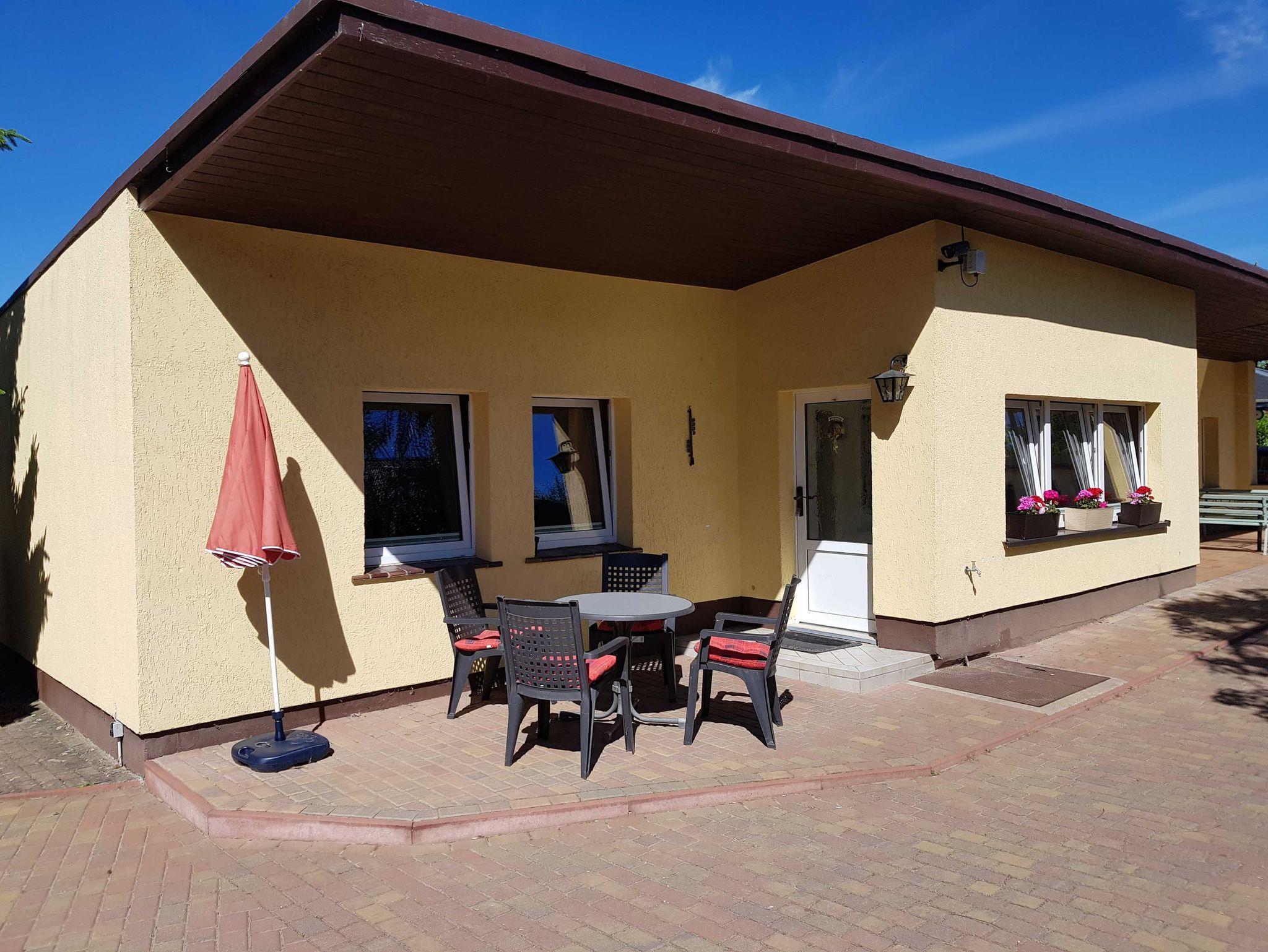 Dieser helle und einladende Bungalow erwartet Sie mit einem gemütlichen Wohnzimmer, das mit einer komfortablen Couch und einem Flachbild-TV (Sat-TV) ausgestattet ist. Der separate Esstisch mit vier Stühlen lädt zu gemeinsamen Mahlzeiten ein. Im Bungalow finden Sie ein Schlafzimmer mit einem Doppelbett (auf Wunsch mit einem Kinderbett) sowie ein Kinderzimmer mit zwei Betten, welches als Durchgangszimmer zum Schlafzimmer dient. Die separate Küche bietet alles, was Sie brauchen: Herd, Backofen, Kühlschrank mit Tiefkühlfach, Geschirrspülmaschine, Mikrowelle, Kaffeemaschine, Toaster und Wasserkocher - hier wird das Kochen zum Vergnügen! Das Badezimmer mit Fenster verfügt über eine Dusche, WC und genügend Stauraum, während die beiden überdachten Terrassen das Gesamtbild abrunden. Hier können Sie bereits am Morgen Ihren Kaffee genießen oder den Abend entspannt bei einem Glas Wein ausklingen lassen. Ein kostenfreier Parkplatz direkt am Haus auf dem abgeschlossenen Grundstück des Eigentümers steht Ihnen zur Verfügung. Für Ihre eigenen Fahrräder gibt es ebenfalls eine sichere Unterstellmöglichkeit. Das W-LAN nutzen Sie kostenfrei um Ihre Urlaubserlebnisse mit der Familie oder Freunden daheim zu teilen. Ihr lieber Vierbeiner ist gegen eine Gebühr herzlich willkommen. Bitte beachten Sie, dass die Eigentümer ebenfalls einen freundlichen Hund besitzen, der sich auf dem Grundstück frei bewegt.