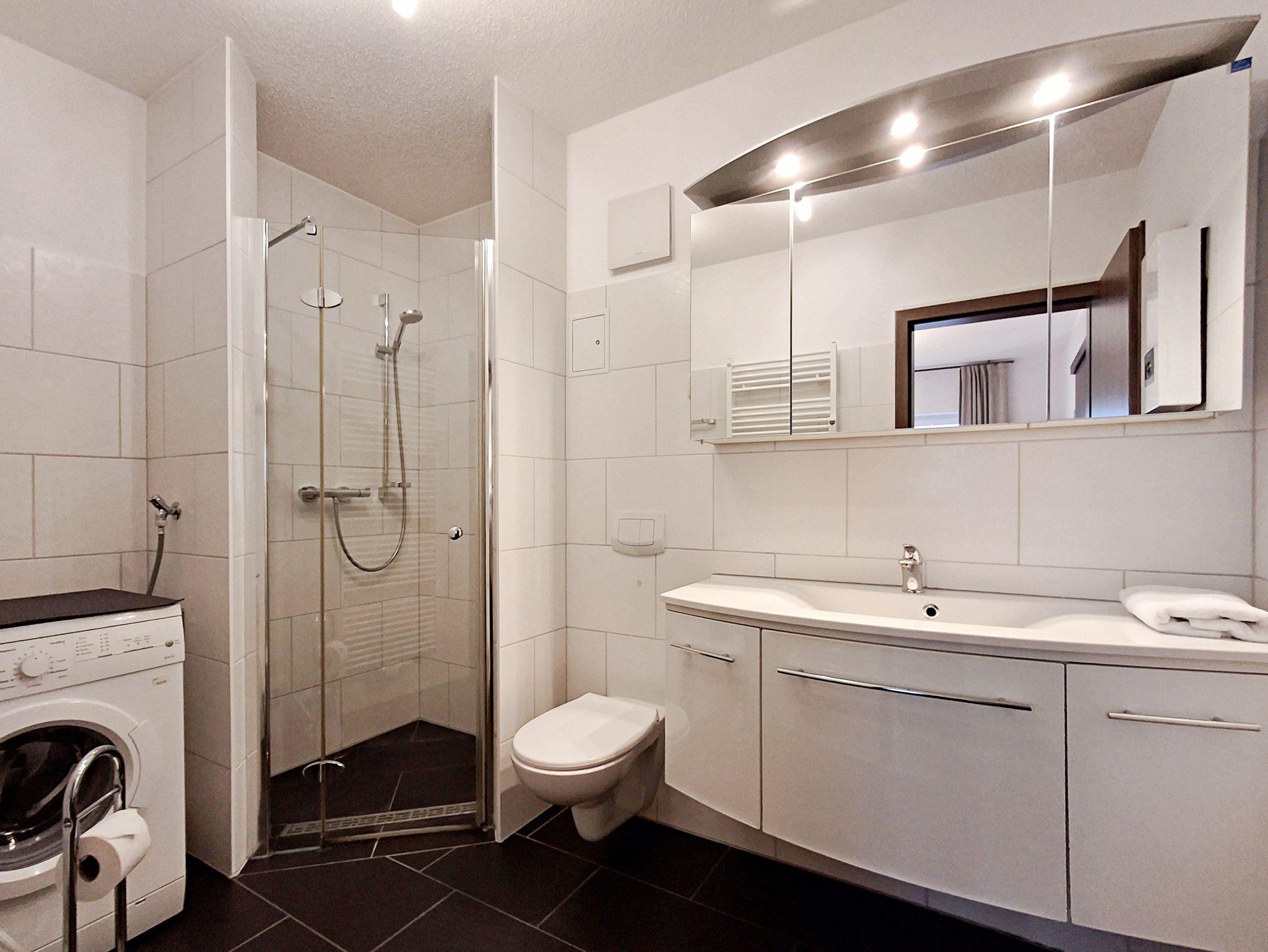 • Modernes Bad mit Dusche, WC und Waschmaschine