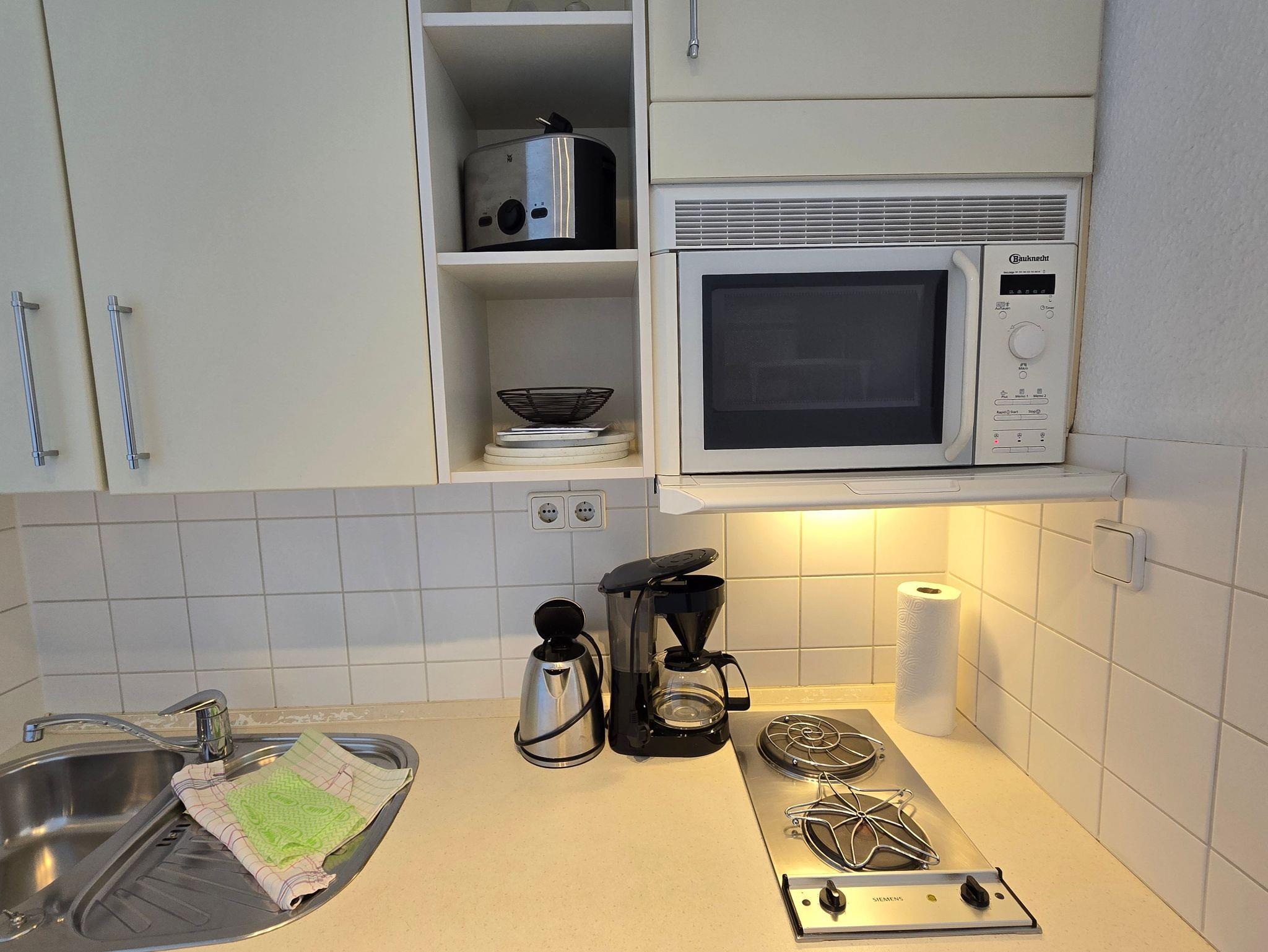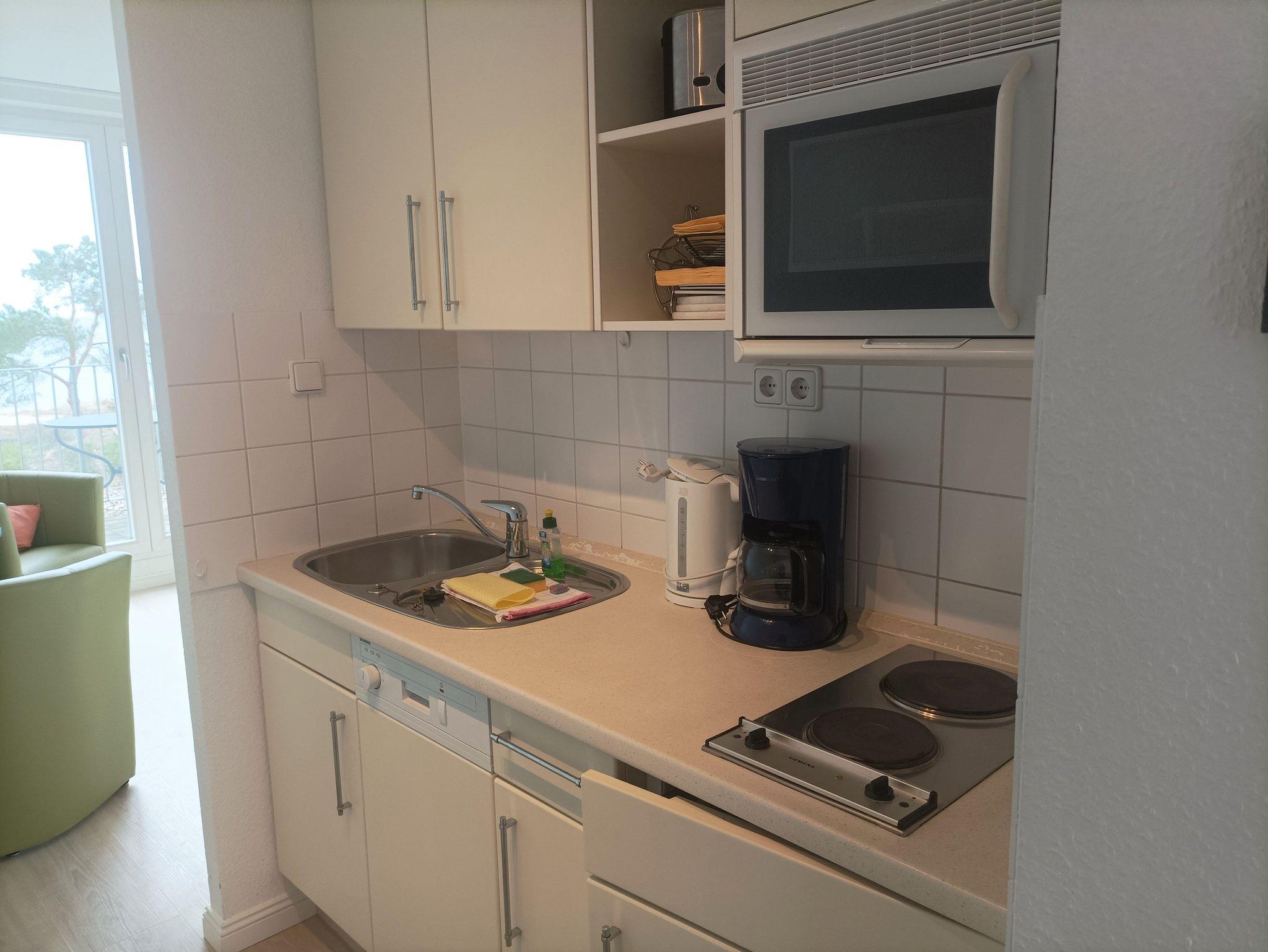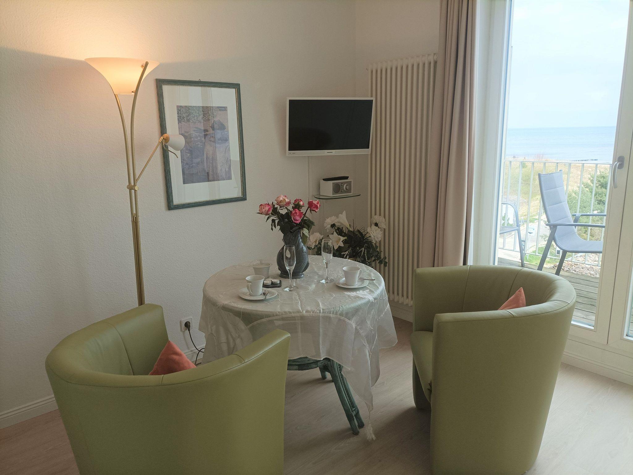 Komfortables, modernes 1 1/2-Raum-Appartement (32 qm) in der 3. Etage mit Balkon und einem herrlichen Meerblick. Ein kombinierter Wohn-und Schlafraum, einer Küchenzeile (mit Geschirrspüler, Mikrowelle, E-Herd, Kühlschrank, Kaffeemaschine etc.), W-Lan, Kabel-TV, Radio, Safe sowie ein Bad mit DU/WC + Haarfön. Parkplatz. Die Erstausstattung Bettwäsche und Handtücher ist inklusive.