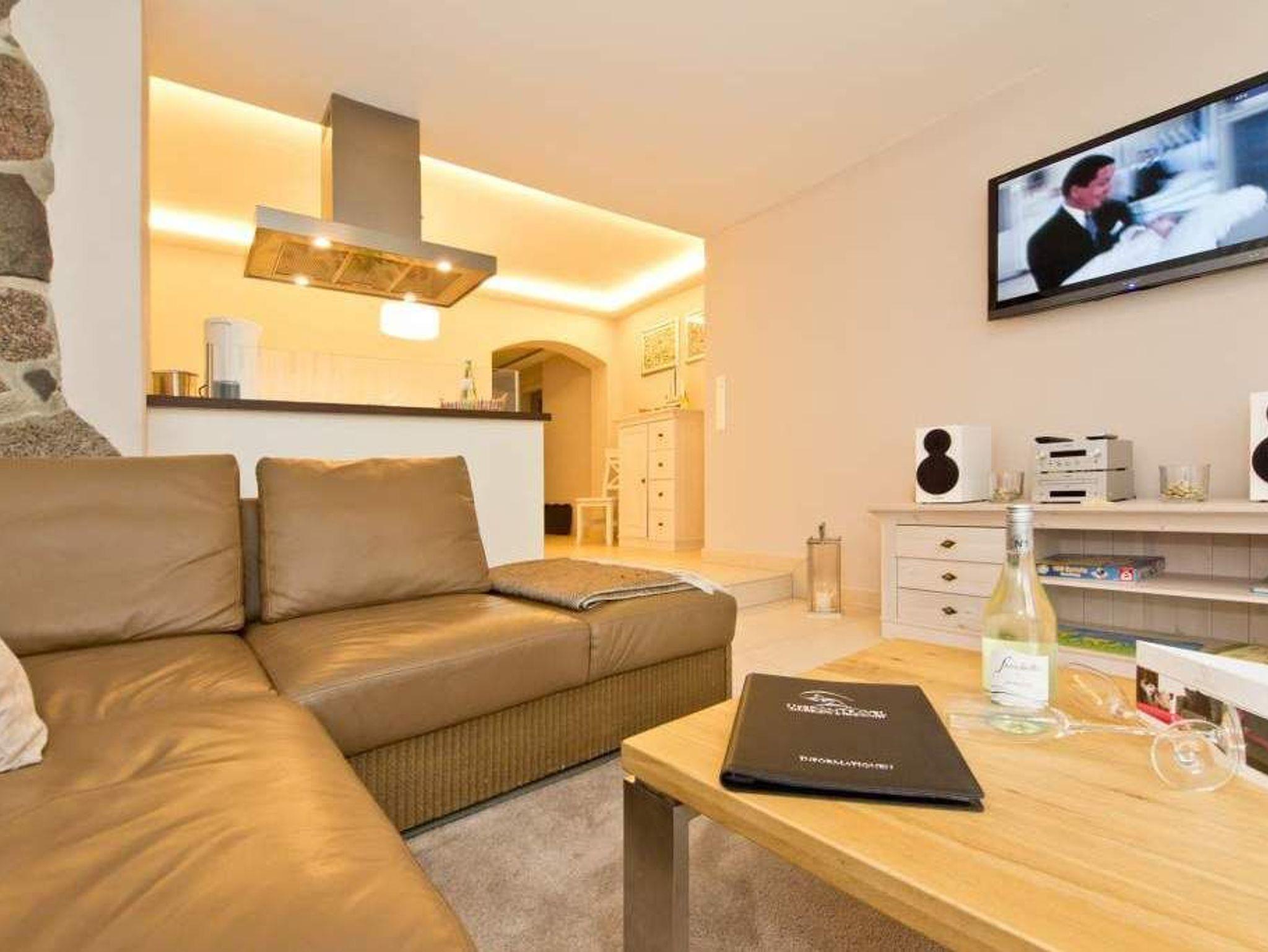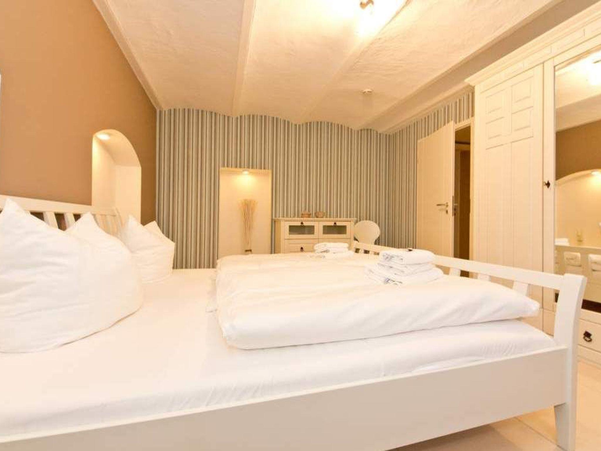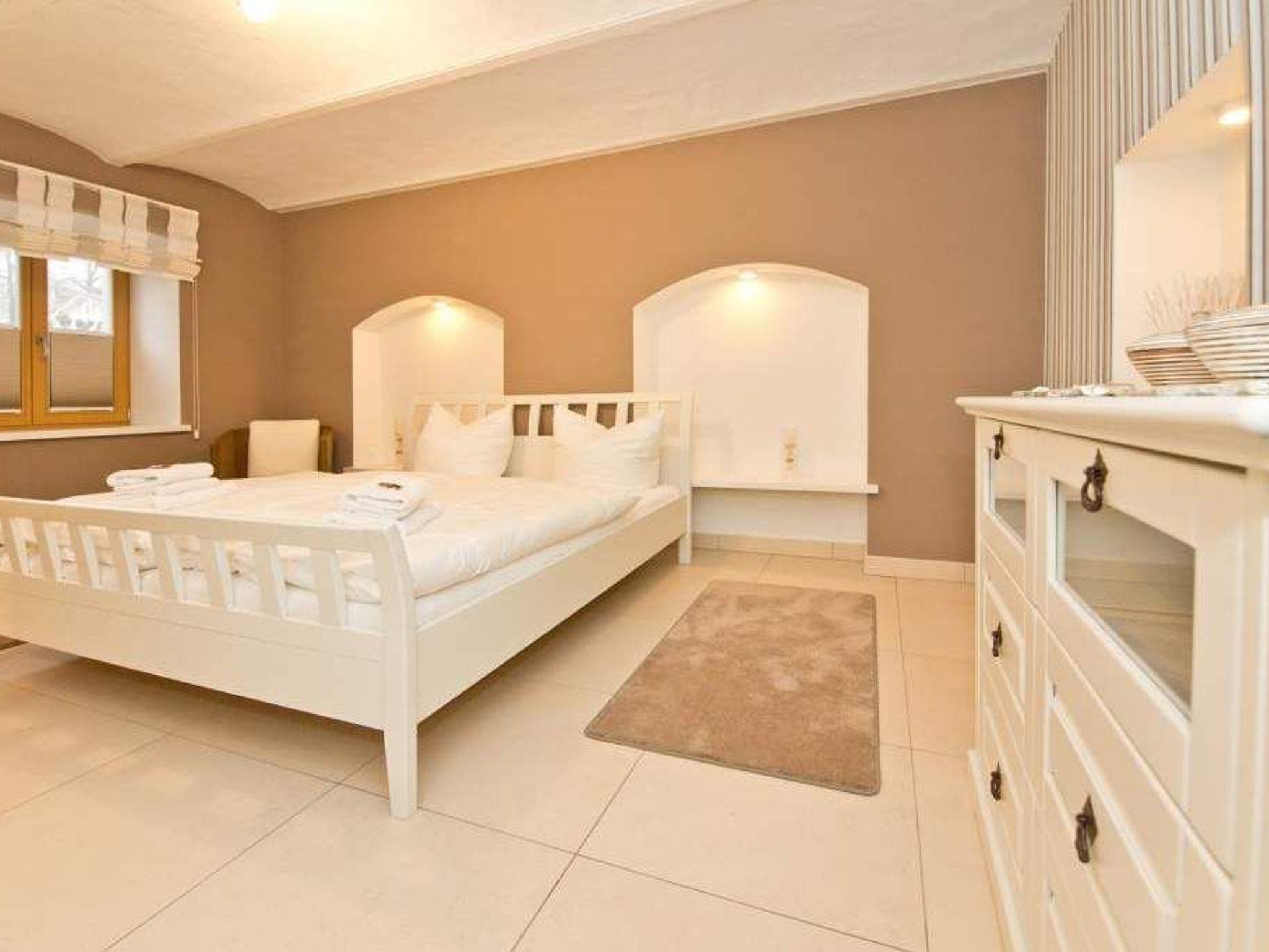 LA MER - alles ist luftig und leicht! Im Souterrain erwartet Sie eine ganz besonderes 2-Raum-Ferienwohnung ( 60qm) für 2 Personen und ein Kleinkind bis 3 Jahre (Reisebett und Hochstuhl zubuchbar). Stilsicherer Luxus: leise und dezent, edel und geschmackvoll! Helle Töne schaffen hier eine ruhige Urlaubsatmosphäre. Die große Terrasse verlängert den Wohnraum und wird sicherlich zu Ihrem Lieblingsplatz im Sommer. Auch das Schlafzimmer mit Doppelbett (1,80 m breit) ist ein Hingucker, durch die alte Gewölbedecke und die Nischen ist es besonders schön gestaltet. Die offene Küche ist selbstverständlich komplett ausgestattet und wird durch den Essbereich komplettiert. Ein Wellnessbad mit Glasdusche und WC ergänzt die Wohnung. Für Ihren Komfort ist das Appartement mit dem 1. Satz Handtücher ausgestattet und liebevoll bezogen.