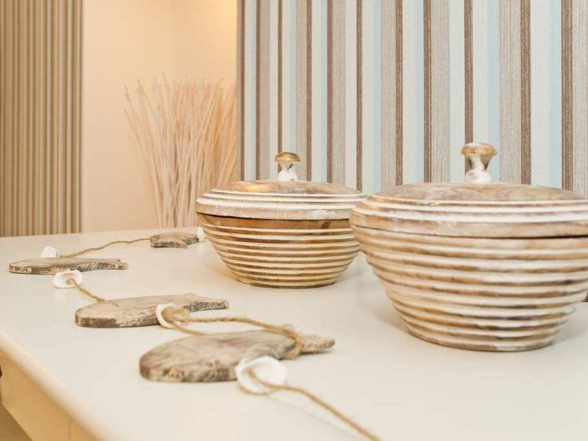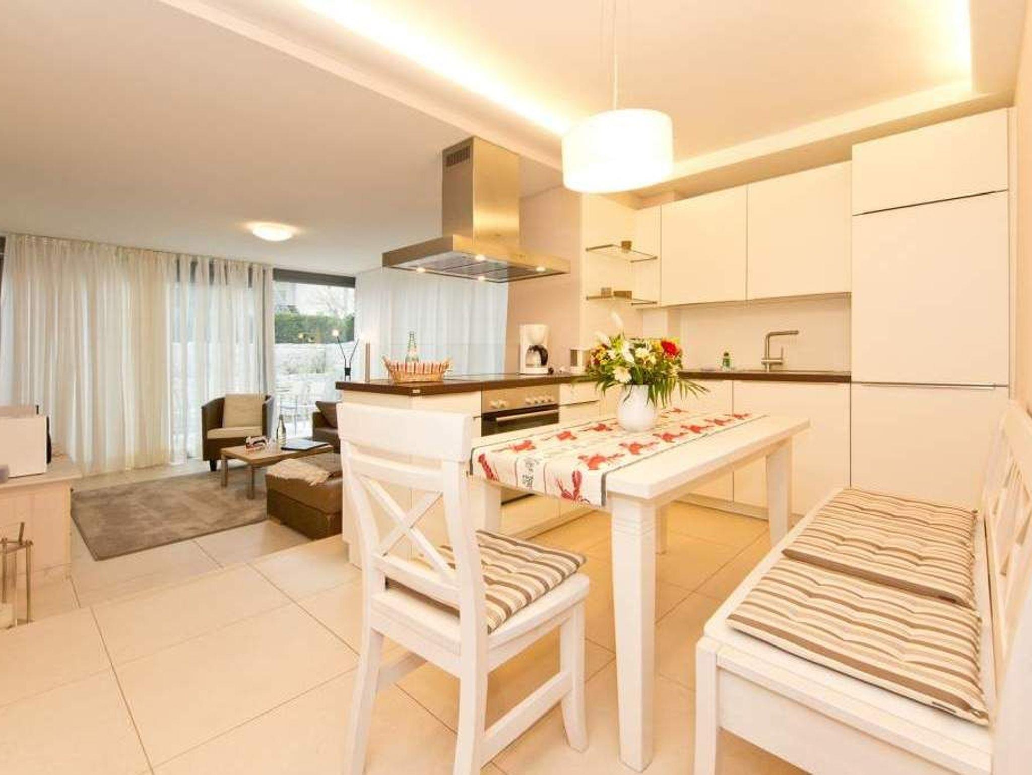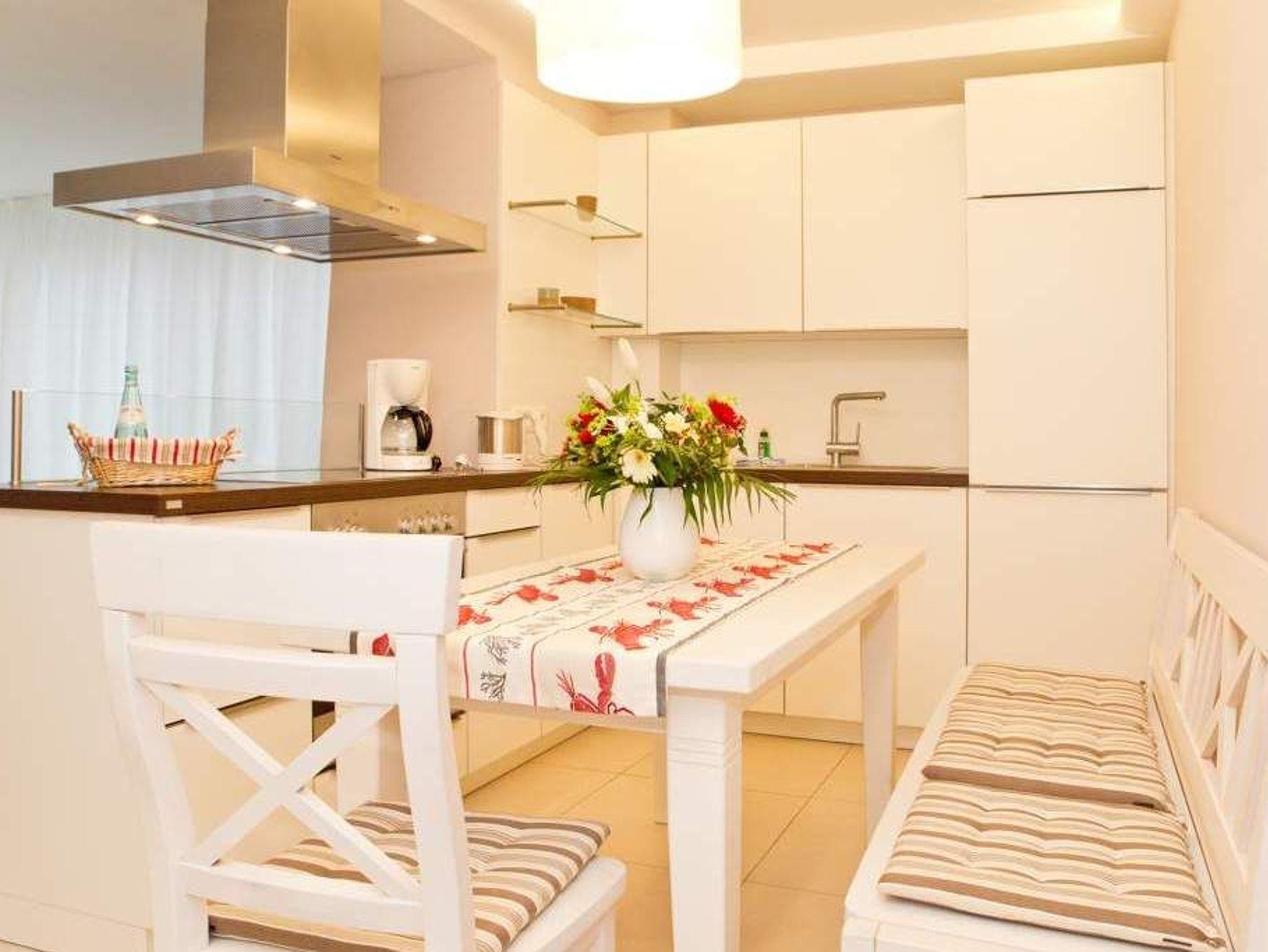 LA MER - alles ist luftig und leicht! Im Souterrain erwartet Sie eine ganz besonderes 2-Raum-Ferienwohnung ( 60qm) für 2 Personen und ein Kleinkind bis 3 Jahre (Reisebett und Hochstuhl zubuchbar). Stilsicherer Luxus: leise und dezent, edel und geschmackvoll! Helle Töne schaffen hier eine ruhige Urlaubsatmosphäre. Die große Terrasse verlängert den Wohnraum und wird sicherlich zu Ihrem Lieblingsplatz im Sommer. Auch das Schlafzimmer mit Doppelbett (1,80 m breit) ist ein Hingucker, durch die alte Gewölbedecke und die Nischen ist es besonders schön gestaltet. Die offene Küche ist selbstverständlich komplett ausgestattet und wird durch den Essbereich komplettiert. Ein Wellnessbad mit Glasdusche und WC ergänzt die Wohnung. Für Ihren Komfort ist das Appartement mit dem 1. Satz Handtücher ausgestattet und liebevoll bezogen.