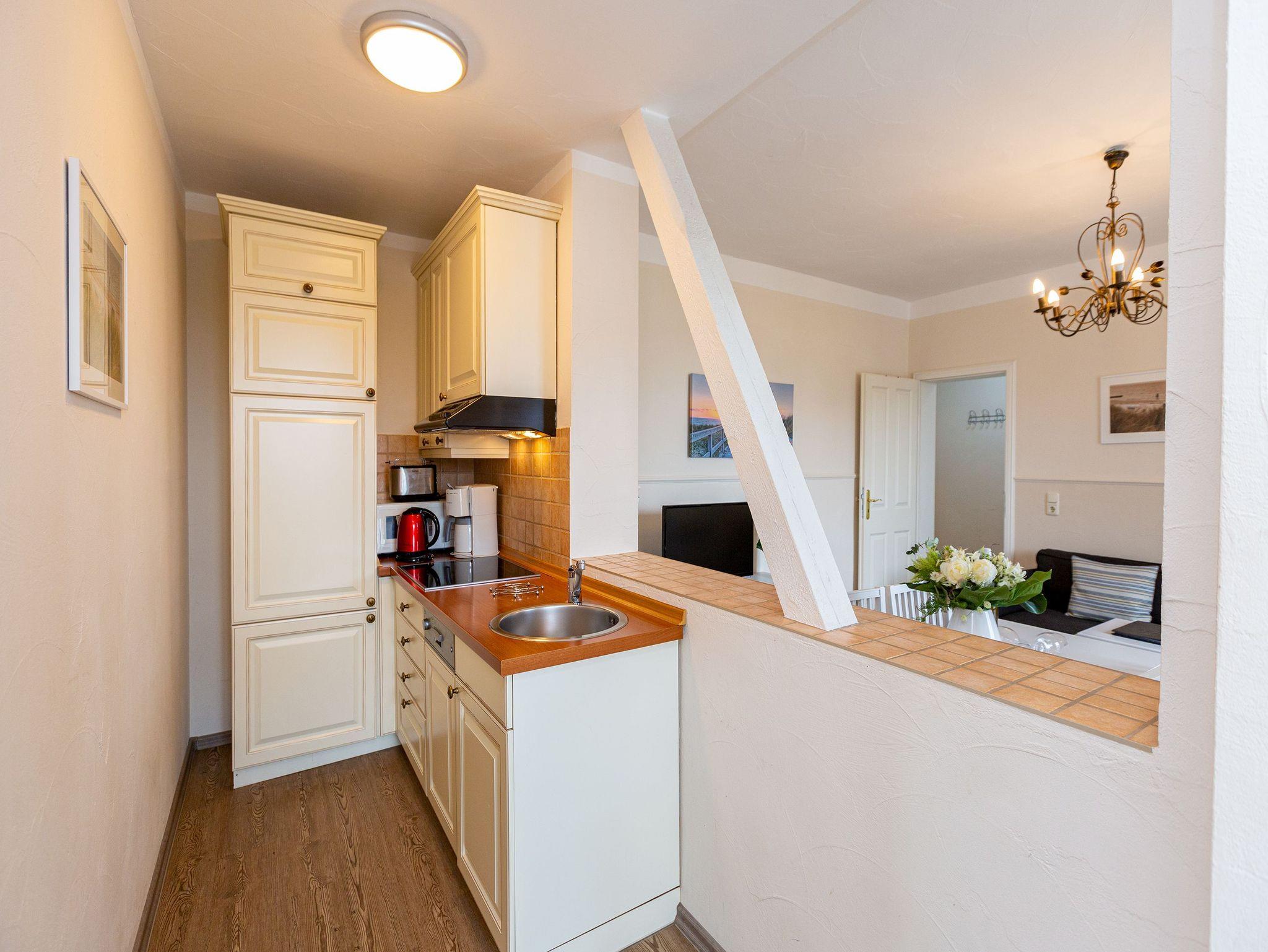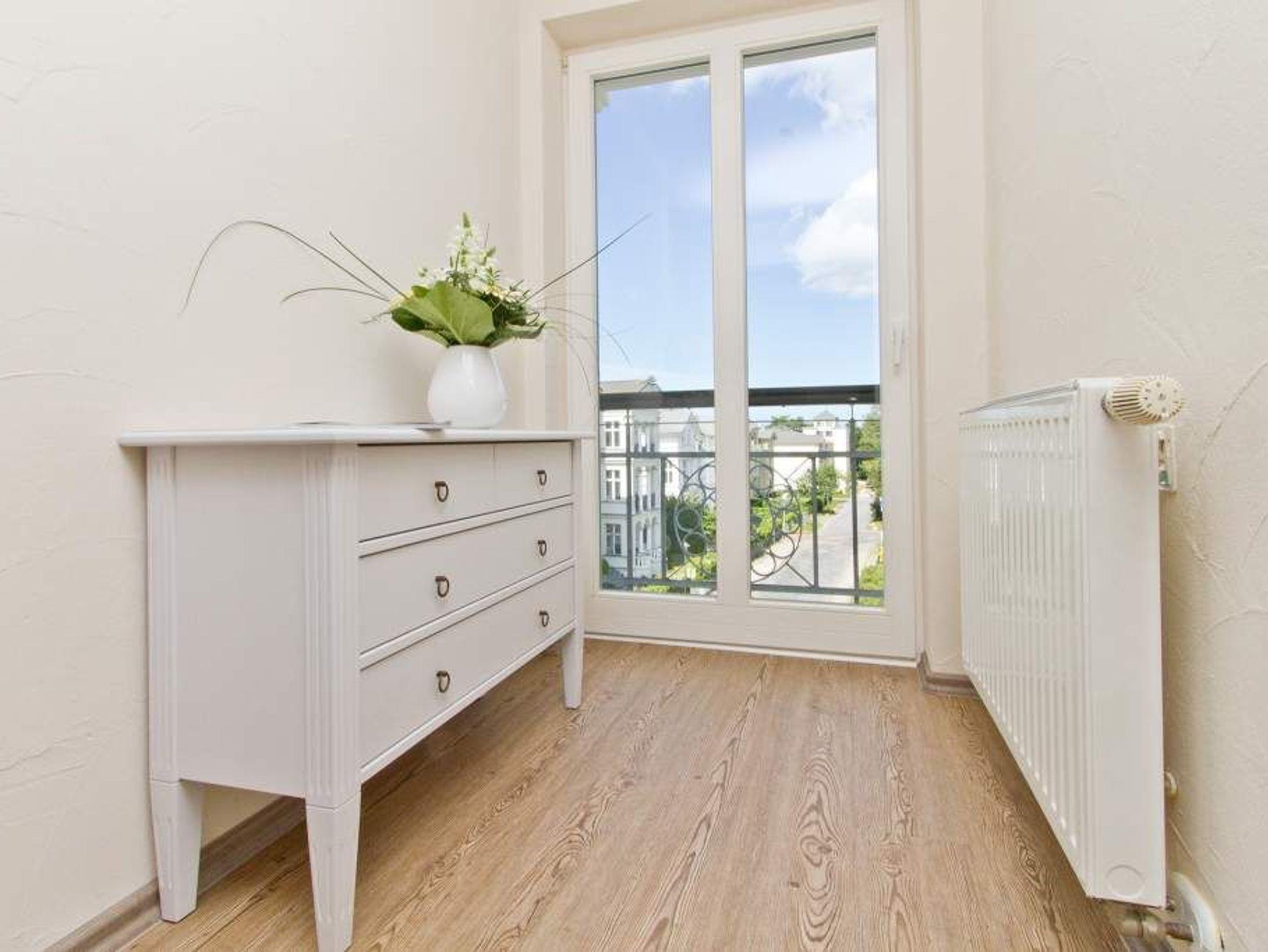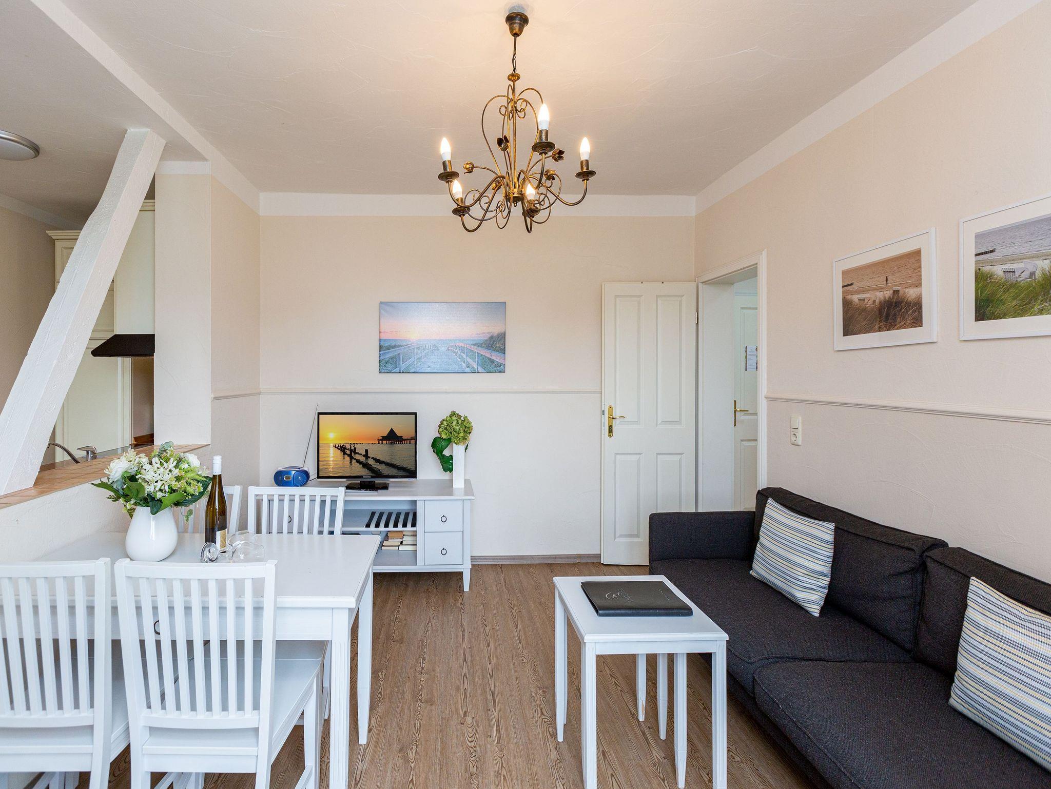 Nur einen Steinwurf von der Ostsee entfernt befindet sich dieses exklusive, 50 Quadratmeter große Urlaubsparadies, aus dem Sie garantiert nicht wieder abreisen wollen. Denn es eignet sich ideal, um abzuschalten und neue Energie zu tanken. Die drei Zimmer bieten Platz für bis zu 3 Erwachsene [&] 1 Kind bis 15 Jahre. Genießen Sie den Ausblick auf die schönen Villen um sie herum. Der kleine Balkon eignet sich dafür bestens. Die Räume sind hoch und hell und die geschmackvolle Einrichtung aus erlesenen Vintage-Möbeln verleiht dem Urlaubswohntraum einen mondänen Charme. An das geräumige Wohn-Esszimmer mit einem schönen Esstisch und Flat-TV ist die offene Küche angeschlossen. Hier finden Sie alles Nötige zum Kochen und Essen ? vom Toaster bis zur Kaffeetasse. In den beiden Schlafzimmern warten zwei Boxspringdoppelbetten darauf, Ihnen Erholung auch im Schlaf zu schenken. Große Schränke bieten viel Platz für die Urlaubsgarderobe. Das Tageslichtbad verfügt über eine Dusche, WC und einen Waschtisch. Sie benötigen Internet? Das WLAN Netz im Haus kann kostenfrei genutzt werden. Damit Sie sich um nichts kümmern müssen, haben wir die Betten bei Anreise bezogen und Handtücher liegen für Sie bereit. Das Auto können Sie auf dem Stellplatz am Haus parken.