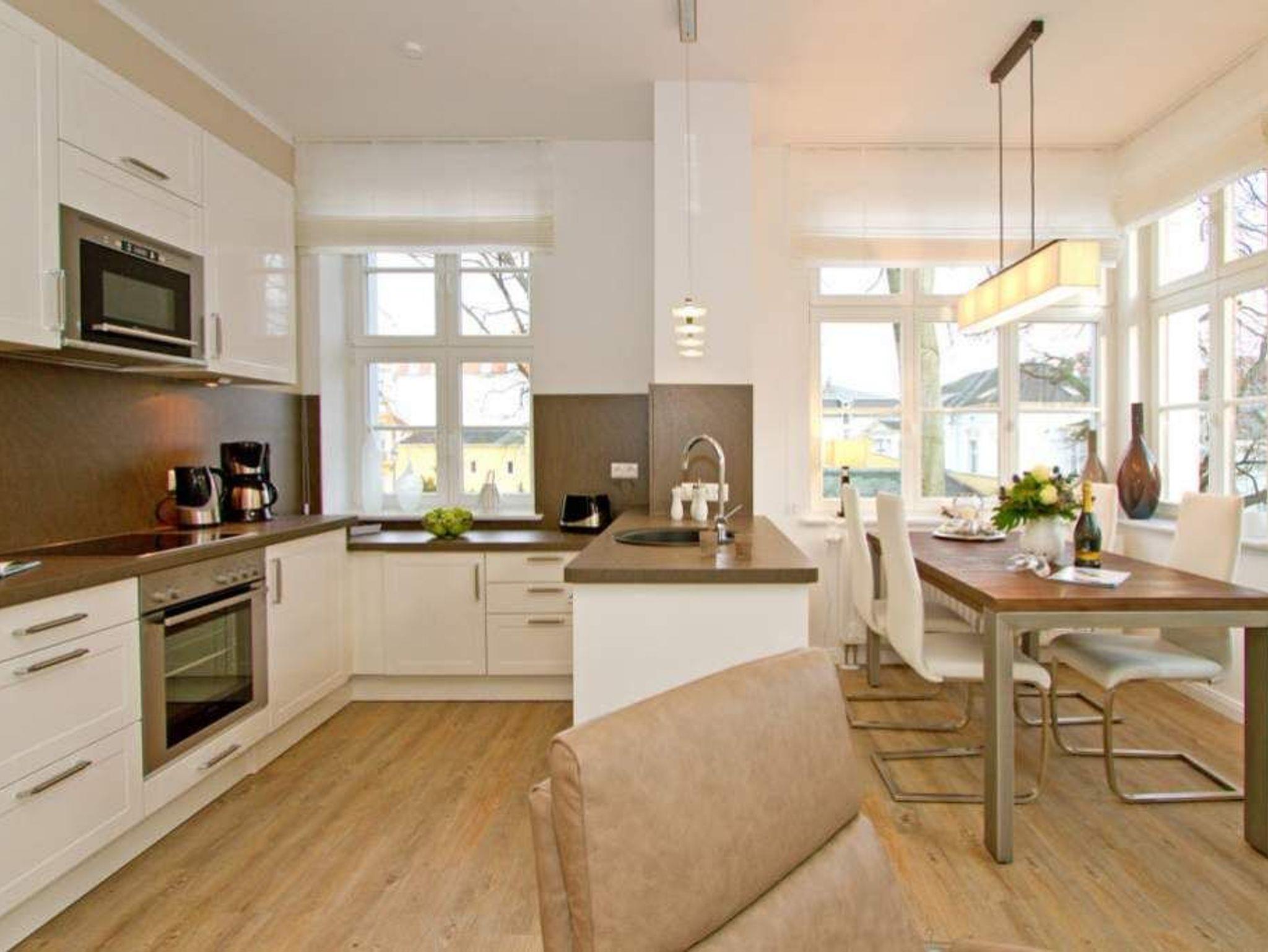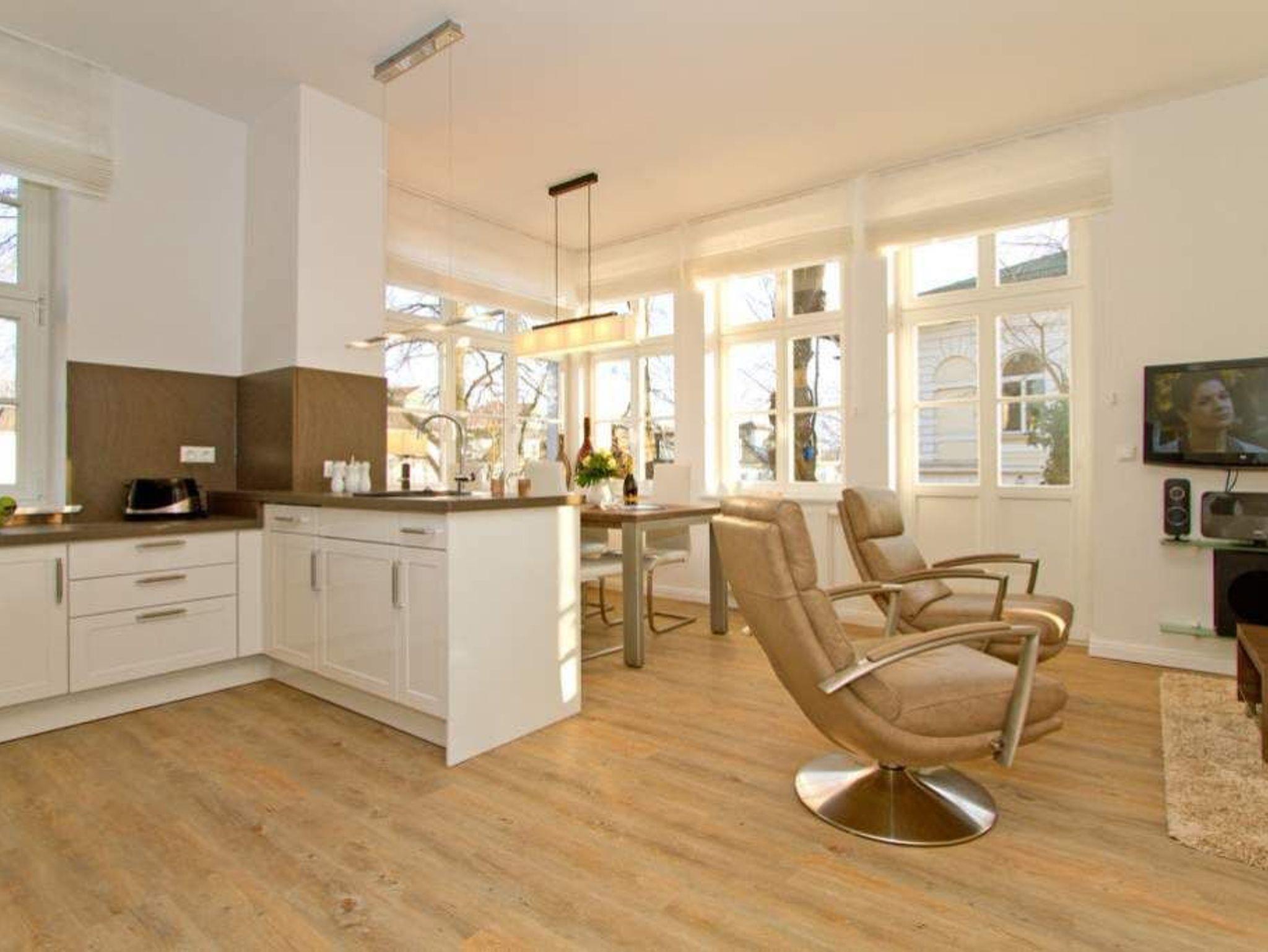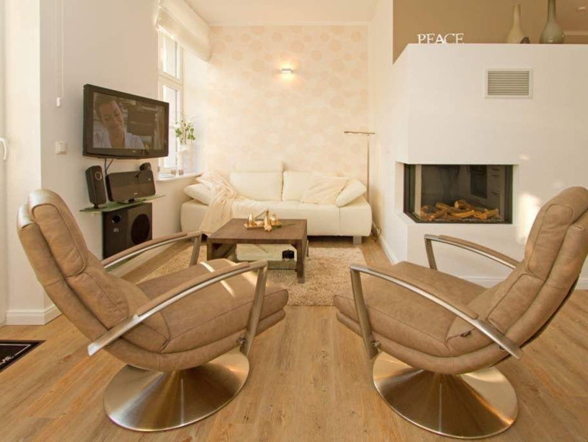 Edle Ausstattung und charmante Details! Willkommen in Ihrem Waldschloss - Urlaubsdomizil! Die großzügige 3-Raum-Ferienwohnung ( 75 qm) für 4 Personen und ein Kleinkind ( bis 3 Jahre im Kinderreisebett) im Erdgeschoss bietet neben ausreichend Platz, eine luxuriöse Ausstattung und Möblierung, die viel Urlaubsflair versprüht. Ausstattungstechnisch wurde selbstverständlich an alles gedacht. Der geschmackvoll möblierte Wohnbereich mit Flat-TV bietet auch einen per Fernbedienung bedienbaren Gas-Designkamin. Ein Highlight besonders in der kalten Jahreszeit. An den schönen Essbereich in der verglasten Veranda, schließt sich eine offene, komplett ausgestattete Küche (auch Waschmaschine vorhanden) an. Auch die beiden Schlafzimmer mit Boxspringbetten ( 1,60 m) für erholsamen Schlaf sind mit je einem Flat-TV ausgestattet. Für Ihren Komfort steht die Erstausstattung Wäsche (Bettwäsche, 1 Duschtuch [&] 2 kleine Handtücher) für Sie bereit. Ergänzt wird die Wohnung durch ein schönes Bad mit Doppelwaschtisch und Echtglasdusche und ein Gäste-WC. Wer keine Lust auf Strand hat, macht es sich auf den beiden großen und sonnigen Terrassen gemütlich, bequeme Gartenmöbel, ein eigener Strandkorb und eine Sonnenliege warten hier auf Sie. Für Kleinkinder können ein Kinderreisebett (ohne Matratze und Kinderbettzeug) und ein Kinderhochstuhl gegen einen Aufpreis bestellt werden. Das WLAN-Netz im Haus kann kostenfrei genutzt werden.