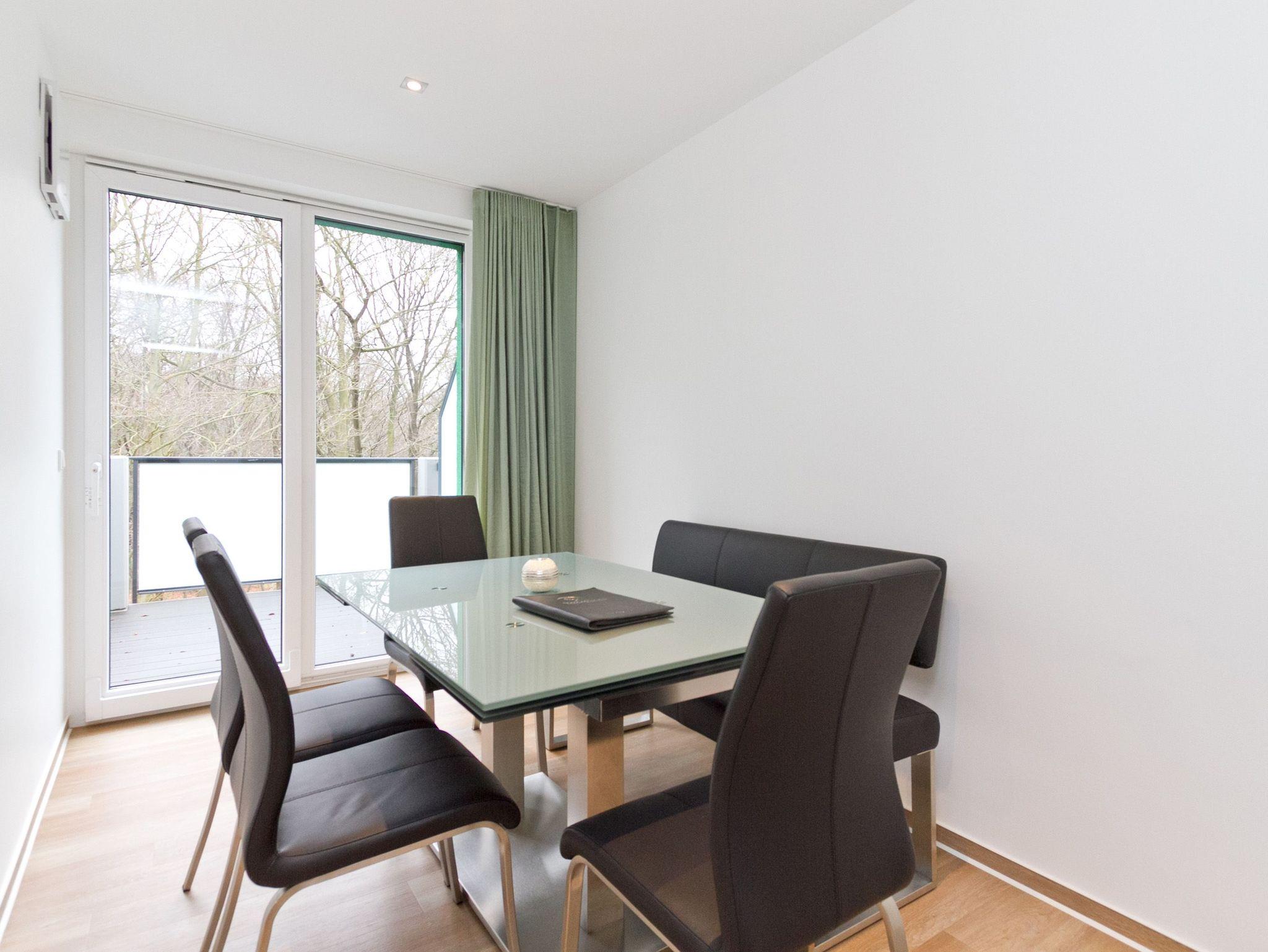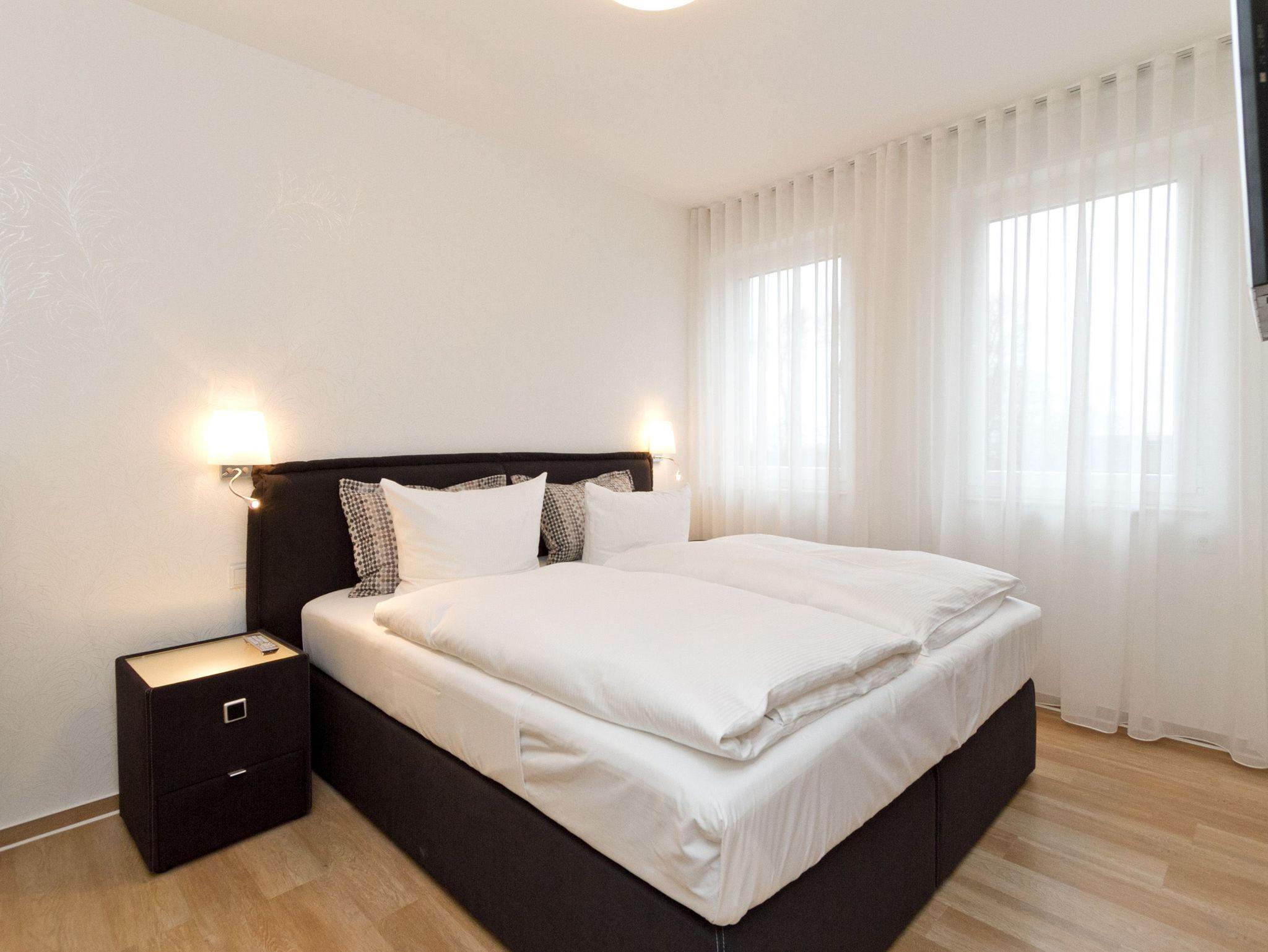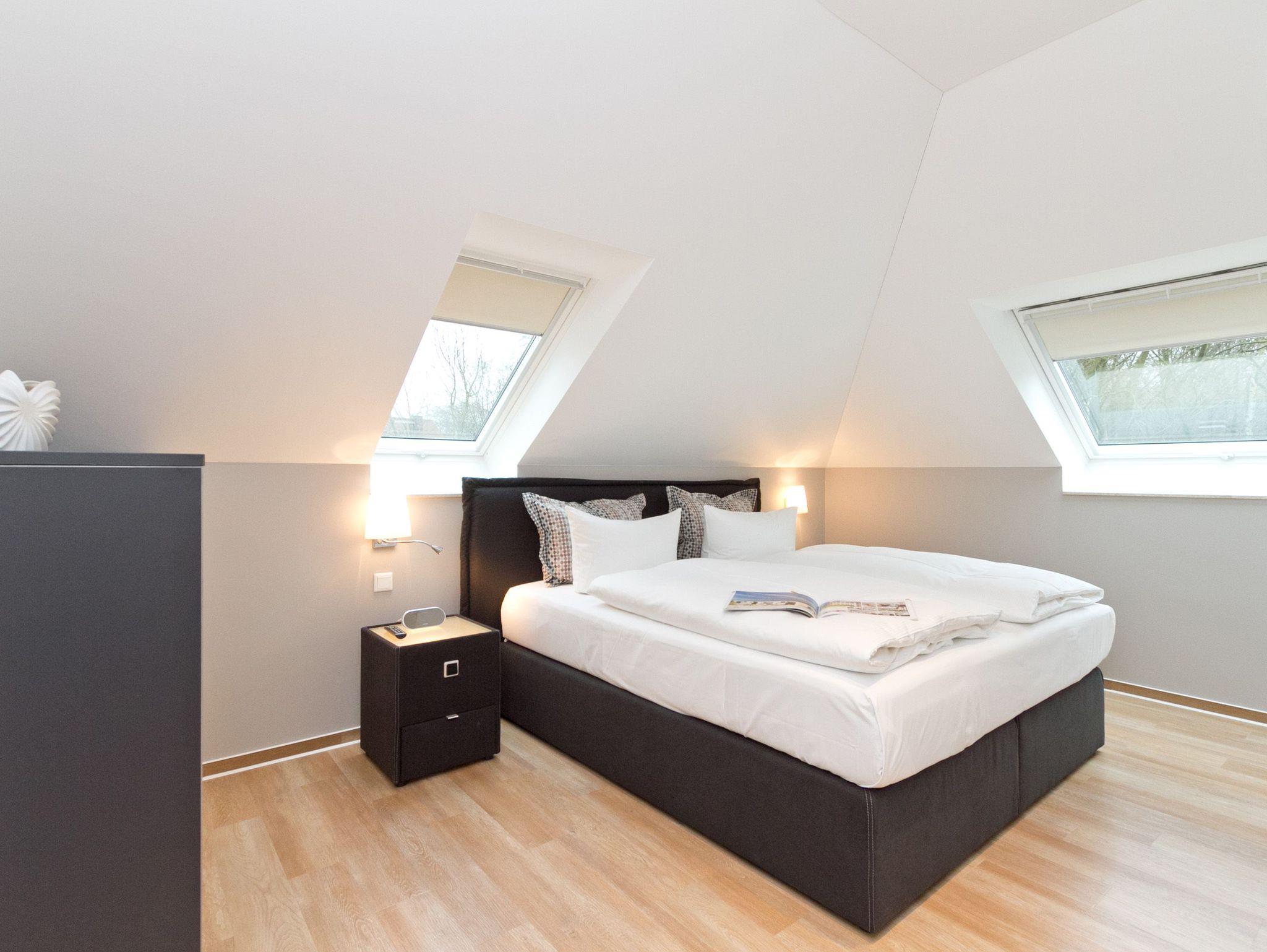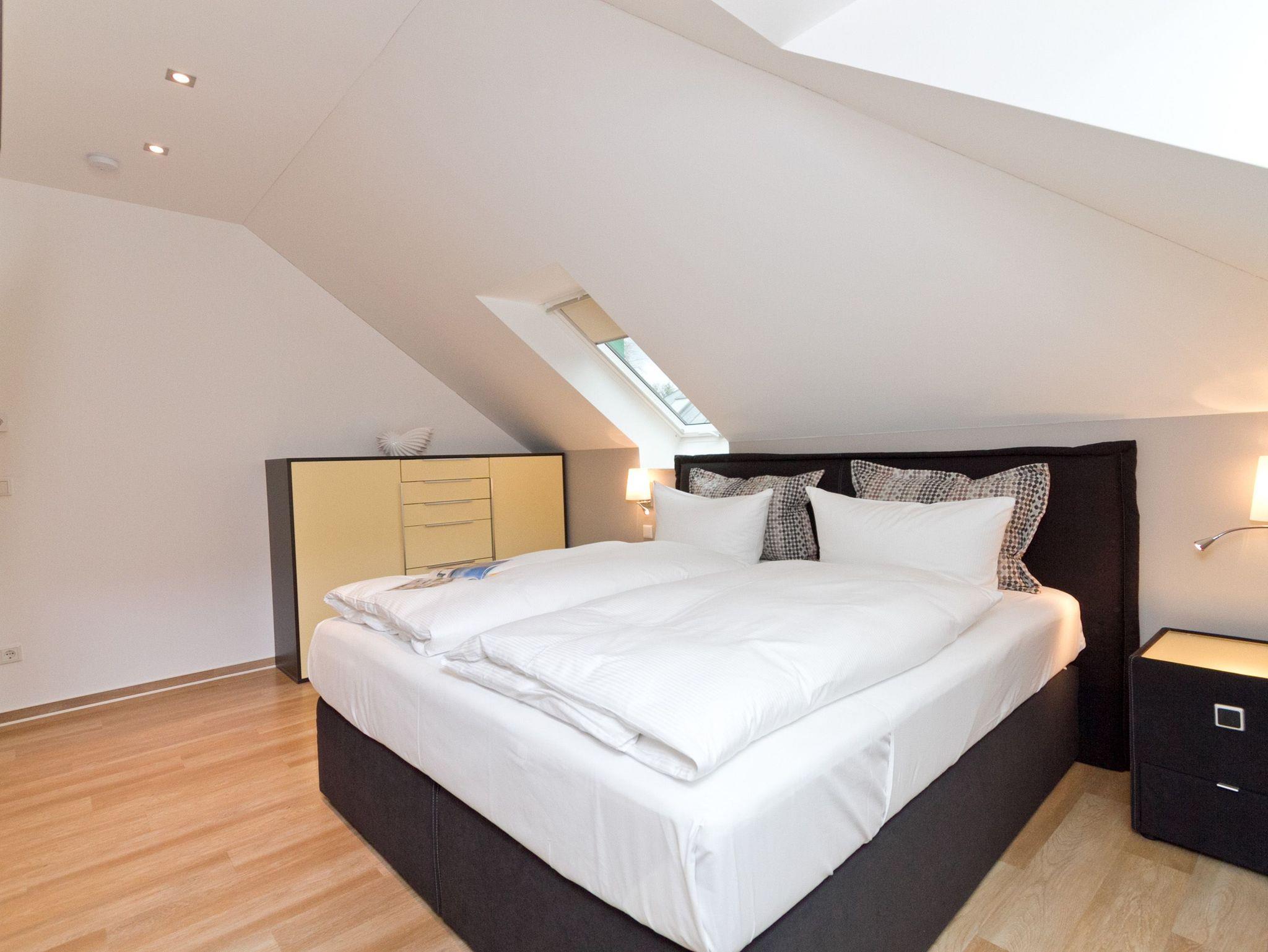 Vier Personen und ein Kleinkind im Kinderreisebett werden sich hier im 2. Obergeschoss im Appartement Nummer 18 pudelwohl fühlen. Denn es bietet mit seinen 85 Quadratmetern allen nur erdenklichen Wohnkomfort und überrascht mit einigen Extras. Hell und großzügig empfängt die Urlaubshungrigen das Wohnzimmer mit seinem Echtholzkaminofen, seiner Sofa-Sitzgruppe und dem großen Flat-TV mit DVD-Player. Kommen Sie an und entspannen Sie einfach drauf los. Hier brauchen Sie sich um nichts zu sorgen. Die Betten sind bezogen. Handtücher liegen bereit. Die separate Küche ist mit hochwertigen Küchengeräten bestens ausgerüstet. Auch Geschirr fehlt nicht. Am gläsernen, zur Küche gehörenden Essplatz finden alle Platz. Ihr Urlaubsdomizil verfügt über gleich zwei, sonnenverwöhnte Balkone (einer mit 8 Quadratmetern in Richtung Ost/ Süd-Ost; ein 2. zur Südseite, 6 Quadratmeter groß), auf denen Sie die frische Ostseeluft direkt einatmen können. In den zwei Schlafzimmern befinden sich bequeme Boxspringdoppelbetten (1,80 m x 2,00 m). Jedes ist mit einem Flat-TV und einer Kommode für die Urlaubsgarderobe ausgestattet. Das riesige Badezimmer ist eine kleine Wellness-Oase mit Badewanne, Dusche, Waschtisch und einer eigenen Infrarotsauna. Hier können Sie an kühlen Tagen oder Abenden bei kreislaufschonend kuscheligen Temperaturen ordentlich ins Schwitzen kommen und allen Stress loslassen. Im Appartement gibt es zudem ein separates Gäste-WC. Zwei hintereinander befindliche Parkplätze gehören zur Nummer 18 dazu. Auch ein Briefkasten steht zur Verfügung. Auf Wunsch stellen wir für unsere kleinen Gäste ein Kinderreisebett (ohne zusätzliche Matratze [&] Bettzeug) und einen Kinderhochstuhl (gegen einen Aufpreis) in die Wohnung. Das WLAN können Sie kostenfrei nutzen.