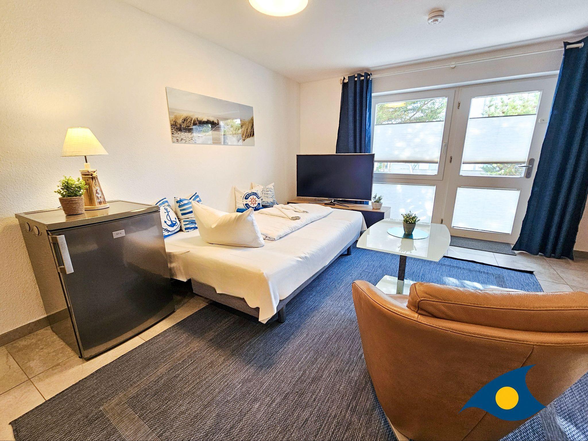 Das 43 m² große modern-maritim eingerichtete Appartement befindet sich im Erdgeschoss und ist ideal für bis zu 3 Personen.