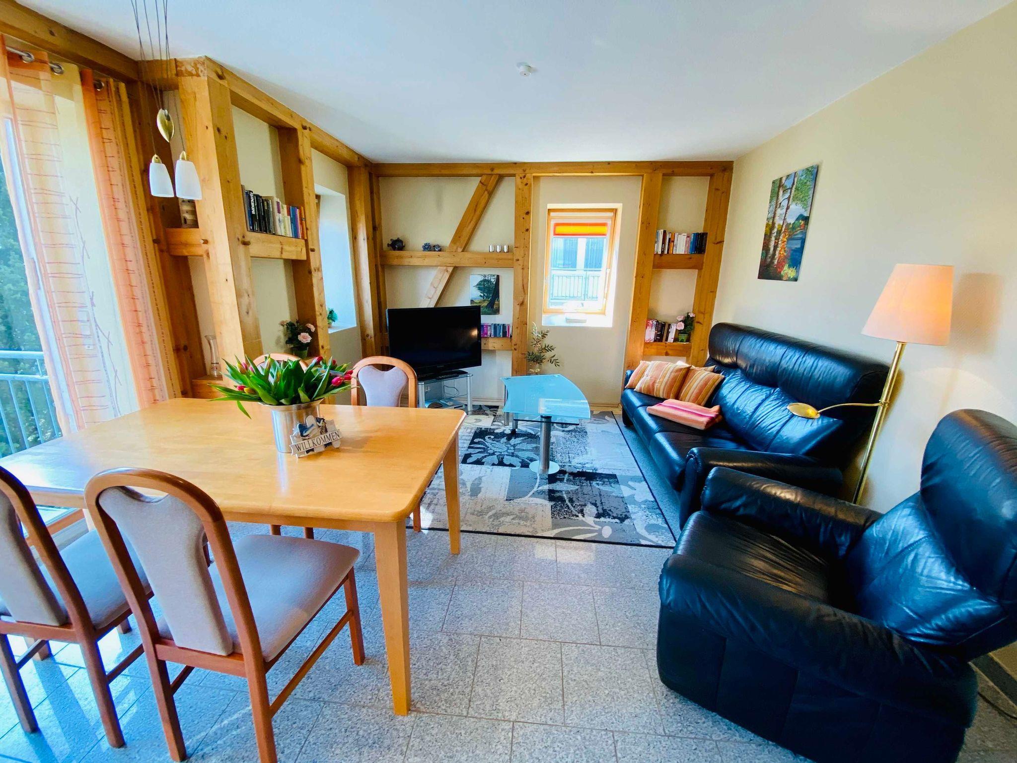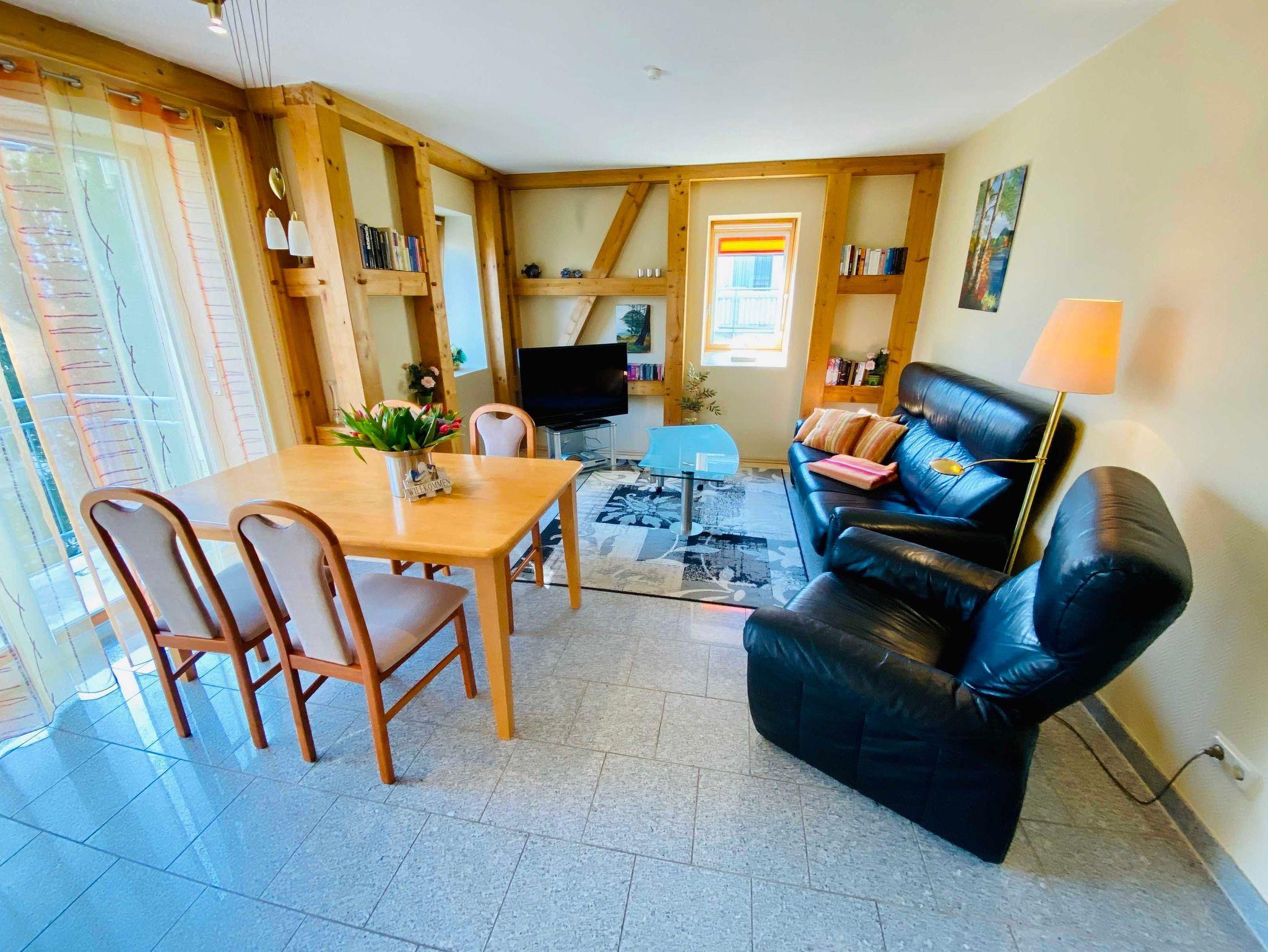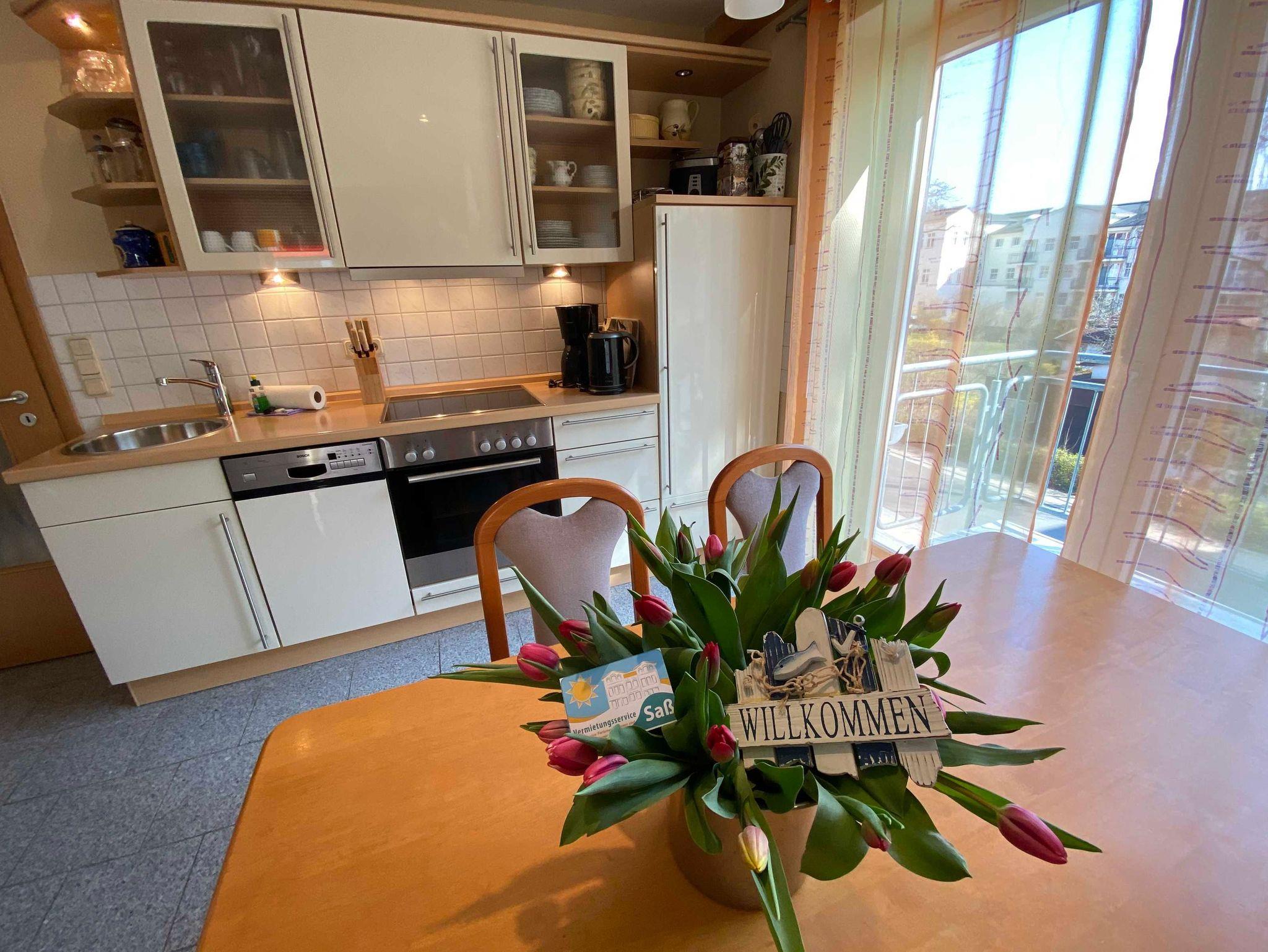 Eine moderne, gemütliche Dreiraumwohnung mit kombiniertem Wohn-Essraum mit Küchenzeile ( Geschirrspüler, Backofen, Cerankochfeld) , zwei Schlafzimmer mit Doppelbetten und ein Badezimmer mit Dusche. Die gesamte Ferienwohnung ist mit Granitfliesen ausgelegt (Fußbodenheizung) und sehr hochwertig eingerichtet. ( 2 Fernseher, DVD/CD Player, Internet). Zur Wohnung gehört ein Balkon sowie ein kostenfreier Stellplatz am Haus