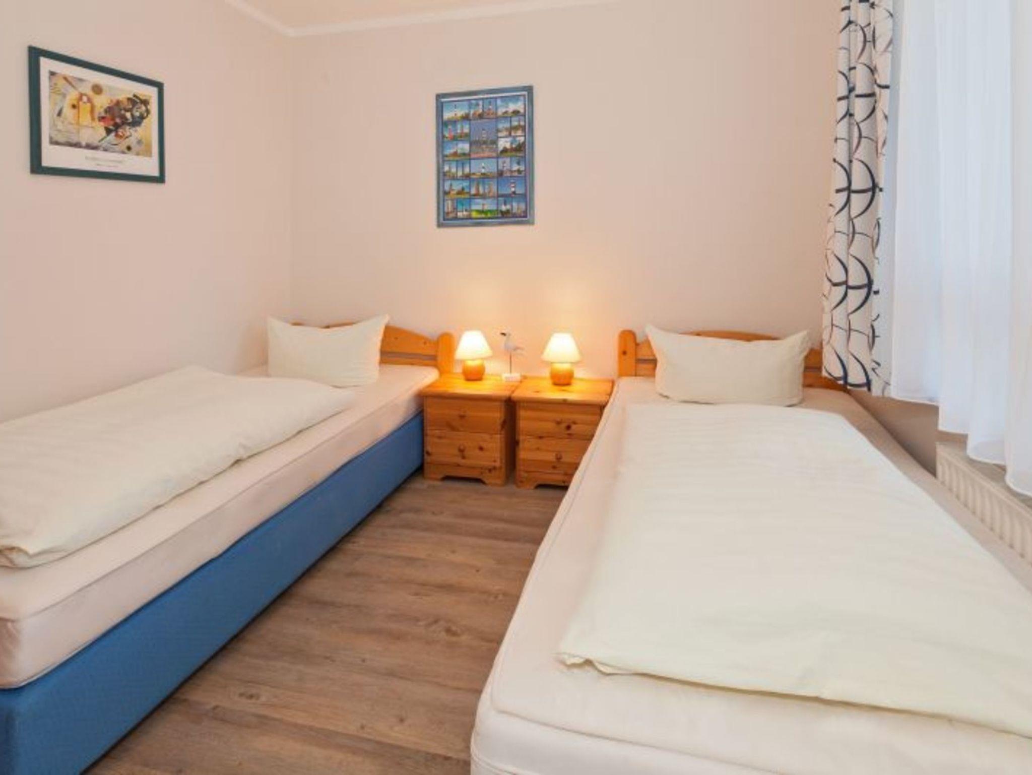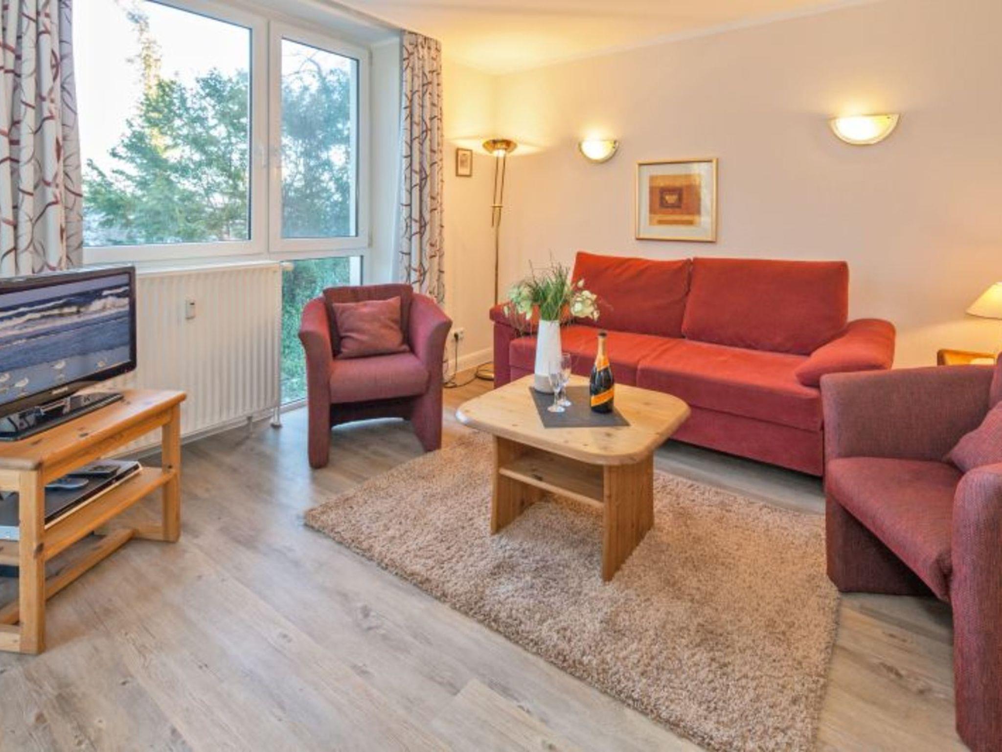 Freundliche Dreizimmer Ferienwohnung (64qm) für 2 - 4 Personen mit Balkon, direkt an der Promenade in gepflegtem Park mit altem Baumbestand gelegen. Die Wohnung hat neben dem Wohn- und Essbereich eine offene Küche mit Mikrowelle, Herd, Backofen und Geschirrspüler. Das Schlafzimmer verfügt über ein Doppelbett, das zweite über zwei Einzelbetten. Desweiteren befindet sich im Wohnbereich ein Schlafsofa.