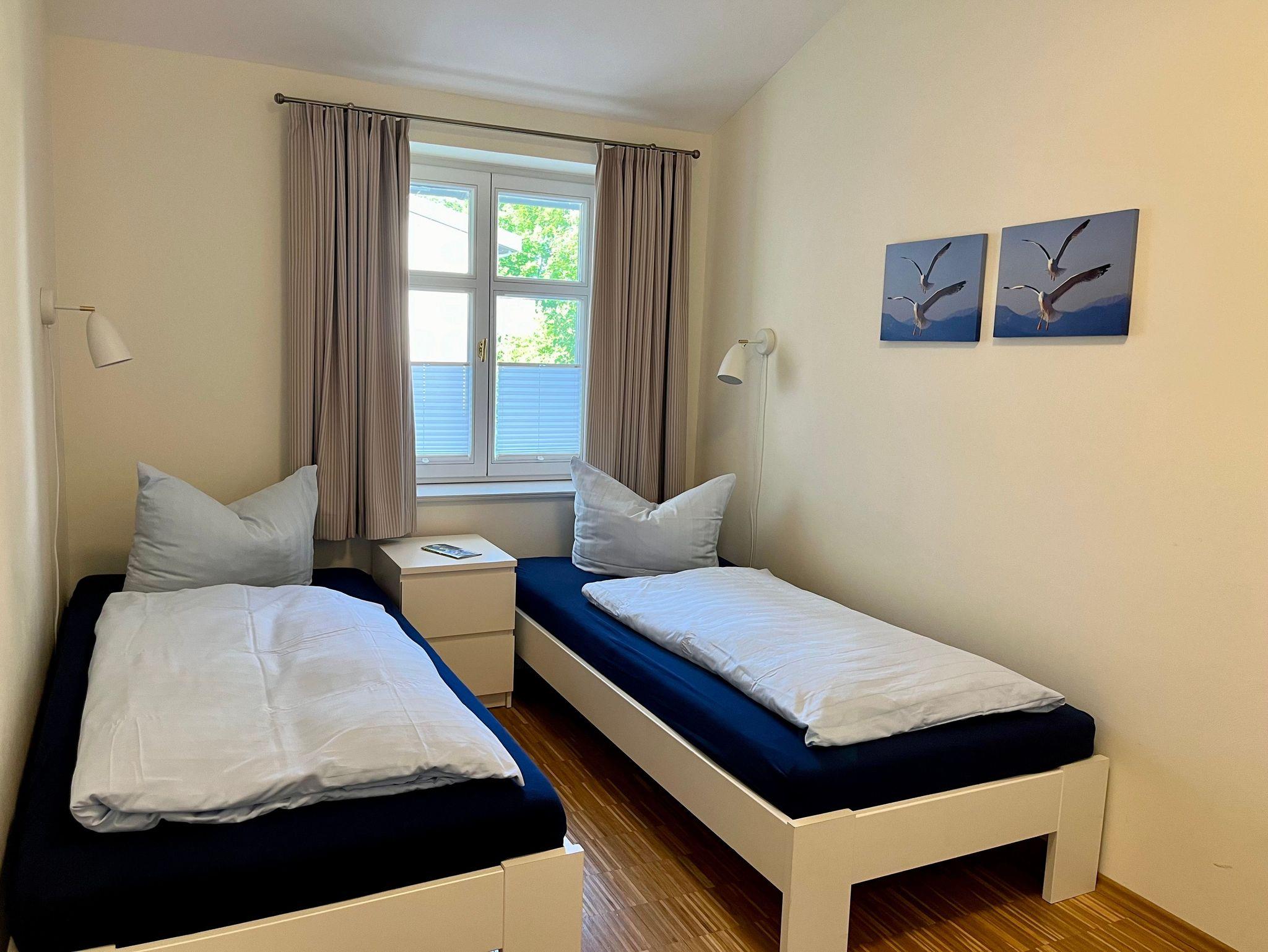 Die Wohnung besteht aus einem Schlafzimmer mit Doppelbett, einem Kinderschlafzimmer mit zwei Einzelbetten sowie einem Wohnzimmer.
