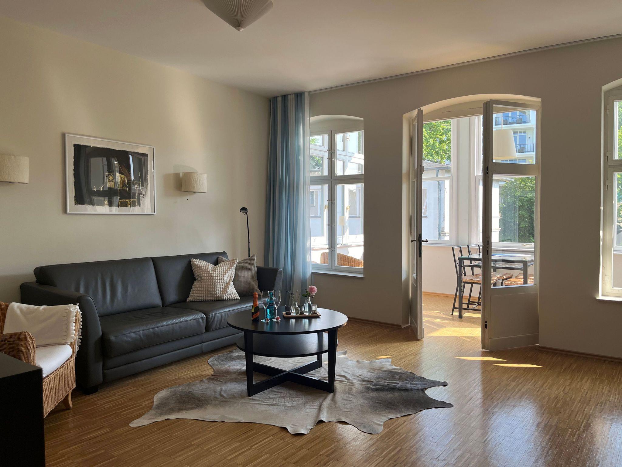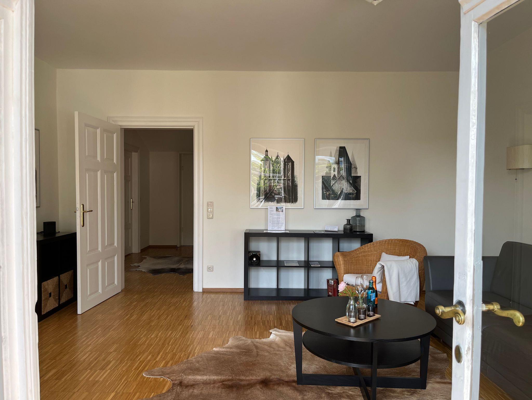 Die ca. 80 qm große Ferienwohnung ist strandnah gelegen und befindet sich im denkmalgeschützten Vorderhaus der ALTEN BUCHDRUCKEREI. Der Grundriss mit zwei Schlafzimmern ist ideal für Familienurlaub.