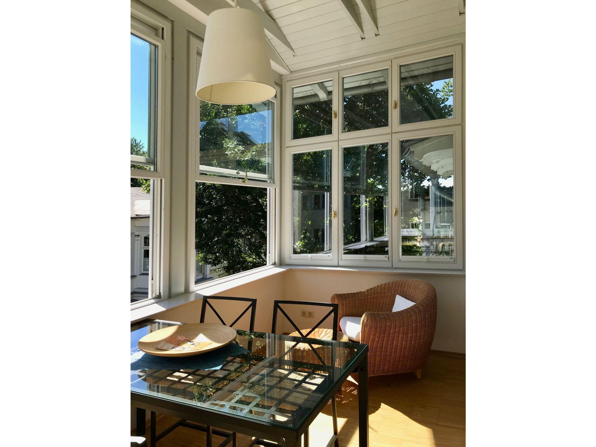 Von diesem ist der Essbereich im wintergartenähnlichen Verandenvorbau abteilbar. Diese nach Süden orientierte Veranda lässt sich durch Schiebefenster komplett öffnen und wie eine offene Loggia nutzen.