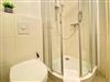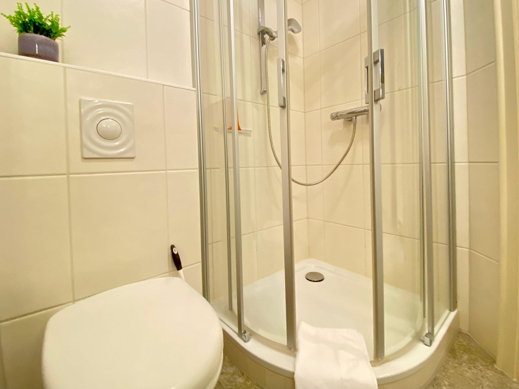 Das Badezimmer ist mit einer Dusche ausgestattet.
