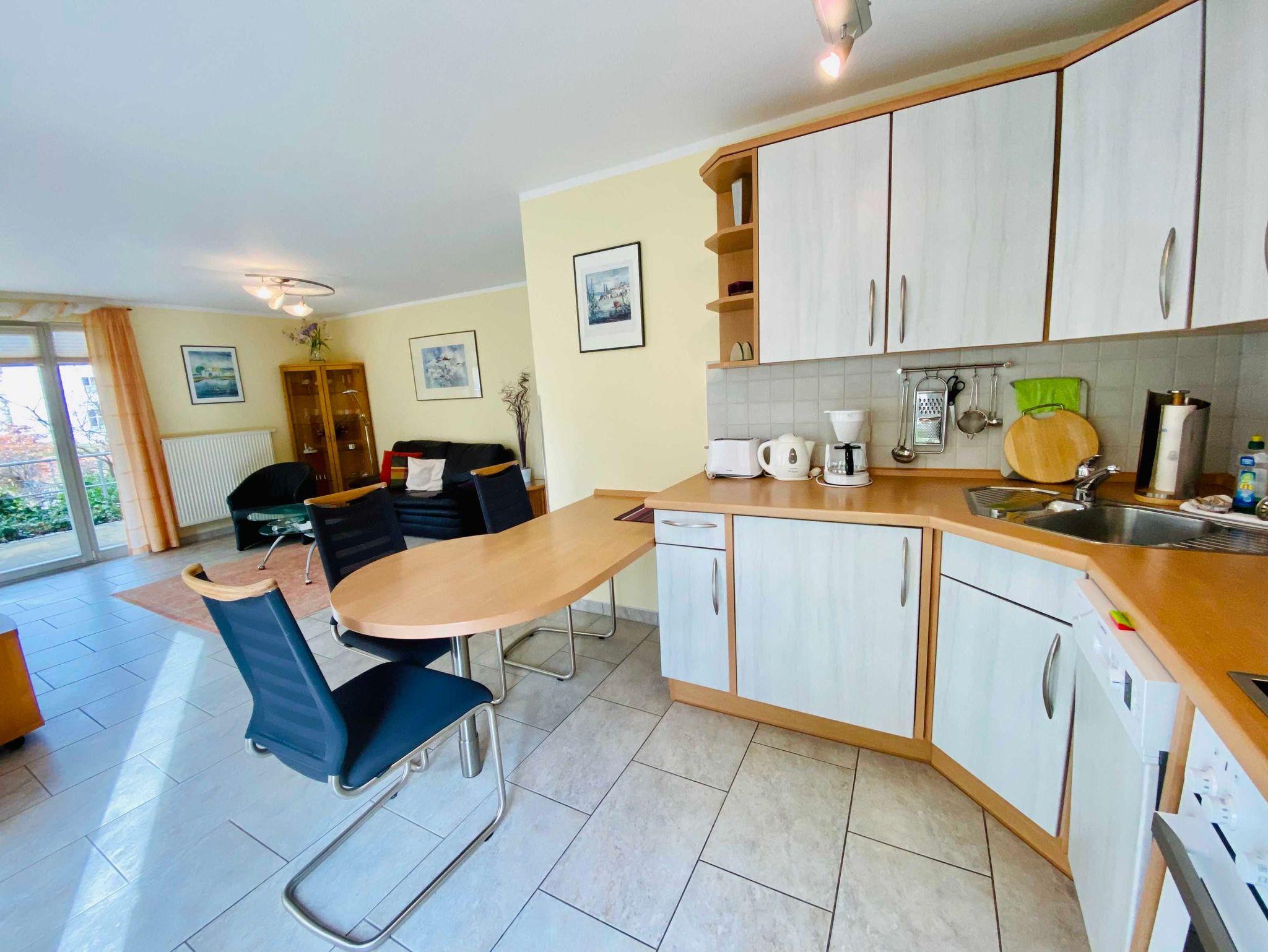 Die Ferienwohnung 14 ist eine moderne 2-Raumwohnung in der Villa Rondell mit ca. 55 m² und liegt im Erdgeschoss. Der Wohn- Essbereich ist komplett eingerichtet & bestehend Rolf-Benz Möbeln, Flachbildfernseher, Musikanlage und Esseck dazu eine integrierter Küchenzeile mit Ceranfeld, Geschirrspüler & Backofen.