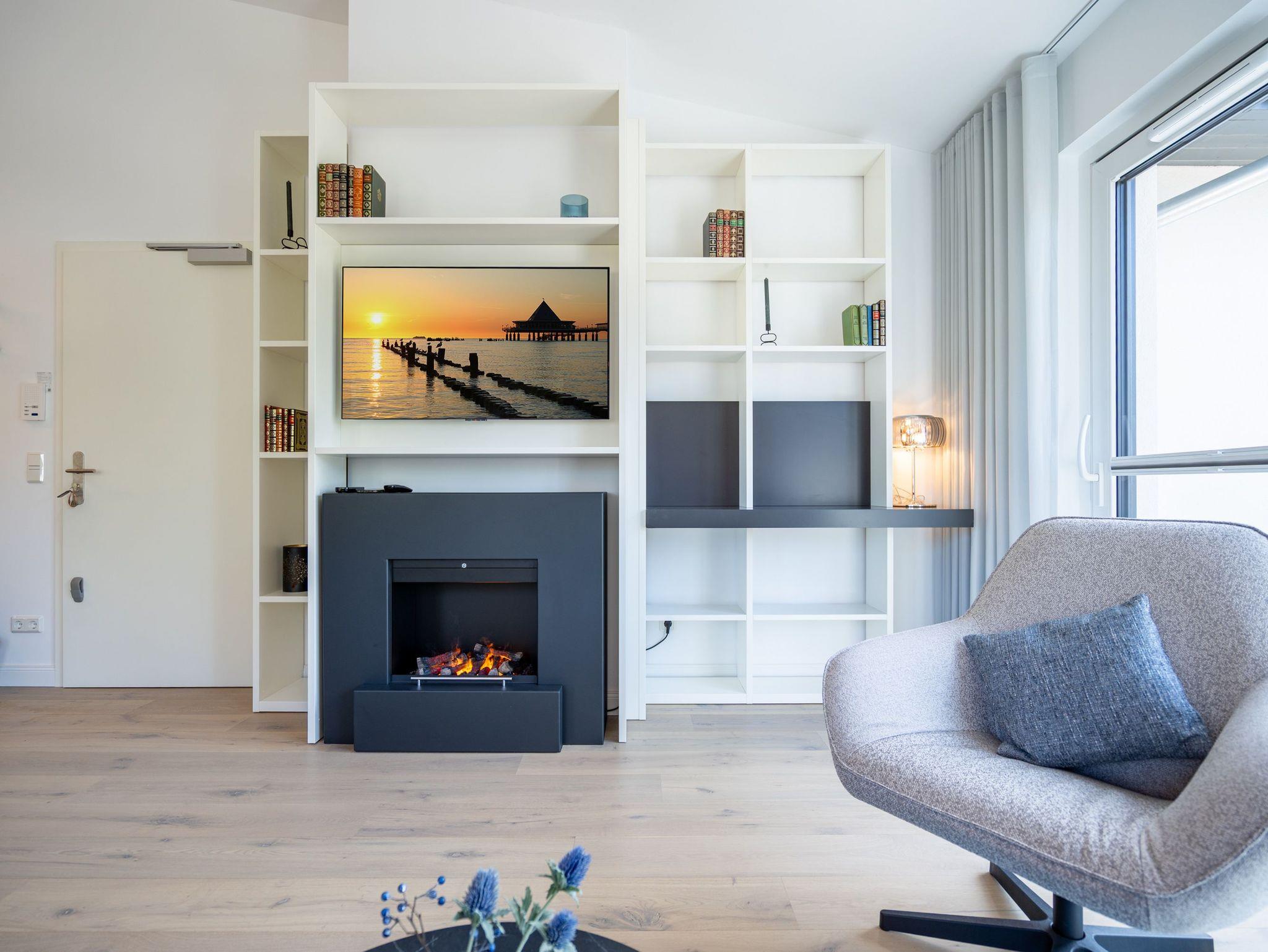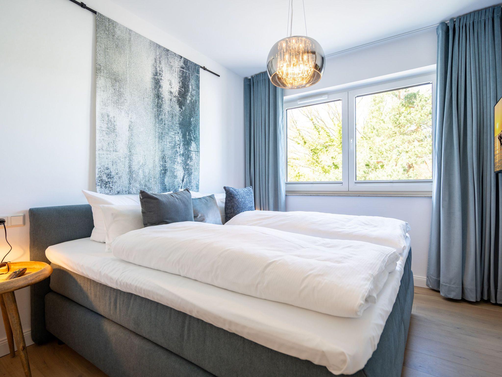 Willkommen in Ihrem Urlaubsdomizil unter dem Dach! Das hochwertig ausgestattete Apartment 07 im Quartier Maxim bietet auf ca. 68?m² den idealen Rückzugsort für bis zu vier Personen. Genießen Sie entspannte Stunden im offenen Wohnbereich mit gemütlicher Sitzgruppe, stimmungsvollem Elektro-Kamin mit Fernbedienung sowie einem Flat-TV mit integriertem Radio ? perfekt für einen gelungenen Tagesausklang. Die moderne Küchenzeile überzeugt mit klaren Linien und hochwertiger Ausstattung: Backofen, Spülmaschine und ein Kühlschrank mit Gefrierfach lassen keine Wünsche offen. Am stilvollen Essplatz für vier Personen genießen Sie gemeinsame Mahlzeiten mit direktem Zugang zum sonnigen Süd-West-Balkon (ca. 7,8?m²), der mit Gartenmöbeln zum Verweilen einlädt. Zwei komfortable Schlafzimmer mit hochwertigen Boxspringbetten (je 1,80?m x 2,00?m), Flat-TVs und großzügigen Kleiderschränken sorgen für erholsame Nächte. Eines der Schlafzimmer verfügt über ein eigenes Duschbad mit WC ? ideal für mehr Privatsphäre. Das zweite, innenliegende Badezimmer bietet neben Dusche, Waschtisch und WC auch eine private Finnische Sauna ? Ihr ganz persönlicher Wellnessmoment. Ein Waschmaschine steht im Flurbereich zur Mitnutzung bereit. Zudem profitieren Sie von kostenfreiem WLAN, einem eigenen Tiefgaragenstellplatz (mit zubuchbarer E-Ladestation) sowie einem wohnungseigenen Abstellraum für Fahrräder. Ein stilvoller Rückzugsort mit hohem Komfort ? ideal für entspannte Urlaubstage zu zweit, mit Familie oder Freunden.