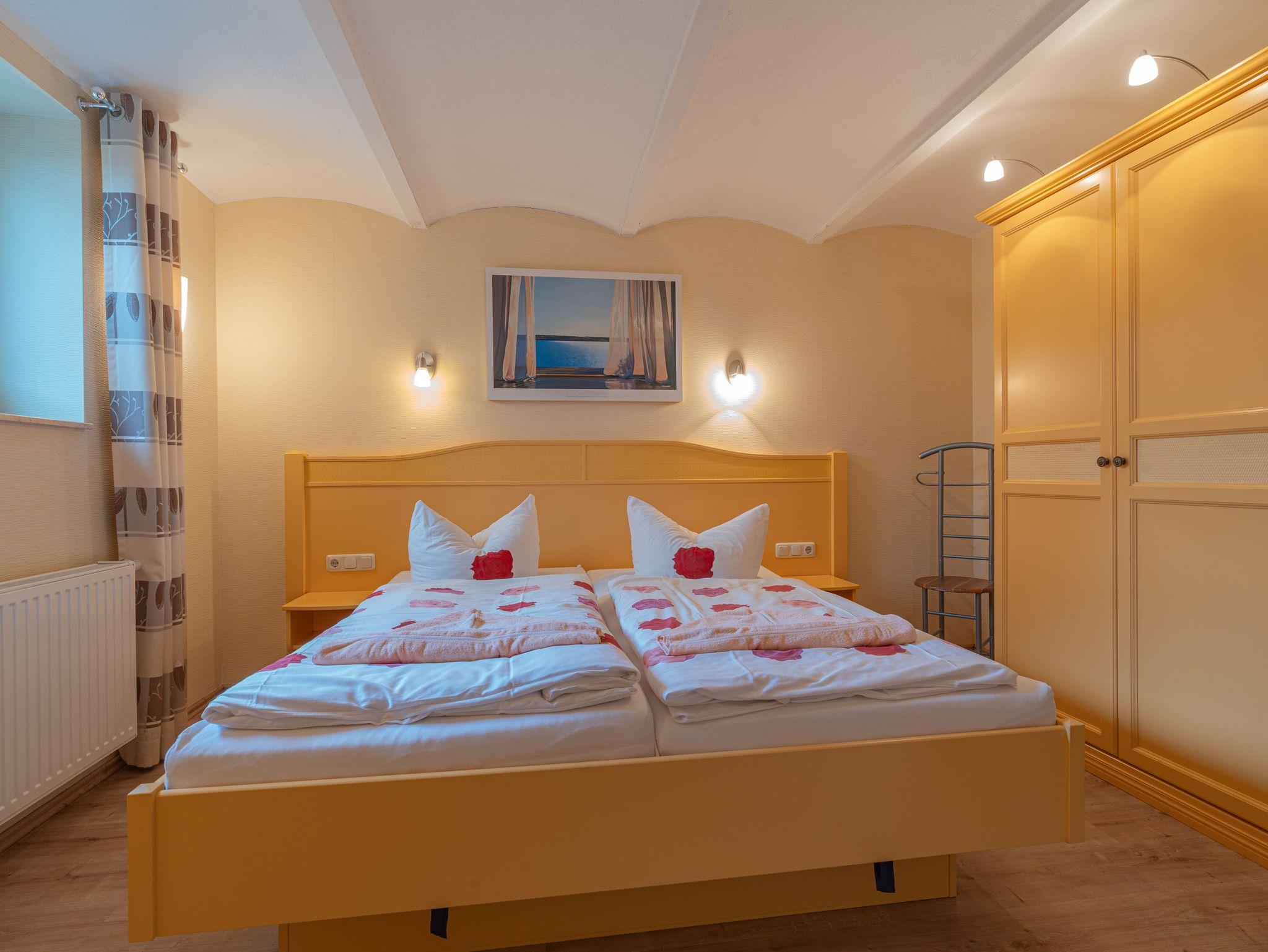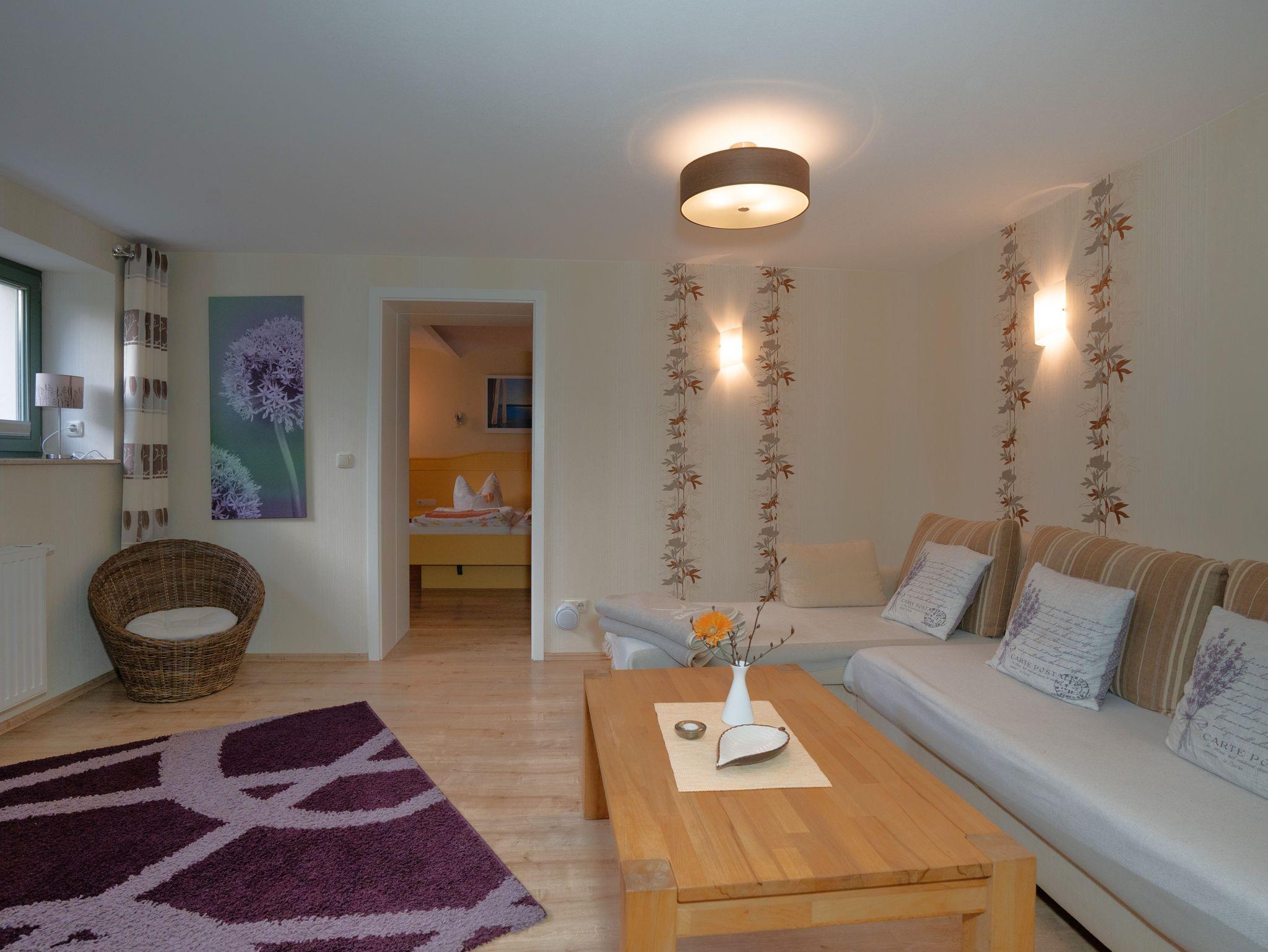 Das 60 qm große Zweiraumappartement im Soutterrain verfügt über separates Schlafzimmer und einen Wohnzimmer mit Sitzgelegenheit und Schlafcouch (Aufbettung für 2 Personen), TV und Radio und eine separate Küchen mit Geschirrspüler,