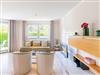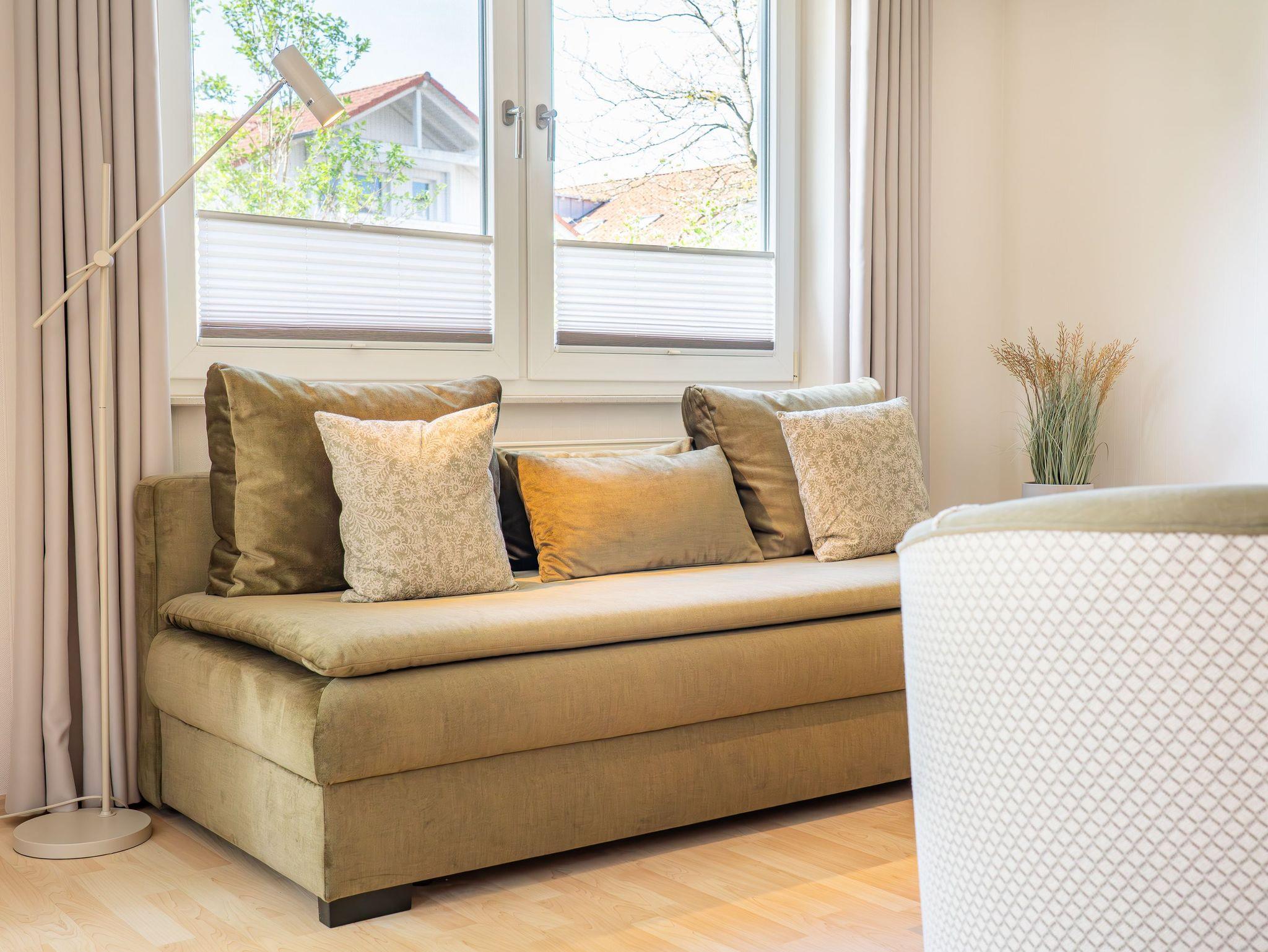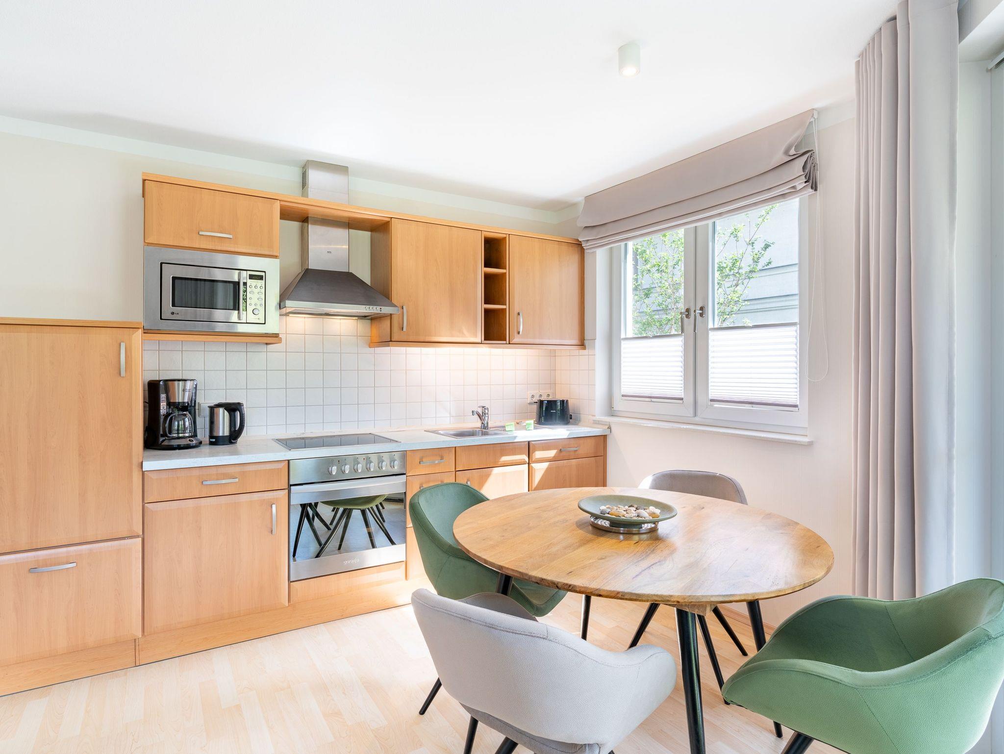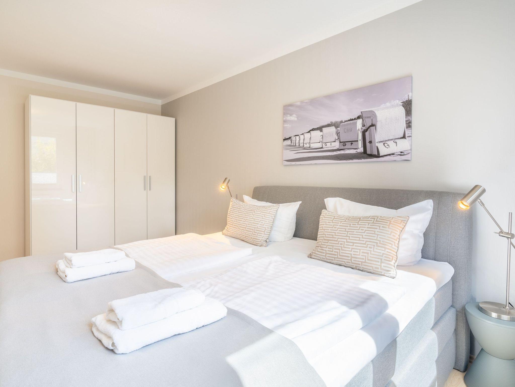 Modern und gemütlich zugleich: Auf Ihrer Terrasse im Grünen können Sie bereits beim morgendlichen Kaffee das Rauschen der Ostsee genießen. Der stilvoll gestaltete Wohnbereich ist mit einem bequemen Sofa und einem Flat-TV ausgestattet. Die integrierte Küchenzeile lässt keine Wünsche offen und bietet alles, was Sie für die Zubereitung Ihrer Lieblingsspeisen benötigen (inkl. Ceranfeld, Backofen, Mikrowelle, Kühlschrank mit Gefrierfach, Geschirrspüler, Wasserkocher, Toaster und Kaffeemaschine). Am Esstisch kann die ganze Familie in geselliger Runde speisen. Vom Wohnzimmer aus gelangen Sie auf Ihre private Terrasse, die zum Sonnenbaden oder abendlichen Spielen mit Blick ins Grüne einlädt. Das freundlich gestaltete Schlafzimmer verfügt über ein bequemes Doppelbett. Zwei weitere Gäste können es sich auf der ausziehbaren Schlafcouch im Wohnbereich für eine erholsame Nacht gemütlich machen.