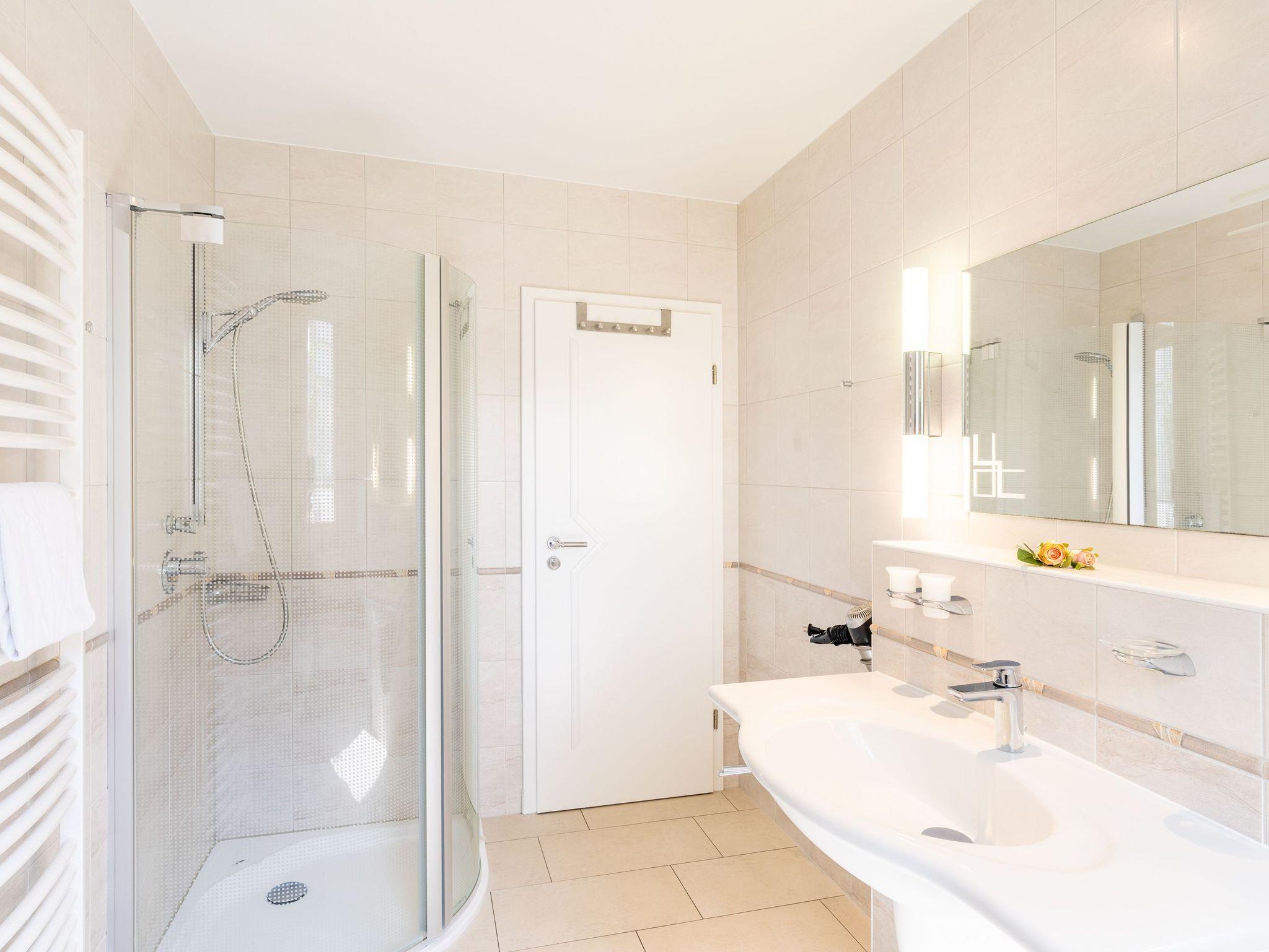Damit Sie Ihre wohlverdiente Urlaubszeit bereits am Anreisetag in vollen Zügen genießen können, haben wir das Bett für Sie und das für Ihre lieben Mitreisenden bereits bezogen und ein Duschtuch sowie ein kleines Handtuch bereitgelegt. Das Badezimmer ist mit Dusche, WC und einem Haartrockner ausgestattet.