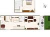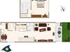Die Couch im Wohnzimmer ist für die 3. und 4. Person als Schlafmöglichkeit schnell hergerichtet. Mit einer Schiebetür kann das Wohnzimmer vom übrigen Wohnbereich unkompliziert getrennt werden.