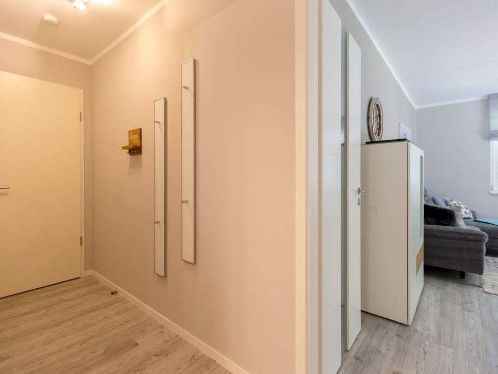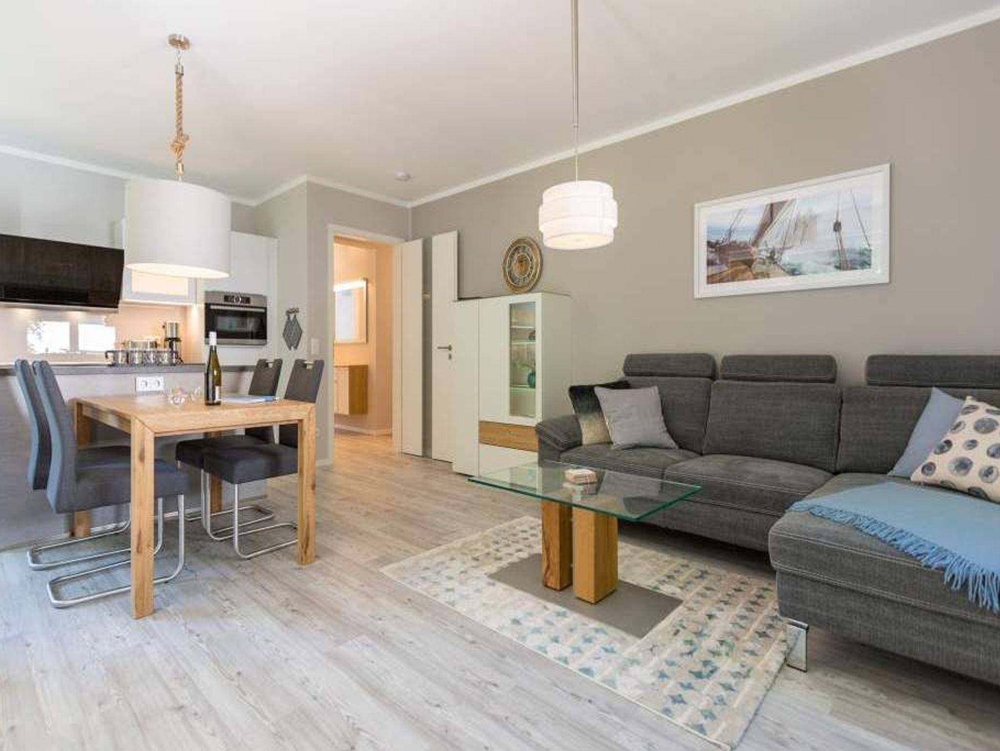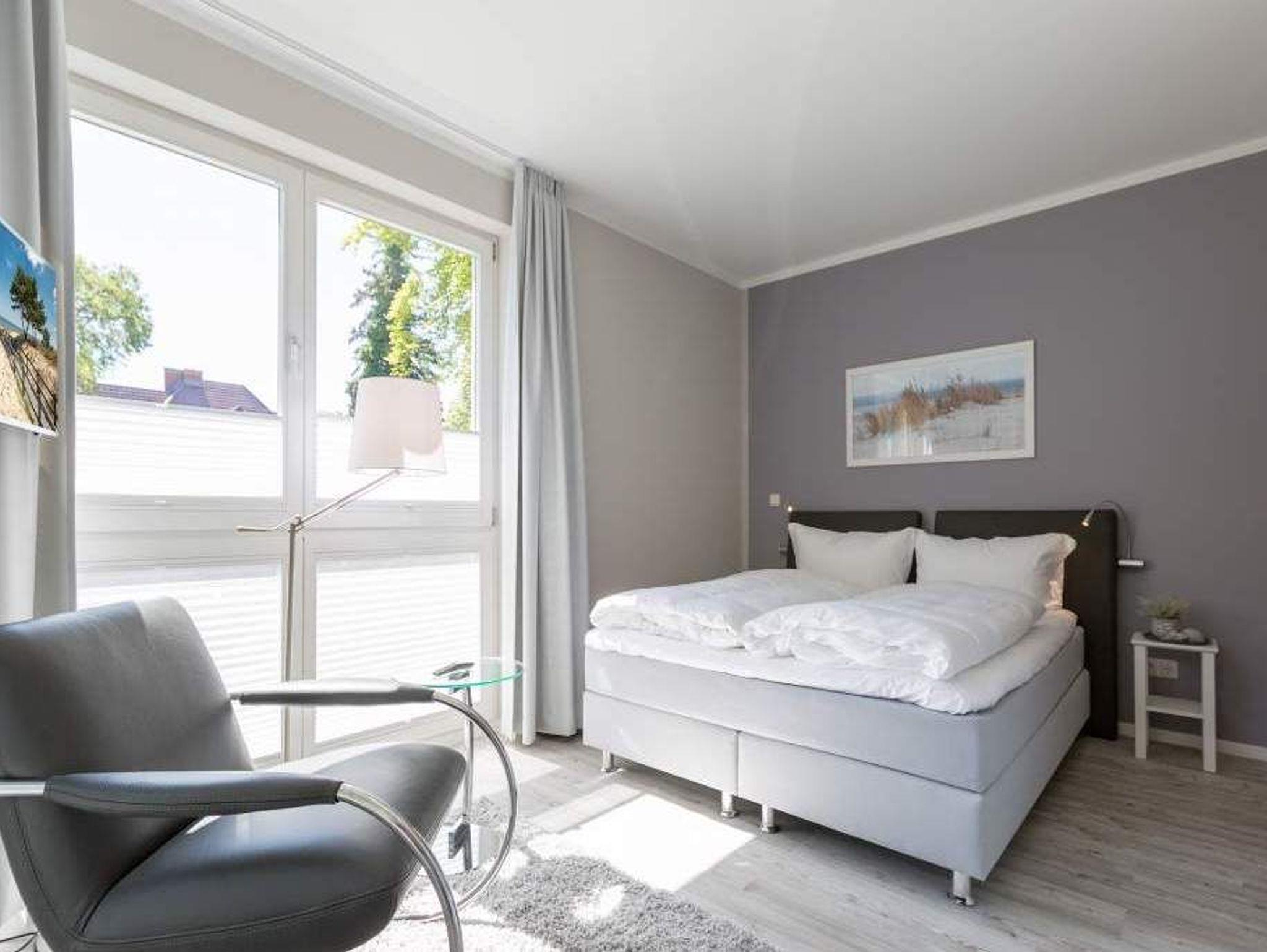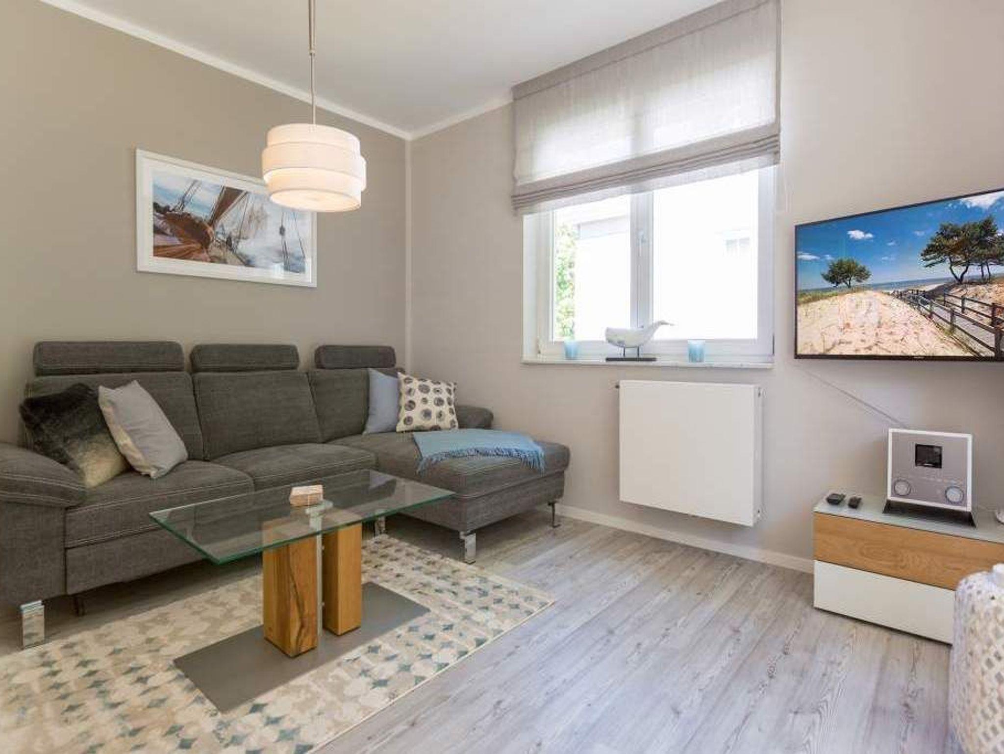 Durch das satte Grün der Bäume schimmert glitzernd blau die Ostsee hindurch. Morgens bei Sonnenschein auf dem Balkon zu sitzen, den Vögeln und dem Meeresrauschen zu lauschen, ist ein perfekter Start in den Urlaubstag. Ob allein oder zweit ? in diesem exklusiven und modernen Ferienappartement wird Ihre Erholung zum entspannten Genuss. Denn viel Platz, Leichtigkeit und Stil prägen die schick eingerichtete, 66 Quadratmeter große Wohnung. Hier gibt es nicht nur ein Highlight, das Ihre Ostseeauszeit zu etwas ganz Besonderem macht. Neben den beiden Balkonen ? vom Wohnzimmer aus und vom Schlafzimmer aus begehbar ? erwartet Sie hier eine kleine Wohlfühloase, die das ganze Jahr über ihre Reize hat. Gerade auch im Winter bietet dieses Urlaubsdomizil die Möglichkeit zur Entspannung. Wenn die Bäume kahl und starr vom kalten Nordost klirren und den Blick auf die schier endlose, in manchen Jahren sogar zugefrorene Ostsee frei geben, können Sie sich diese Landschaft aus dem Wohn- und dem Schlafzimmer, aber auch aus der kuschelig warmen Panorama-Sauna heraus anschauen. Denn auch die mit einem LED-Farblichtsystem versehene Sauna ( für finnischen Saunabetrieb und BIO-Betrieb mit Verdampfer) gehört zu der Wohnung Nummer 7 im 2. Obergeschoss der Villa Barbara dazu. Die unterschiedlichen Lichtstimmungen sorgen zusätzlich für Entspannung pur. Ruhe und Erholung finden Sie zudem in dem geräumigen Wohn-Esszimmer. Eine gemütliche Sofalandschaft lädt zum Relaxen vor dem großen Flat-TV ein. Eine Media-Anlage offeriert Internet Radio und Bluetooth Streaming. Das WLAN ist kostenfrei. Die offene Küche ist mit hochwertigen Geräten und Geschirr voll ausgestattet. Essen können Sie am schönen Echtholztisch. Die große, bodentiefe Fensterfront lässt viel Licht hinein. Echtes Schlafvergnügen gewährleistet im ebenso schönen Schlafzimmer ein komfortables Boxspringdoppelbett (1,60 m x 2,00 m). Viel Ablage bietet der große Kleiderschrank. Auch in diesem Zimmer befindet sich ein Flat-TV. Von hier aus haben Sie Zugang zu einem zweiten Balkon. Genießen Sie hier auf den Sonnenliegen den Sommer. Im Badezimmer steht Ihnen neben dem Zugang zur Sauna eine ebenerdige und sehr geräumige Regendusche, ein Waschtisch und ein WC zur Verfügung. Bei Ihrer Anreise liegen die Handtücher für Sie bereit und das Bett ist bezogen. Ein Pkw-Stellplatz befindet sich am Haus. Für den Tag am Strand steht Ihnen in den Sommermonaten ein Strandkorb (je nach Witterung) zur Verfügung.