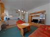 Die Ferienwohnung 2 befindet sich im Erdgeschoss des Hauses im Anbau. Die Wohnung ist jedoch nicht stufenlos erreichbar. Sie teilt sich auf in ein Wohnzimmer mit offener Pantry-Küche und Sitzbereich. Im Wohnzimmer befindet sich eine gemütliche Couch, ein Sessel und ein Flachbildfernseher. Der Sitzbereich dient auch als Essbereich mit einem höhenverstellbaren Tisch. Die Pantry-Küche ist ausgestattet mit 2-Platten-Herd, Kühlschrank mit Gefriermöglichkeit, Mikrowelle, Kaffeemaschine, Wasserkocher und Toaster.
