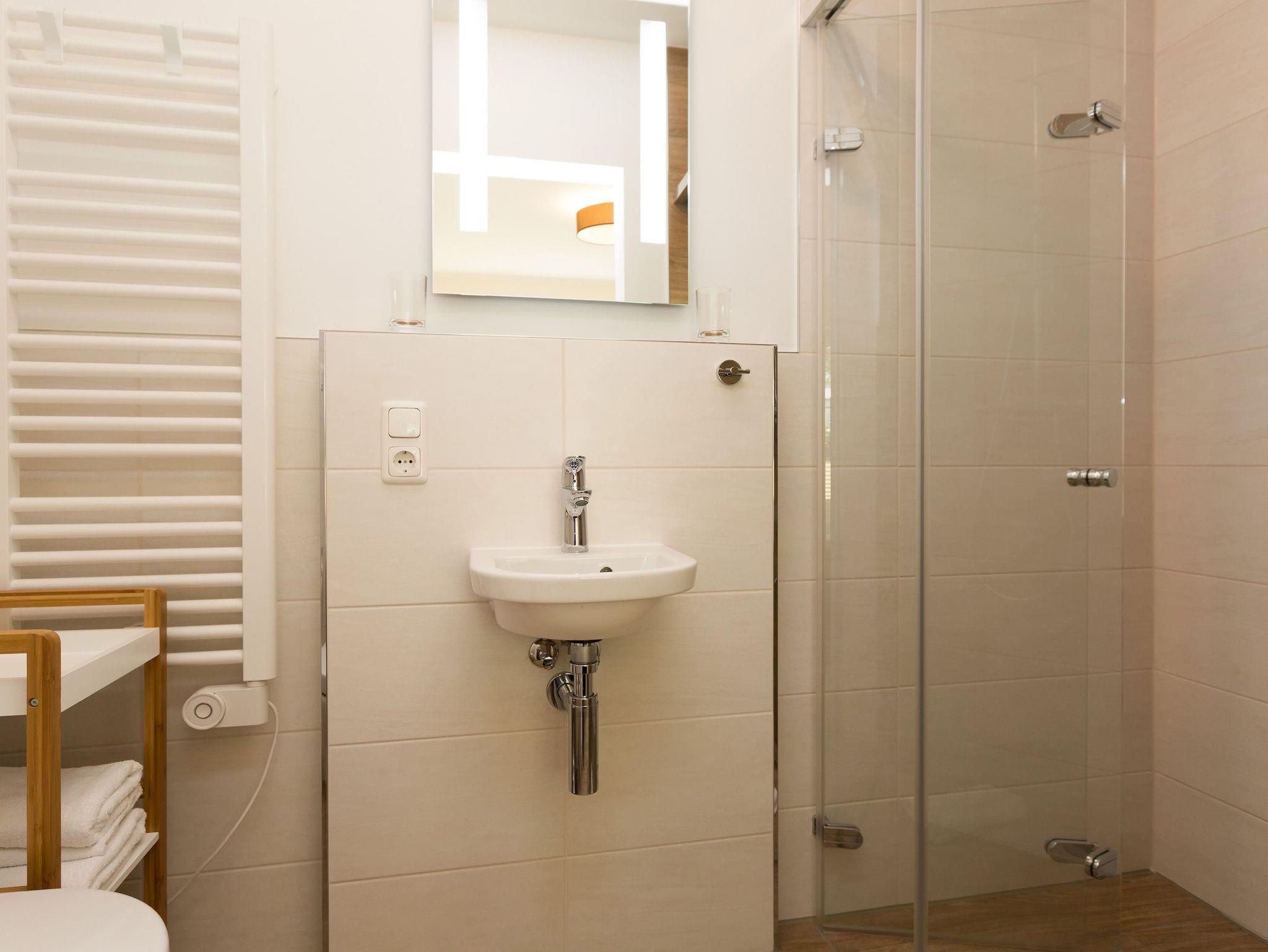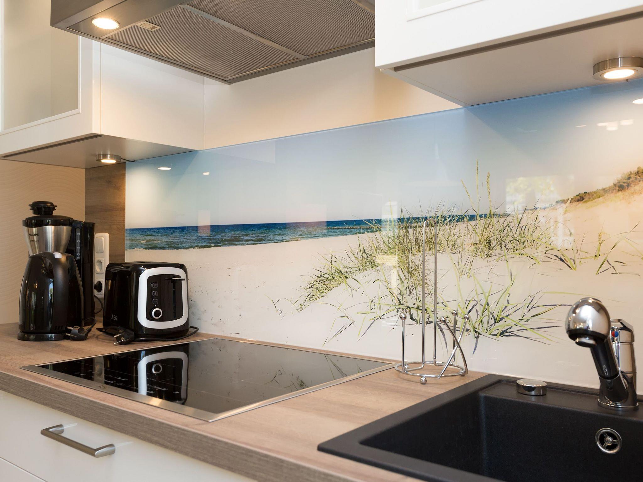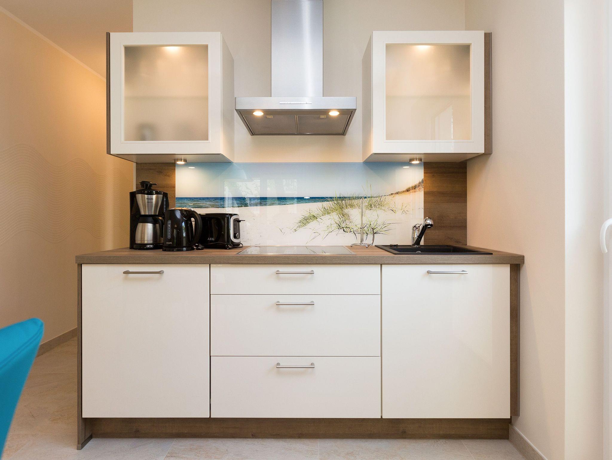 Modern wohnen - schöner Urlauben! Im neuen 3-Raum-Appartement 6 (67 qm) im Erdgeschoss der Dünenresidenz werden Sie erholsame Urlaubstage verleben. Bis zu 4 Personen und ein Kleinkind (als Aufbettung im Babyreisebett) finden hier Platz. Die geschmackvolle Einrichtung, abgestimmte Farben und Materialen und ausgesuchte Dekorationen schaffen ein wunderschönes Urlaubsdomizil. Schon beim Eintreten öffnet sich der helle Wohnbereich mit bequemer Sitzgruppe, Elektro-Kamin mit Fernbedienung und Flat-TV, die komplett ausgestattete Küchenzeile und der Essbereich schließen sich an. Zwei Schlafzimmer mit komfortablen Doppelboxspringbetten (1,80 m x 2,00 m und 1,60 m x 2,00 m) und eigenem Flat-TV sowie zwei Bäder mit Dusche und WC und einer Waschmaschine ergänzen die Wohnung. Selbstverständlich darf die wohnungseigene Sauna nicht fehlen! Ein weiteres Highlight des Appartements ist die großzügige Nord-Ost-Terrasse mit Gartenmöbeln (Zugang vom Wohnbereich und von einem Schlafzimmer). Bevor der Strand lockt, genießt man bei Meeresrauschen hier sein Frühstück in der Morgensonne. Für Ihren Komfort sind bei der Anreise die Betten bezogen und die Erstausstattung Handtücher liegt bereit. Das kostenfreie WLAN steht Ihnen zur Verfügung. Ein Pkw-Stellplatz befindet sich in der Tiefgarage (max. Einfahrtshöhe 1,85 m) und für Fahrräder gibt es einen separaten Abstellraum im Keller.