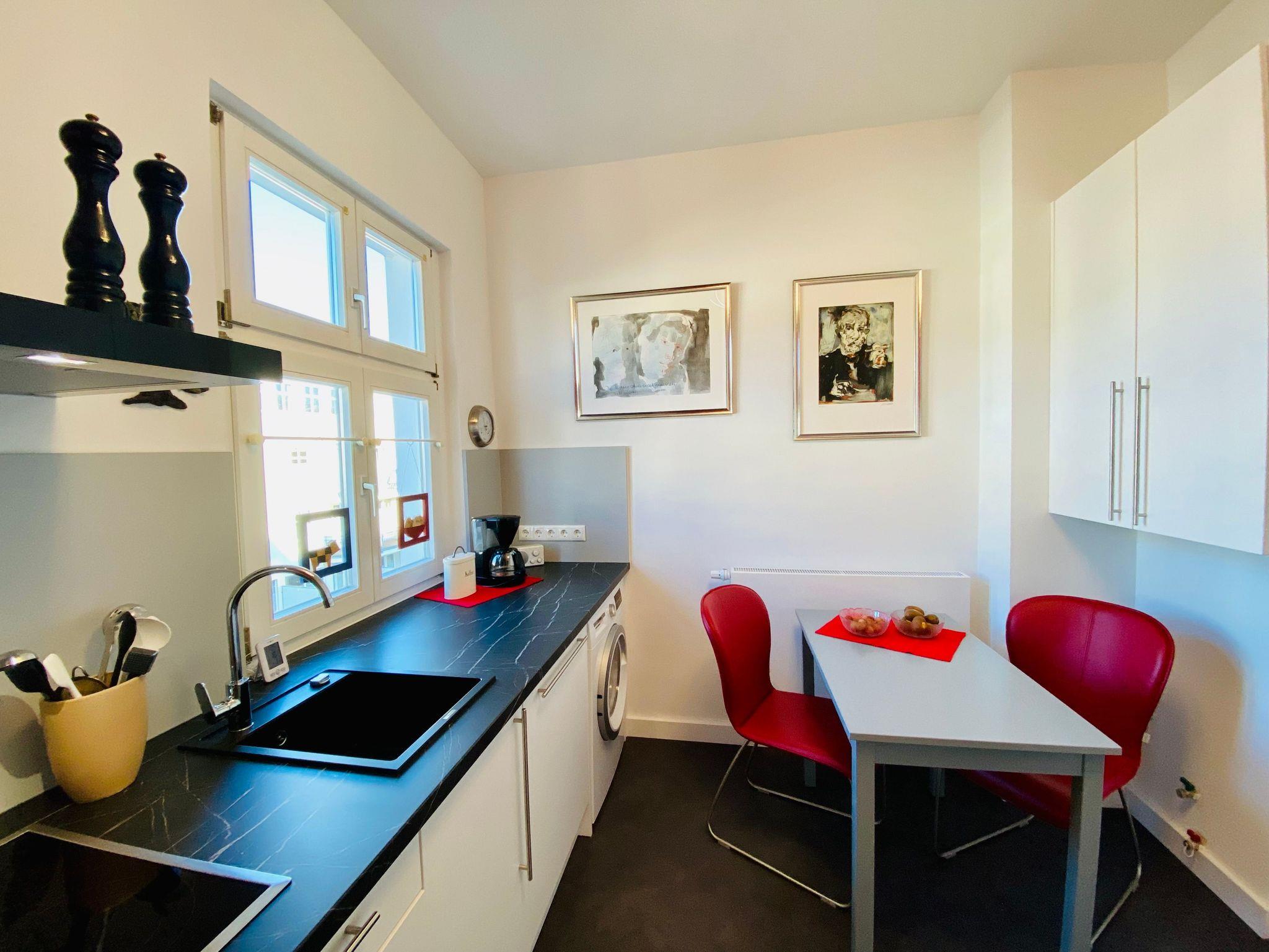 Die Ferienwohnung ist mit Echtholz ausgelegt und exklusiv dekoriert. WLAN und der Parkplatz sind inklusive