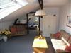 Das kombinierte Wohn- und Schlafzimmer, mit freistehenden Balken und Dachschrägen, ist ausgestattet mit einem Doppelbett, einer Couchgarnitur, ein Flachbild-TV und mit einem DVD/CD-Player. Vom Wohnzimmer gelangen Sie direkt in die offene Küche mit Backofen, Spülmaschine Mikrowelle, Herd, Kaffeemaschine und einem Kühlschrank mit integrierter Gefriermöglichkeit.