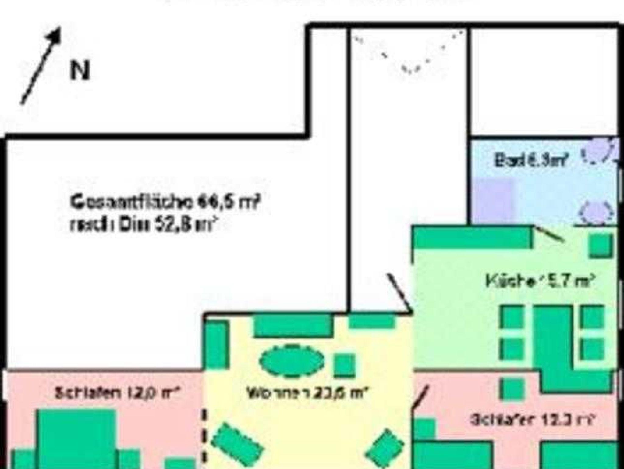 Mit rund 55m² Wohnfläche bietet die Wohnung Platz für bis zu vier Personen. Sie verfügt über: