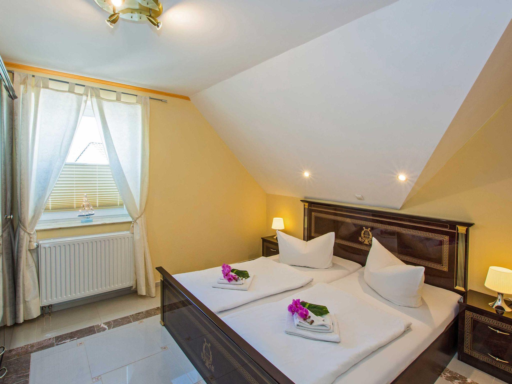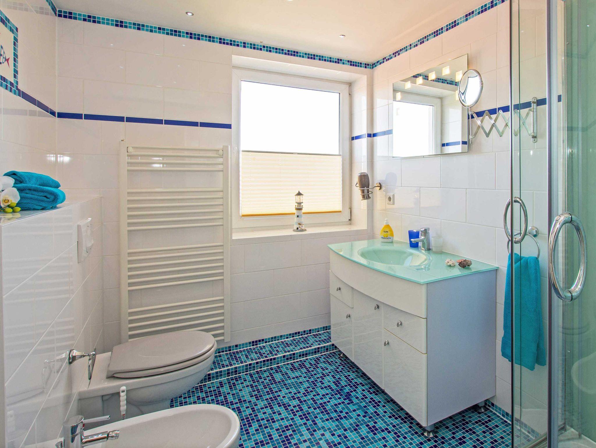 Jede der Ferienwohnungen ist ein gemütliches Zweiraumapartment mit einer großzügigen Wohnfläche von 50 Quadratmetern. Die Wohnung Nizza im 2. Obergeschoss ist perfekt für bis zu 2 Gäste plus Baby, während die anderen vier Wohnungen (Barcelona und Granada im Erdgeschoss, Pisa und Florenz im 1. Obergeschoss) Platz für bis zu 3 Gäste plus Baby bieten. Genießen Sie die exklusiv gestalteten Schlafzimmer und die bequeme Schlafcouch in den Wohnzimmern, die in einem warmen südländischen Flair erstrahlen und auch in der kalten Jahreszeit ein angenehmes Raumklima schaffen. In vier der Wohnungen (die im Erdgeschoss und 1. OG) sorgt ein Kamin im Wohnbereich für zusätzliche Gemütlichkeit. Der Wohnbereich ist mit modernem Komfort ausgestattet, darunter ein 40 3D Flat TV, eine Hifi-Soundanlage mit Blue-Ray Player und hochwertigem Mobiliar. Die voll ausgestattete Küche lässt keine Wünsche offen. Die maritim gestalteten Bäder verfügen über eine Dusche, WC, Bidet und einen Waschtisch mit Spiegel.