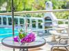 An der Seite der Villa Europa vorbei über die Terrasse gelangen Sie direkt zum sonnenbeheizten gemeinschaftlichen Außenpool, zum Grillplatz, zu den Sonnenliegen sowie zu dem XXL-Strandkorb.