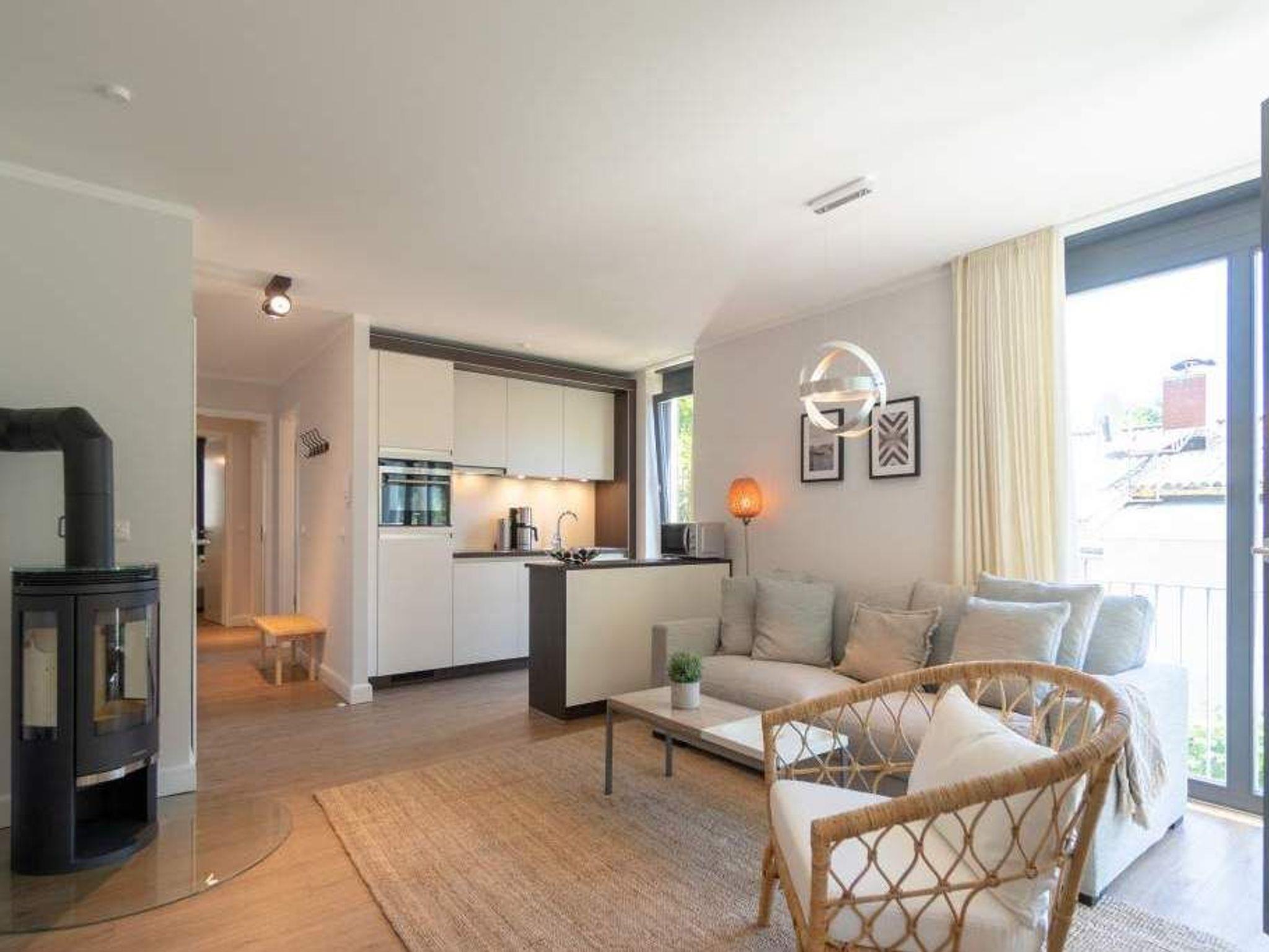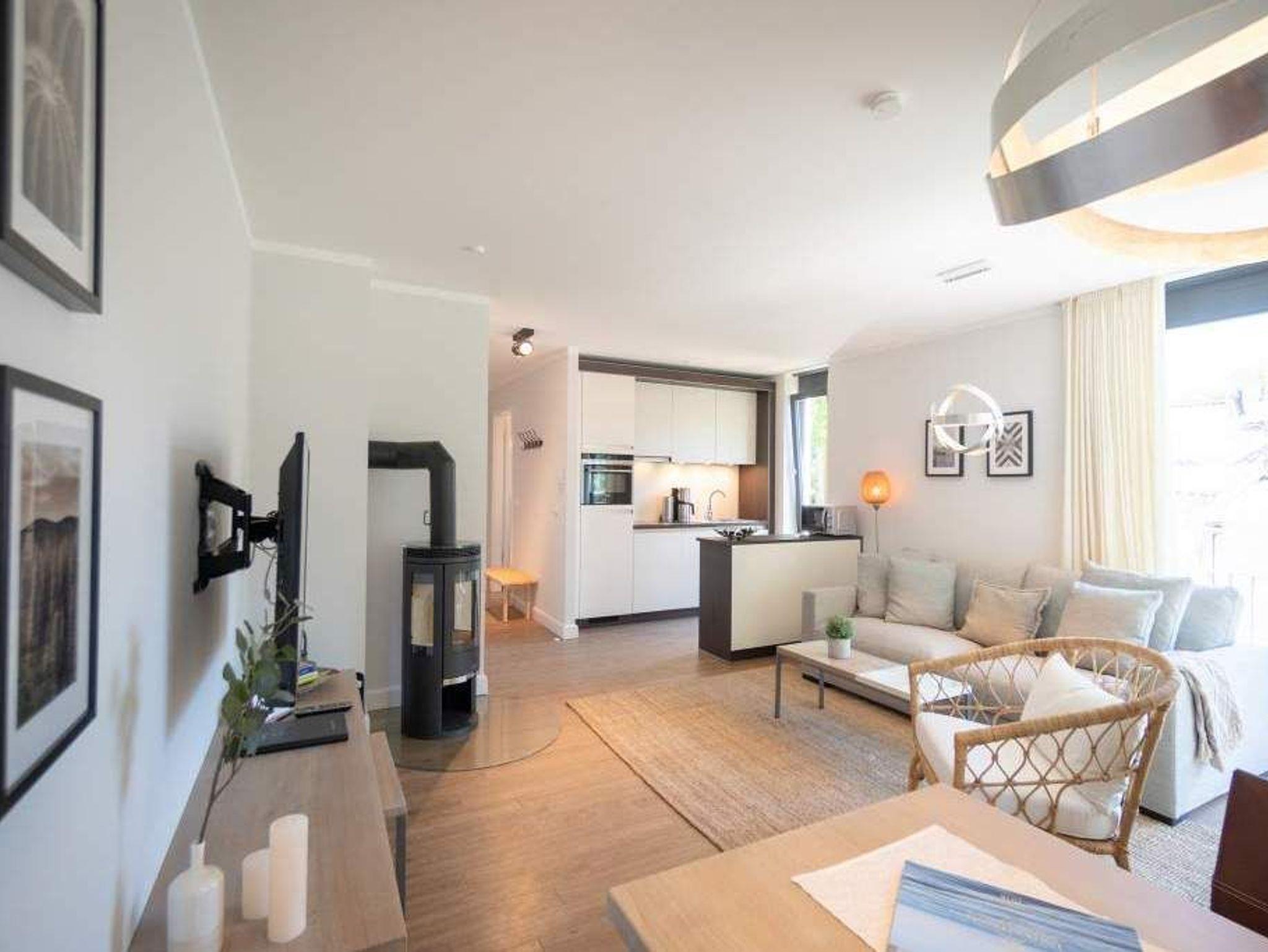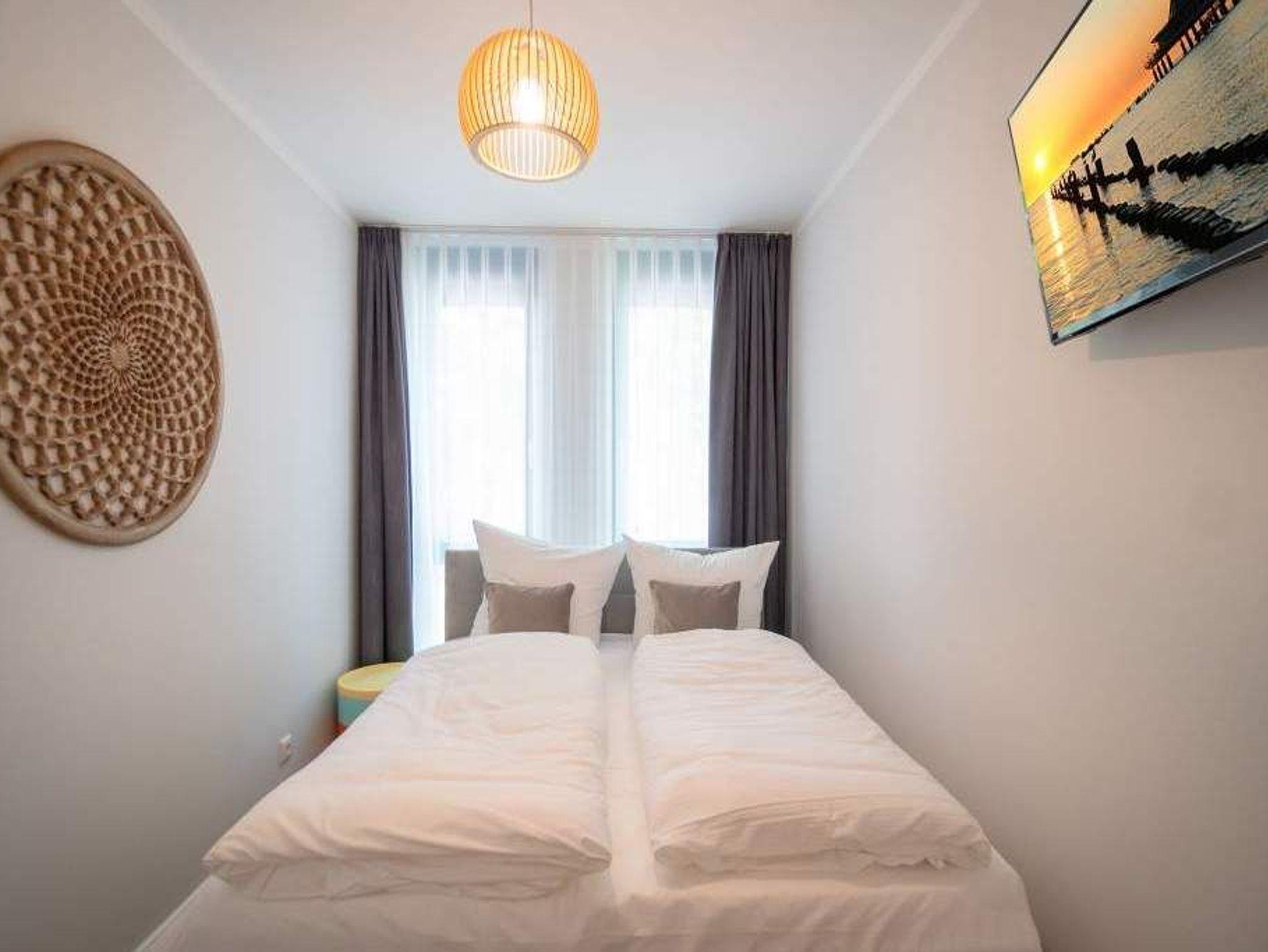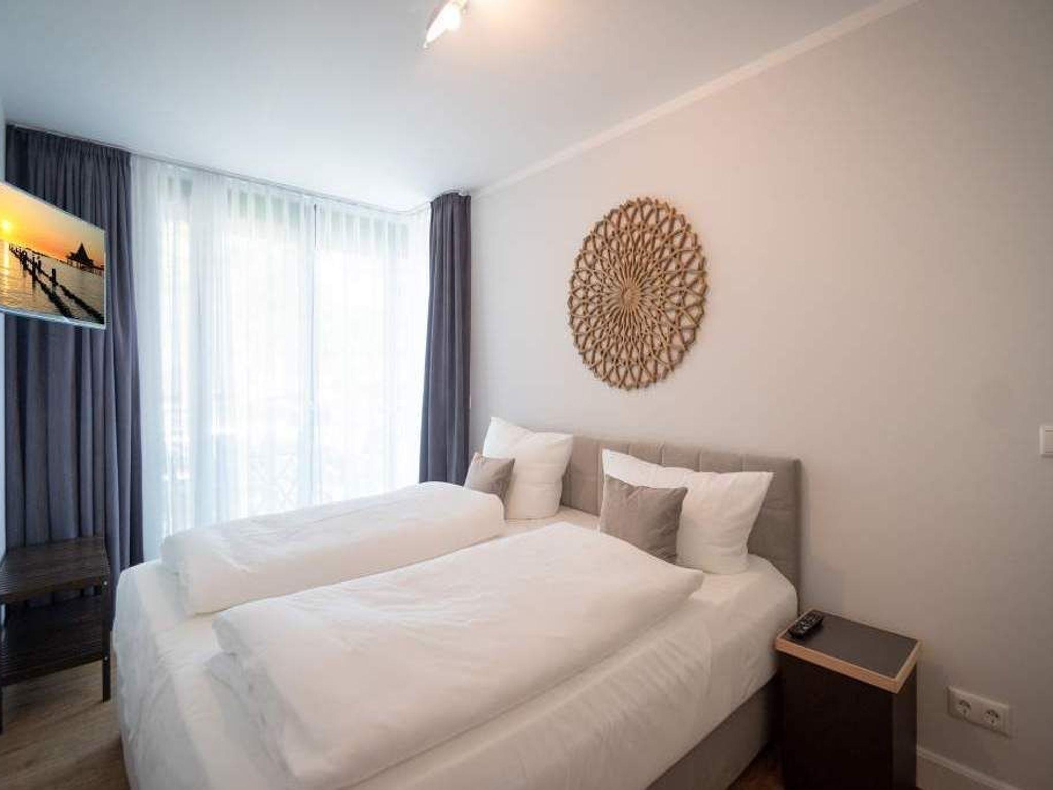 Ob als Single, Paar, Familie oder Freunde - in diesem strandnahen und idyllischen Feriendomizil können sich bis zu vier Personen und ein Kleinkind bis zwei Jahre (im Kinderreisebett) bei einer Auszeit wohlfühlen. Denn die Drei-Raumwohnung ist knapp 70 Quadratmeter groß. Im Hochparterre der Villa Maxim gelegen, hat sie einen schönen Süd-Balkon. Genießen Sie das Bad in der Sonne oder Relaxen Sie bei einem erfrischenden Getränk. Ideal zum Relaxen ist auch das geräumige und helle Wohn-Ess-Zimmer. Von der bequemen Sitzgruppe aus haben Sie Blick auf den urigen Kaminofen und den großen Flat-TV. Die zum Wohnzimmer hin offene Küche ist mit einem kleinen Tresen abgeteilt. Mit hochwertigen Markengeräten voll ausgestattet, können Sie hier vom Frühstück bis zum Abendessen alle Mahlzeiten zubereiten. Der schöne Esstisch befindet sich ebenfalls im selben Raum. Ein stylisches Lampendesign-Konzept sorgt dafür, dass es Ihnen nie zu dunkel wird. Pures Schlafvergnügen finden Sie in den zwei Schlafzimmern. Das etwas größere der beiden hat einen eigenen kleinen Balkon, ein Boxspringdoppelbett (1,80 m x 2,00 m), einen Flat-TV und einen Kleiderschrank. Auch das zweite Schlafzimmer eignet sich bestens für entspannte Urlaubsträume. Ein komfortables Boxspringdoppelbett (1,60 m x 2,00 m), ein Flat-TV und ein Kleiderschrank mit reichlich Ablagefläche warten auf Sie. Das Tageslichtbad verfügt über eine Regendusche, einen Waschtisch und ein WC. Sollte das Wetter einmal nicht zum Inselentdecken einladen ? was auf Usedom äußerst selten vorkommt ? können Sie sich im hauseigenen Spa-Bereich im Erdgeschoss der Villa Maxim entspannen. Hier befinden sich zwei Saunen, ein Ruheraum mit Flat-TV und eine Dusche zu Ihrer freien Verfügung. Zur Wohnung gehört außerdem ein Außenstellplatz. Das WLAN ist kostenfrei. Wenn Sie ankommen, sind die Betten bezogen und Handtücher liegen bereit.
