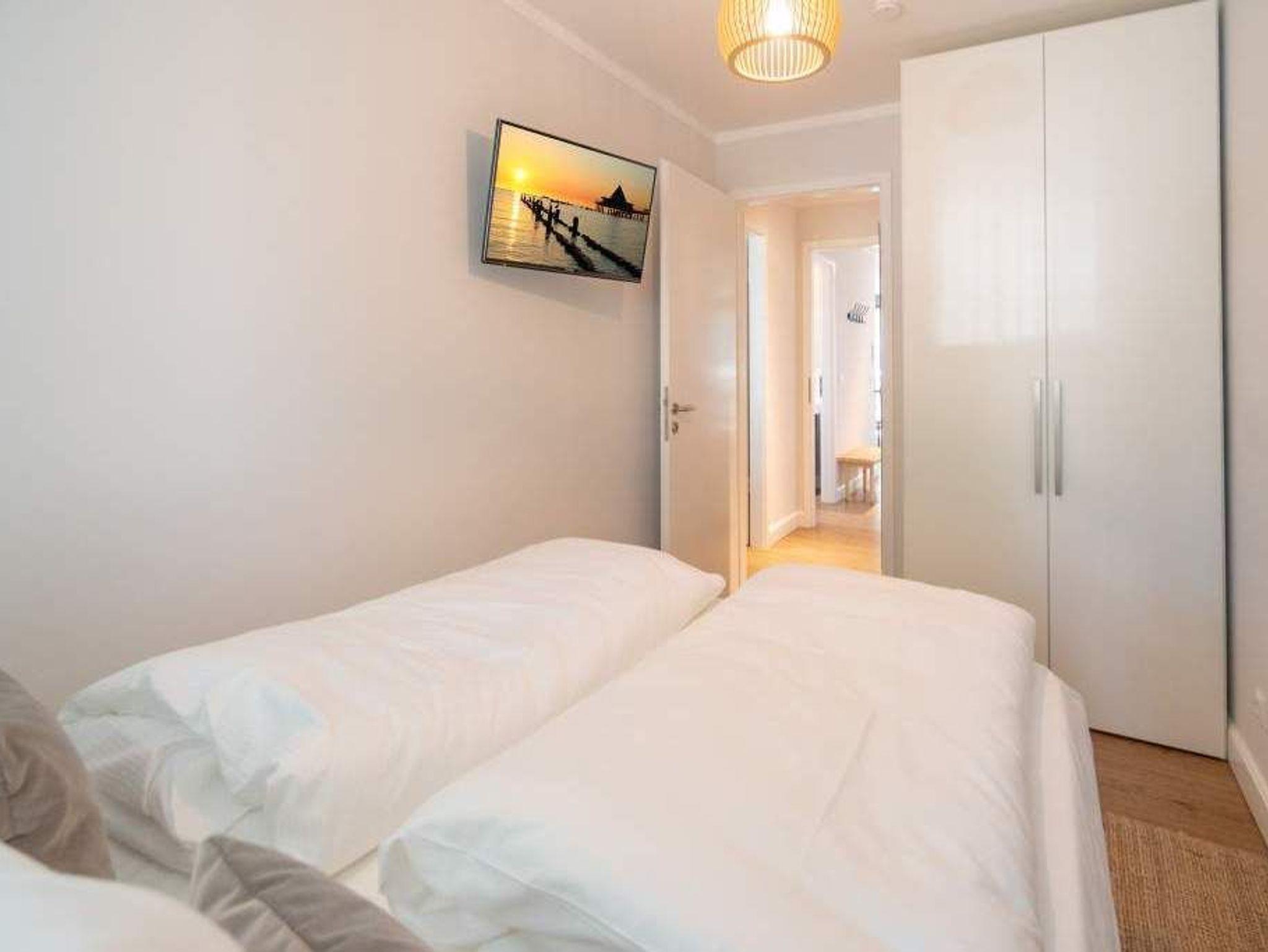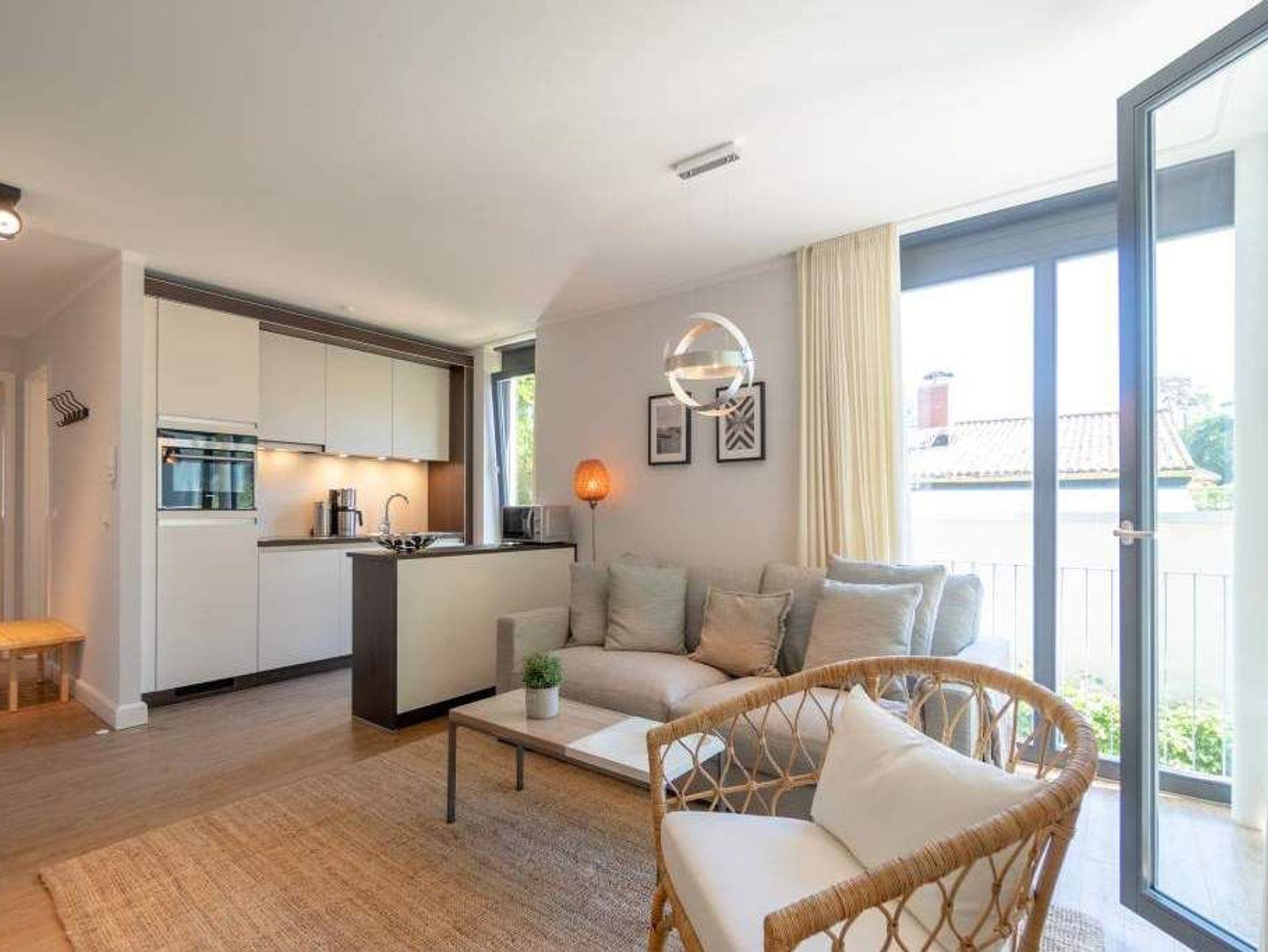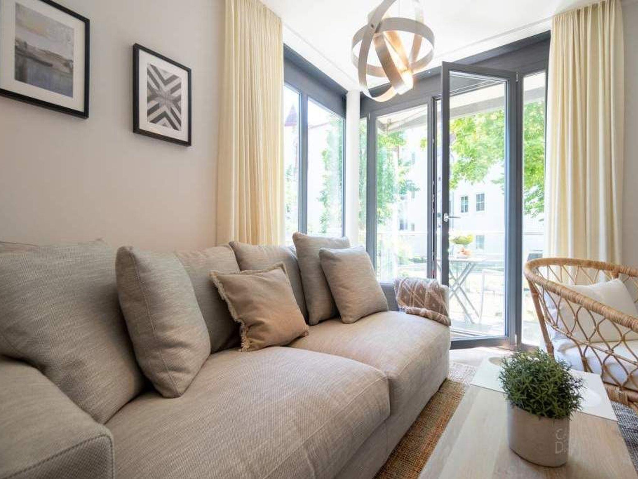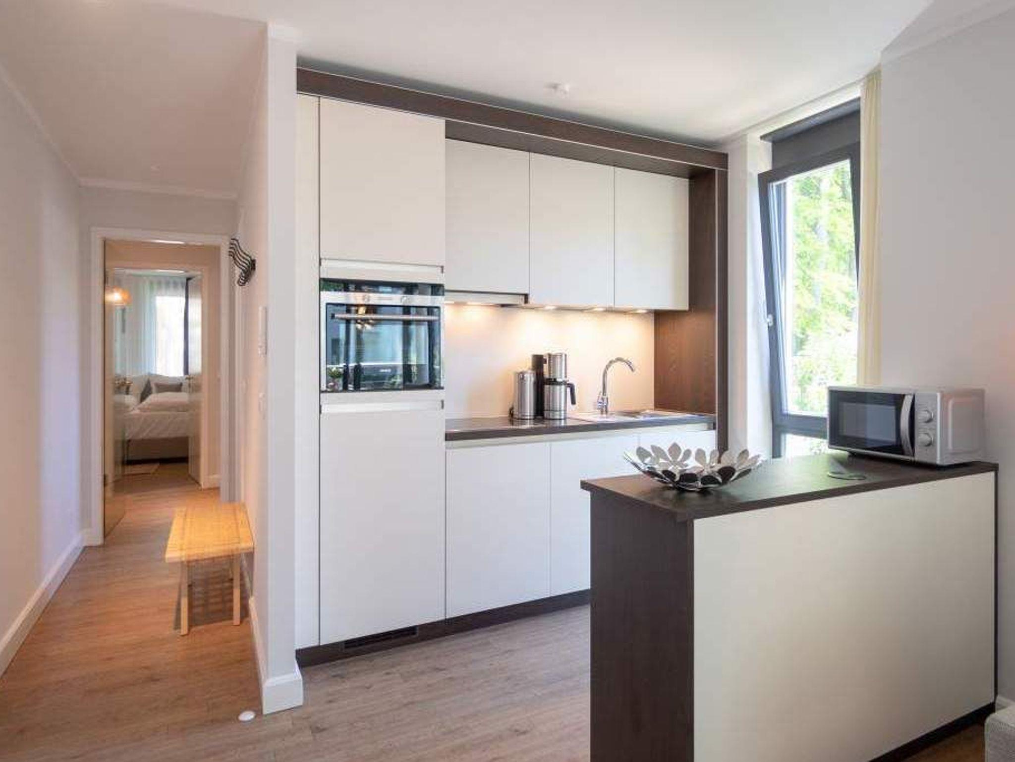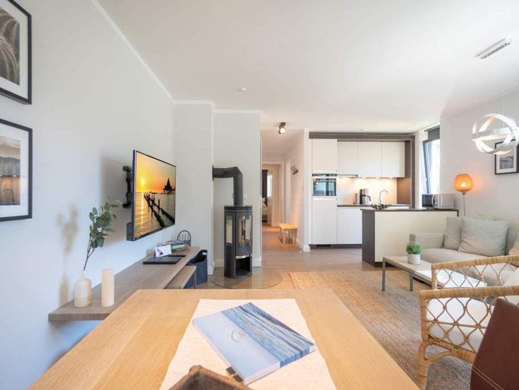 Ob als Single, Paar, Familie oder Freunde - in diesem strandnahen und idyllischen Feriendomizil können sich bis zu vier Personen und ein Kleinkind bis zwei Jahre (im Kinderreisebett) bei einer Auszeit wohlfühlen. Denn die Drei-Raumwohnung ist knapp 70 Quadratmeter groß. Im Hochparterre der Villa Maxim gelegen, hat sie einen schönen Süd-Balkon. Genießen Sie das Bad in der Sonne oder Relaxen Sie bei einem erfrischenden Getränk. Ideal zum Relaxen ist auch das geräumige und helle Wohn-Ess-Zimmer. Von der bequemen Sitzgruppe aus haben Sie Blick auf den urigen Kaminofen und den großen Flat-TV. Die zum Wohnzimmer hin offene Küche ist mit einem kleinen Tresen abgeteilt. Mit hochwertigen Markengeräten voll ausgestattet, können Sie hier vom Frühstück bis zum Abendessen alle Mahlzeiten zubereiten. Der schöne Esstisch befindet sich ebenfalls im selben Raum. Ein stylisches Lampendesign-Konzept sorgt dafür, dass es Ihnen nie zu dunkel wird. Pures Schlafvergnügen finden Sie in den zwei Schlafzimmern. Das etwas größere der beiden hat einen eigenen kleinen Balkon, ein Boxspringdoppelbett (1,80 m x 2,00 m), einen Flat-TV und einen Kleiderschrank. Auch das zweite Schlafzimmer eignet sich bestens für entspannte Urlaubsträume. Ein komfortables Boxspringdoppelbett (1,60 m x 2,00 m), ein Flat-TV und ein Kleiderschrank mit reichlich Ablagefläche warten auf Sie. Das Tageslichtbad verfügt über eine Regendusche, einen Waschtisch und ein WC. Sollte das Wetter einmal nicht zum Inselentdecken einladen ? was auf Usedom äußerst selten vorkommt ? können Sie sich im hauseigenen Spa-Bereich im Erdgeschoss der Villa Maxim entspannen. Hier befinden sich zwei Saunen, ein Ruheraum mit Flat-TV und eine Dusche zu Ihrer freien Verfügung. Zur Wohnung gehört außerdem ein Außenstellplatz. Das WLAN ist kostenfrei. Wenn Sie ankommen, sind die Betten bezogen und Handtücher liegen bereit.