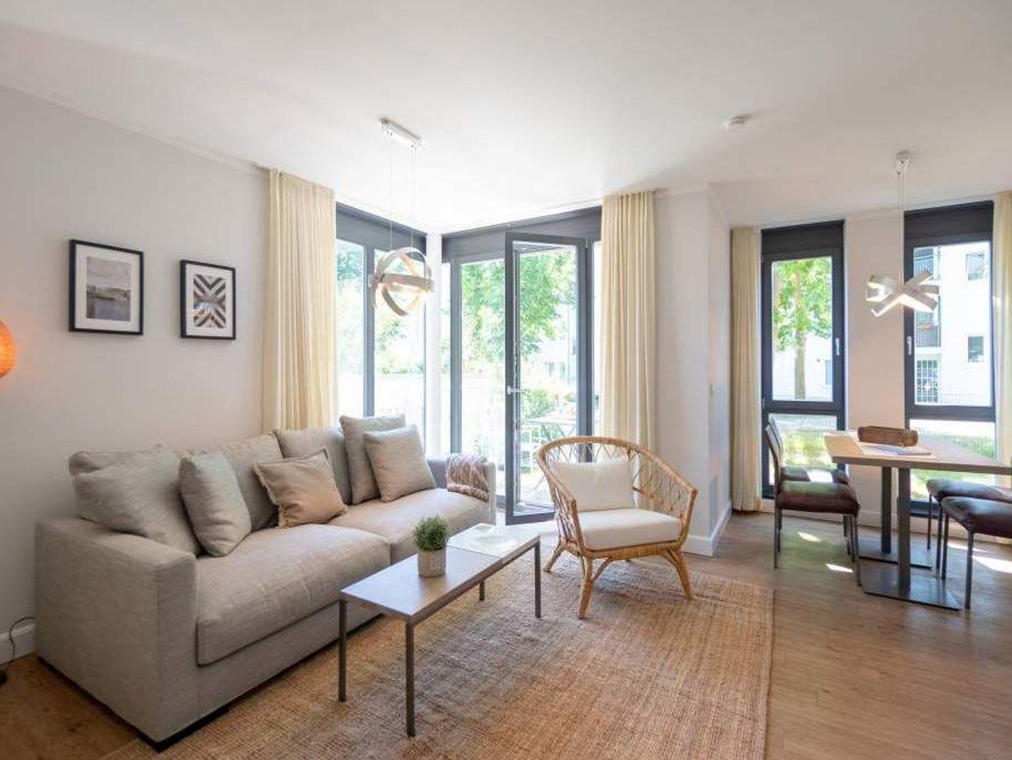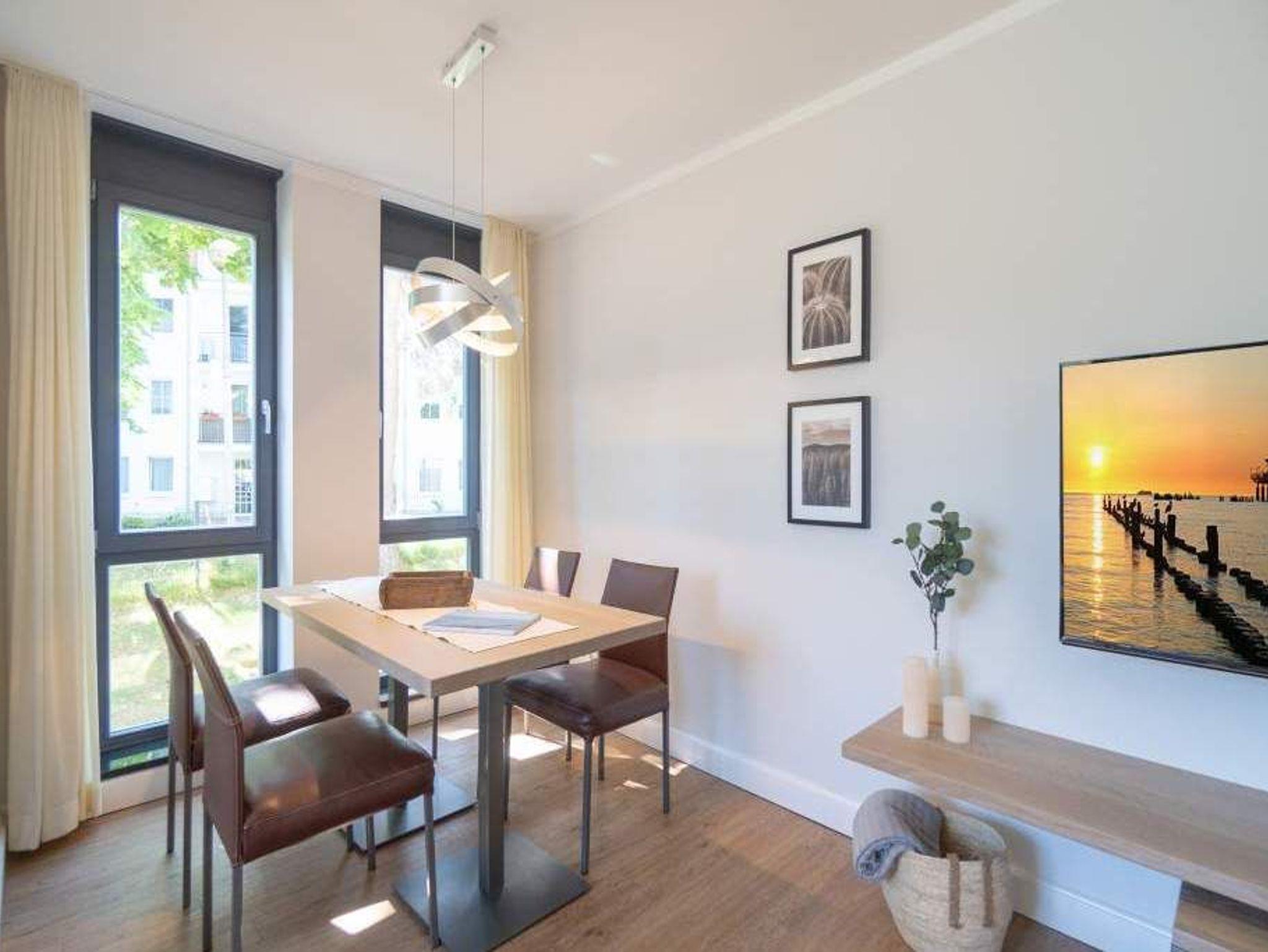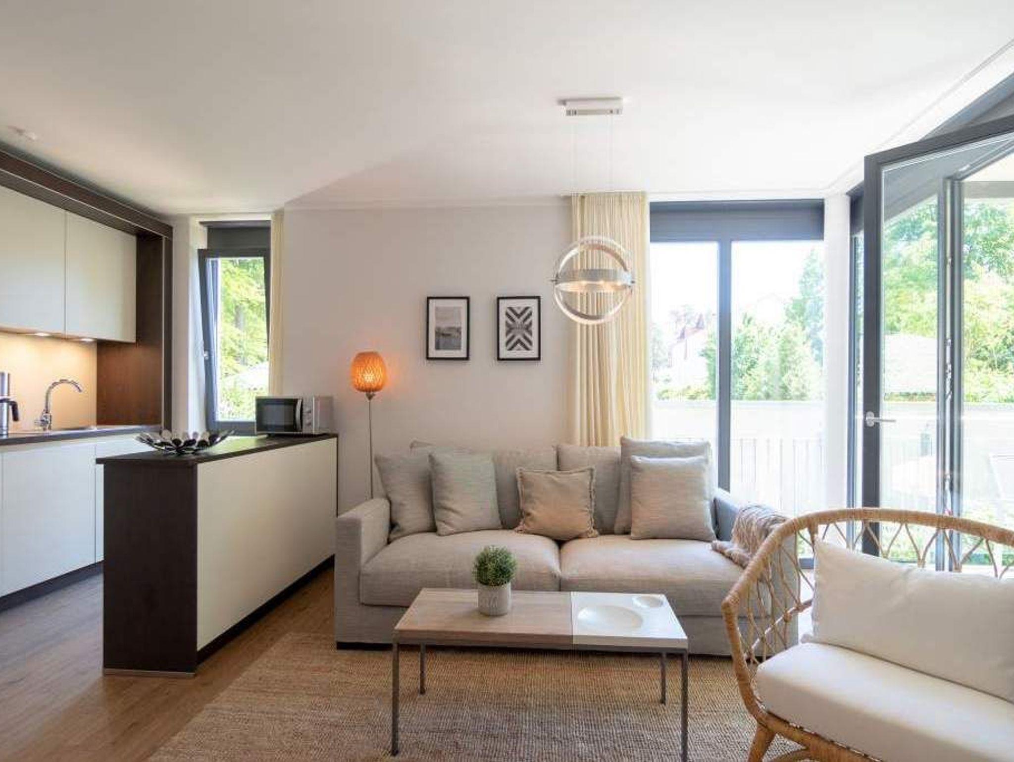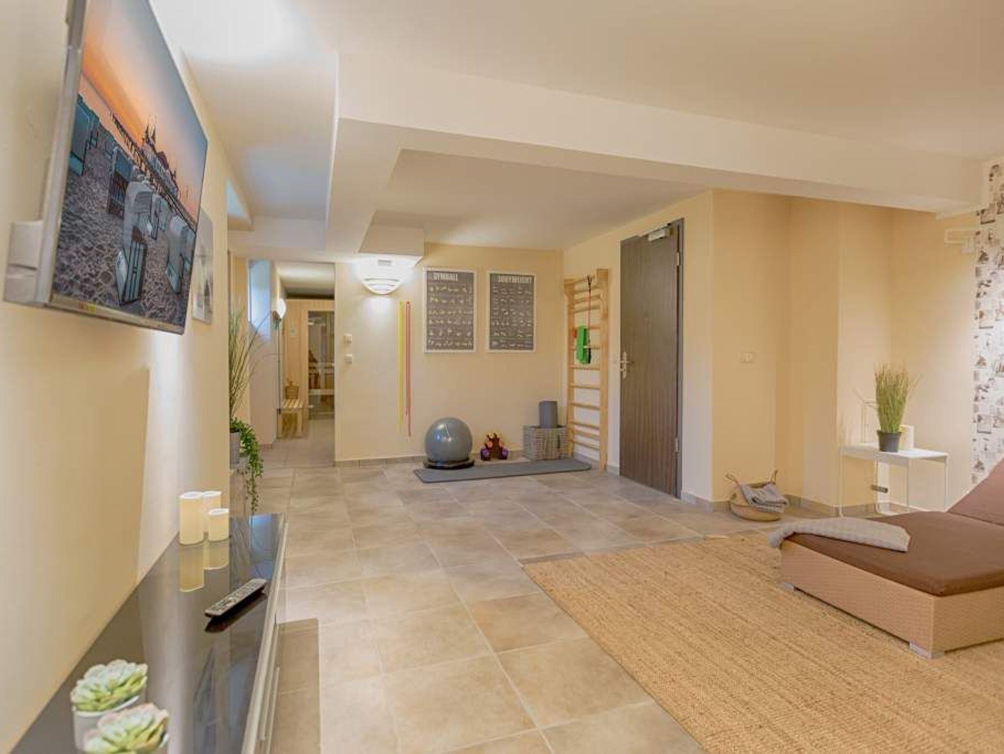 Ob als Single, Paar, Familie oder Freunde - in diesem strandnahen und idyllischen Feriendomizil können sich bis zu vier Personen und ein Kleinkind bis zwei Jahre (im Kinderreisebett) bei einer Auszeit wohlfühlen. Denn die Drei-Raumwohnung ist knapp 70 Quadratmeter groß. Im Hochparterre der Villa Maxim gelegen, hat sie einen schönen Süd-Balkon. Genießen Sie das Bad in der Sonne oder Relaxen Sie bei einem erfrischenden Getränk. Ideal zum Relaxen ist auch das geräumige und helle Wohn-Ess-Zimmer. Von der bequemen Sitzgruppe aus haben Sie Blick auf den urigen Kaminofen und den großen Flat-TV. Die zum Wohnzimmer hin offene Küche ist mit einem kleinen Tresen abgeteilt. Mit hochwertigen Markengeräten voll ausgestattet, können Sie hier vom Frühstück bis zum Abendessen alle Mahlzeiten zubereiten. Der schöne Esstisch befindet sich ebenfalls im selben Raum. Ein stylisches Lampendesign-Konzept sorgt dafür, dass es Ihnen nie zu dunkel wird. Pures Schlafvergnügen finden Sie in den zwei Schlafzimmern. Das etwas größere der beiden hat einen eigenen kleinen Balkon, ein Boxspringdoppelbett (1,80 m x 2,00 m), einen Flat-TV und einen Kleiderschrank. Auch das zweite Schlafzimmer eignet sich bestens für entspannte Urlaubsträume. Ein komfortables Boxspringdoppelbett (1,60 m x 2,00 m), ein Flat-TV und ein Kleiderschrank mit reichlich Ablagefläche warten auf Sie. Das Tageslichtbad verfügt über eine Regendusche, einen Waschtisch und ein WC. Sollte das Wetter einmal nicht zum Inselentdecken einladen ? was auf Usedom äußerst selten vorkommt ? können Sie sich im hauseigenen Spa-Bereich im Erdgeschoss der Villa Maxim entspannen. Hier befinden sich zwei Saunen, ein Ruheraum mit Flat-TV und eine Dusche zu Ihrer freien Verfügung. Zur Wohnung gehört außerdem ein Außenstellplatz. Das WLAN ist kostenfrei. Wenn Sie ankommen, sind die Betten bezogen und Handtücher liegen bereit.