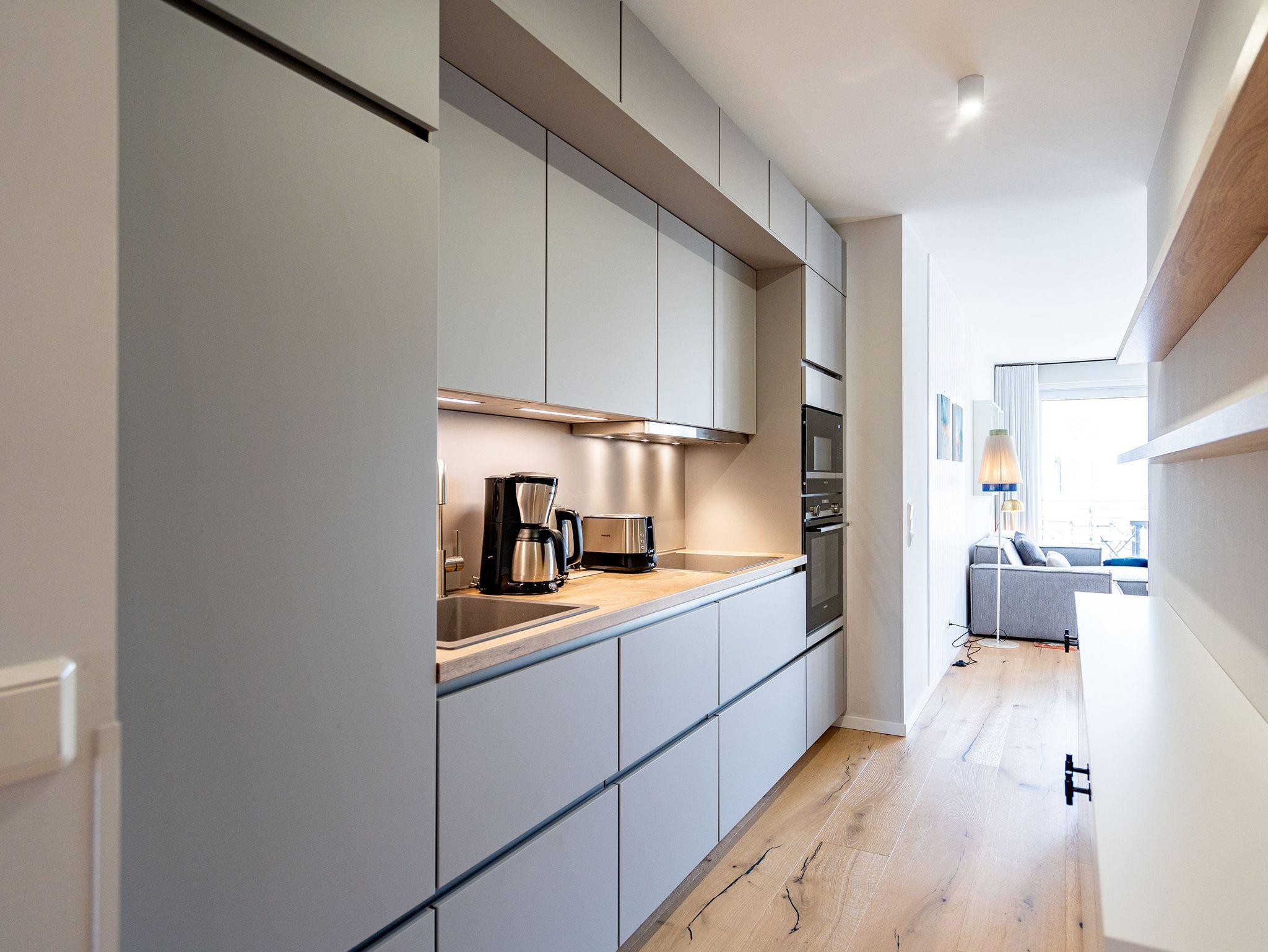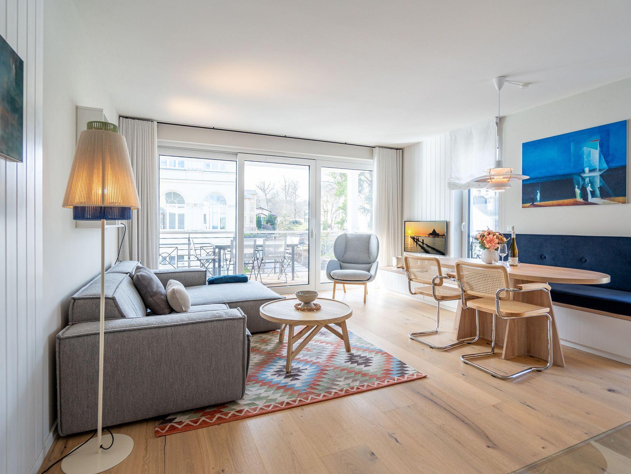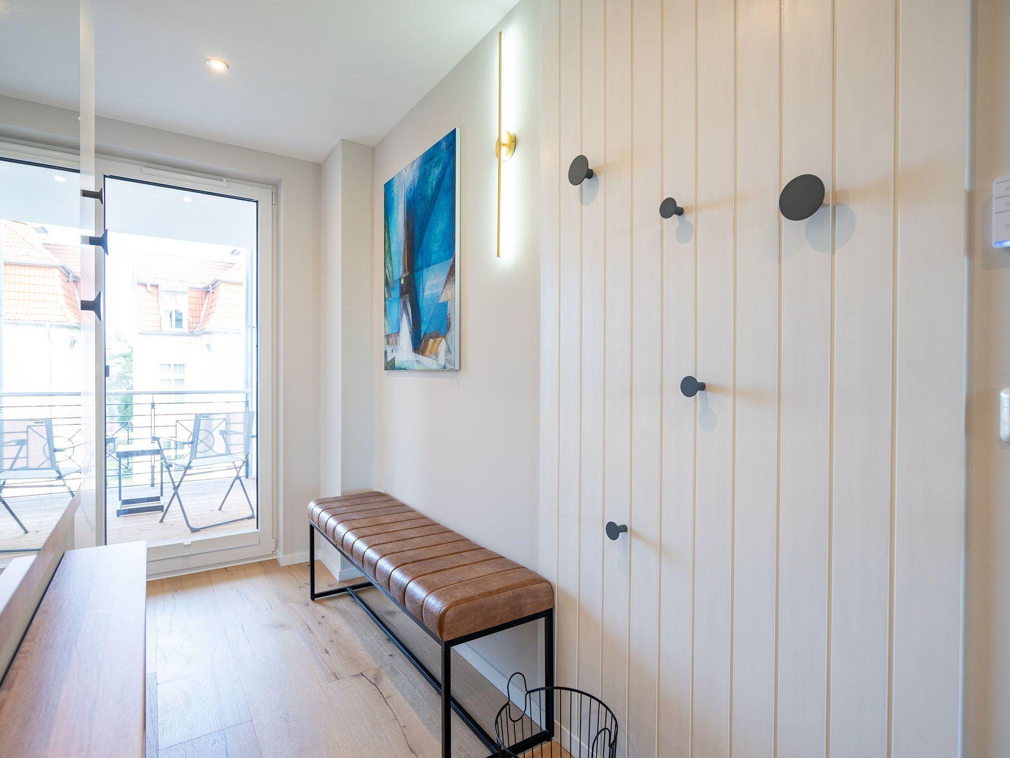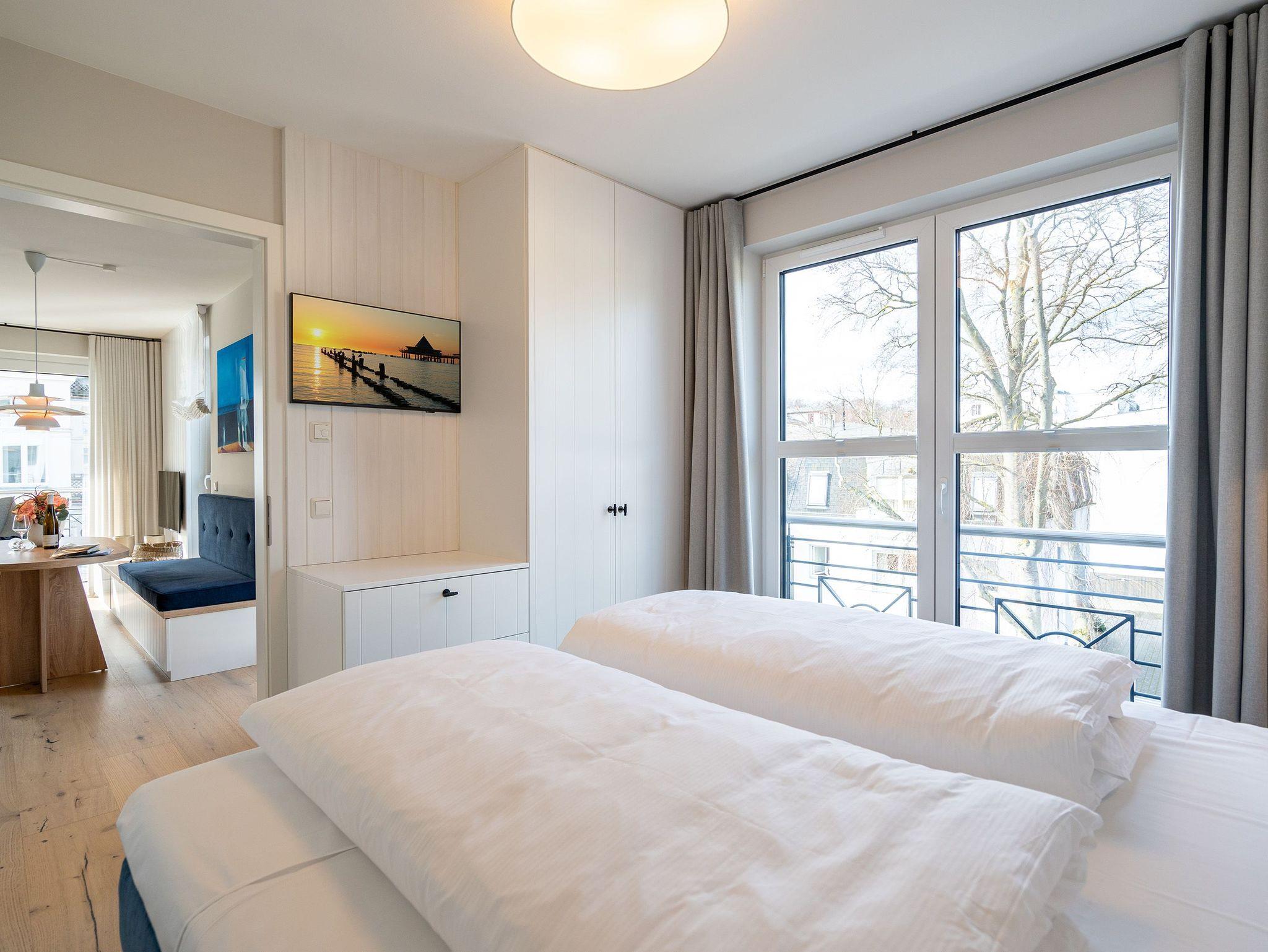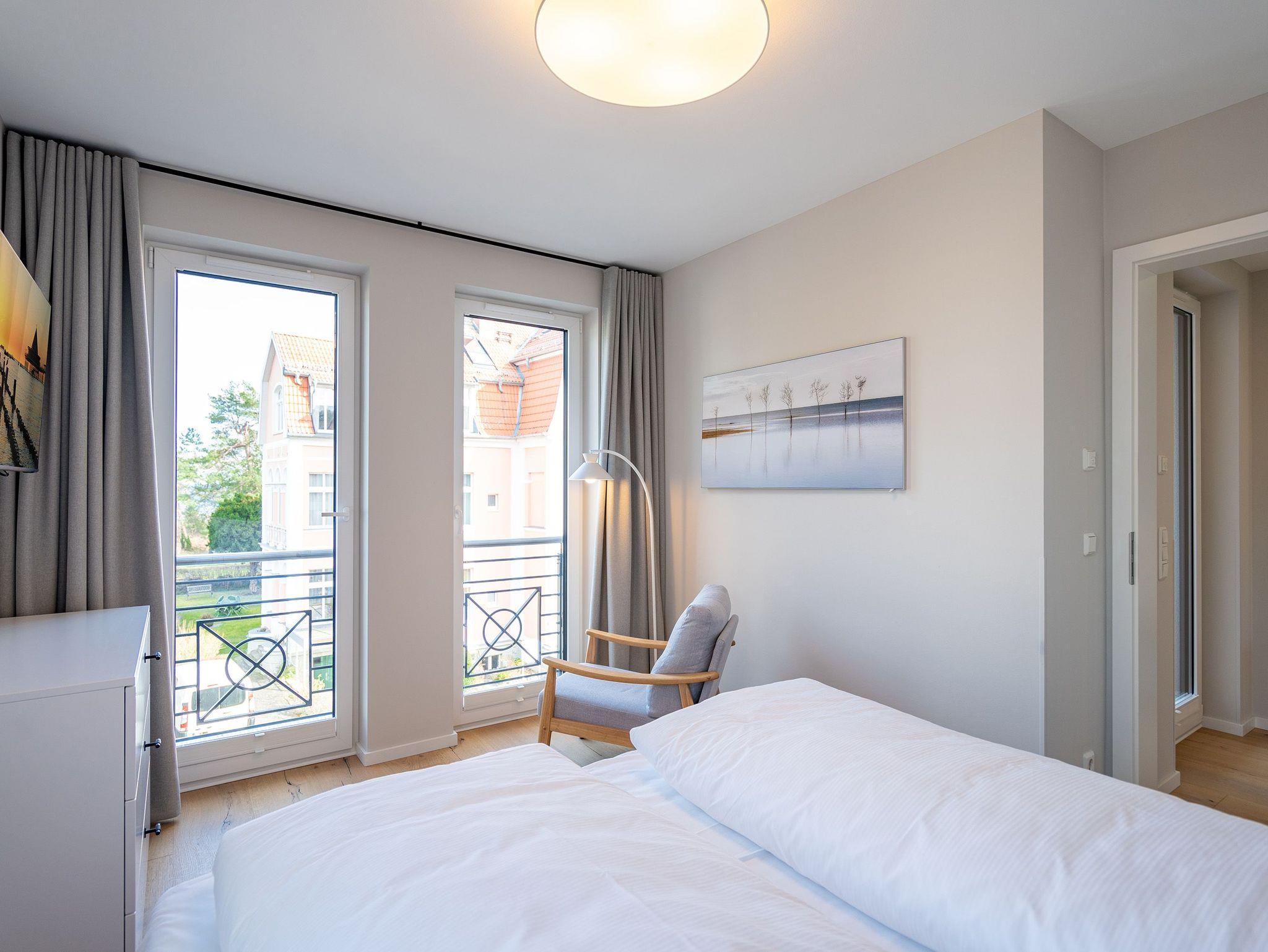 Nur 50m vom Strand entfernt und in einer kleinen Nebenstraße gelegen, empfängt Sie unser neues Domizil Quartier am Strand. Als zweites Objekt am Platz direkt an der schönen Strandpromenade gelegen, fügt sich die Anlage stilvoll zwischen Bäderstilvillen und Strandumgebung ein. Die insgesamt 9 Appartements und 2 Penthouses verfügen über helle und modern eingerichtete 2 bis 3 Zimmer. An kühleren Tagen sorgen Saunen und Kamin, die zu jedem Appartement gehören, für Entspannung in Ihrem Urlaub. Dem Klang der Wellen können Sie bequem von den Terrassen, Balkonen und Dachterrassen aus zuhören, denn jedes Appartement besitzt einen separaten Außenbereich. Der Blick auf die Ostsee ist Ihnen aus einigen Appartements möglich, aus den Penthouses garantiert. Offene Wohnbereiche und voll ausgestattete Küchen komplettieren das neue Objekt Quartier am Strand. Zudem gibt es eine hauseigene Tiefgarage (Einfahrthöhe 2,05 m) sowie einen Außenstellplatz (für Appartement 3), so dass ein eigener PKW-Stellplatz garantiert ist. Zu den weiteren Annehmlichkeiten des Objektes zählt ein Fahrstuhl, der Sie von der Tiefgarage bequem bis in die Etage Ihres Urlaubsdomizils leitet. Kostenfreies W-Lan rundet das Domizil ab. Wir wünschen Ihnen einen schönen Urlaub!