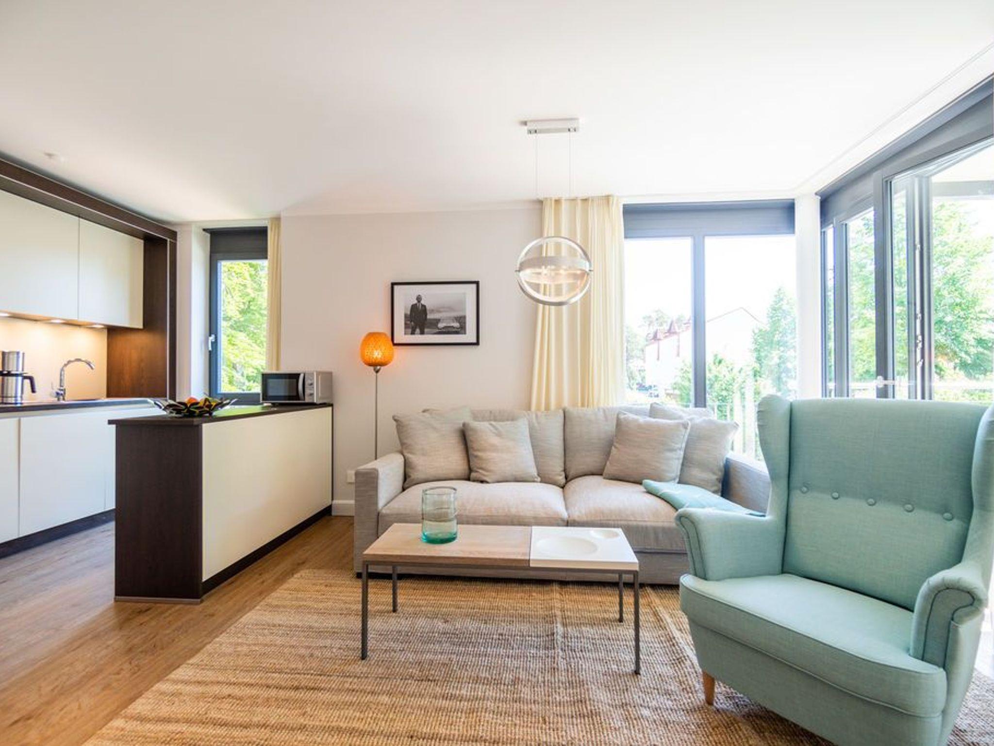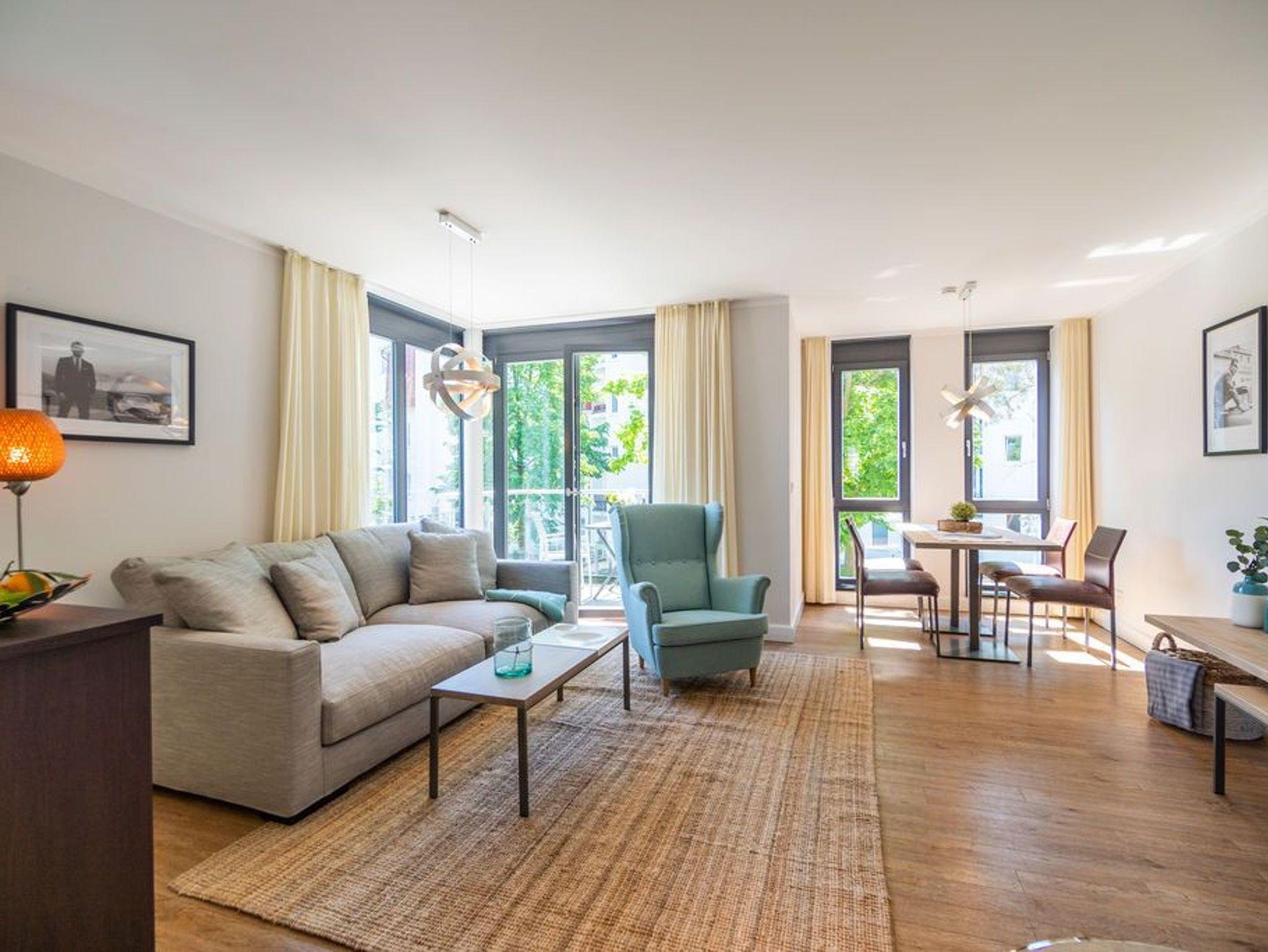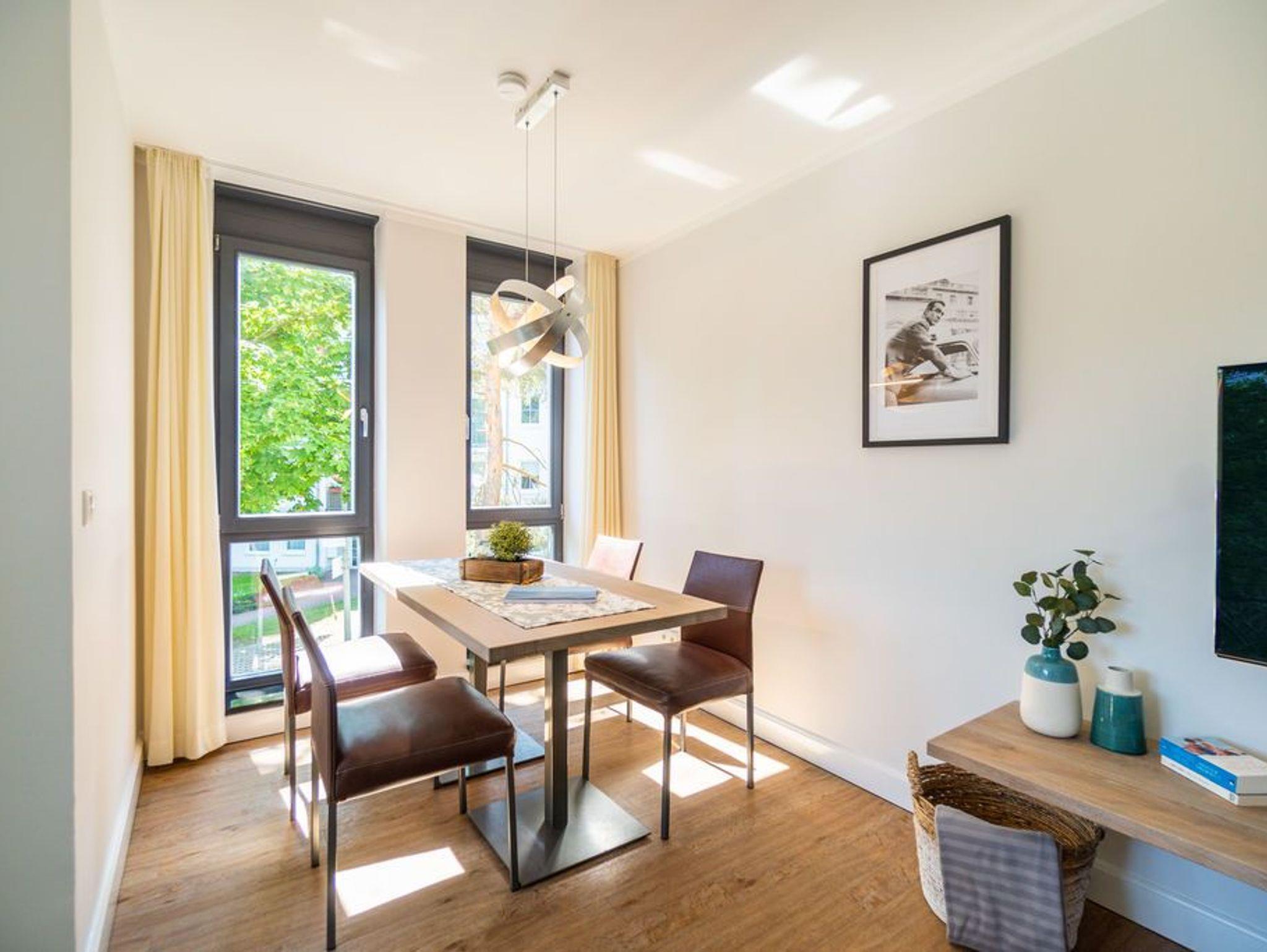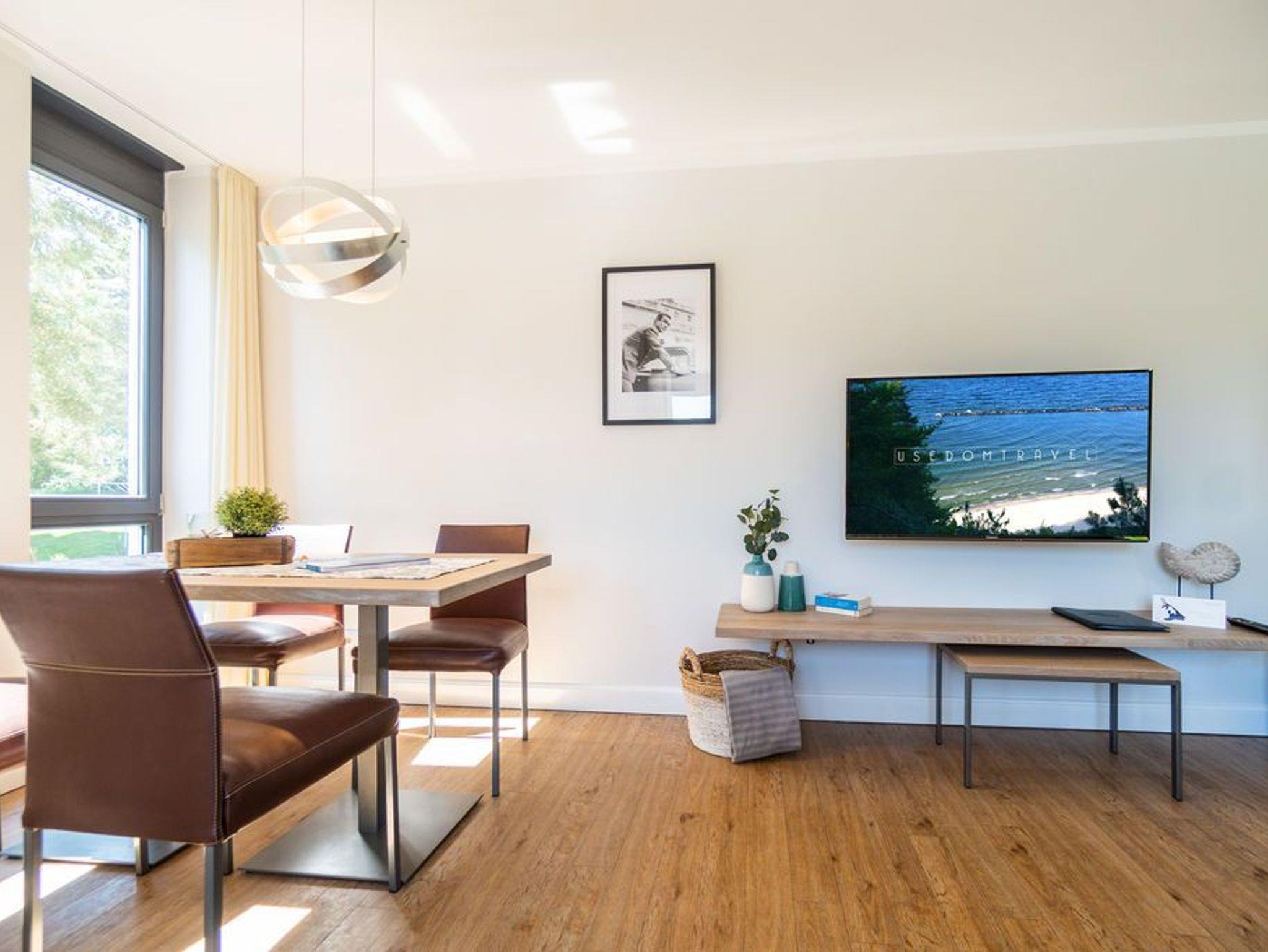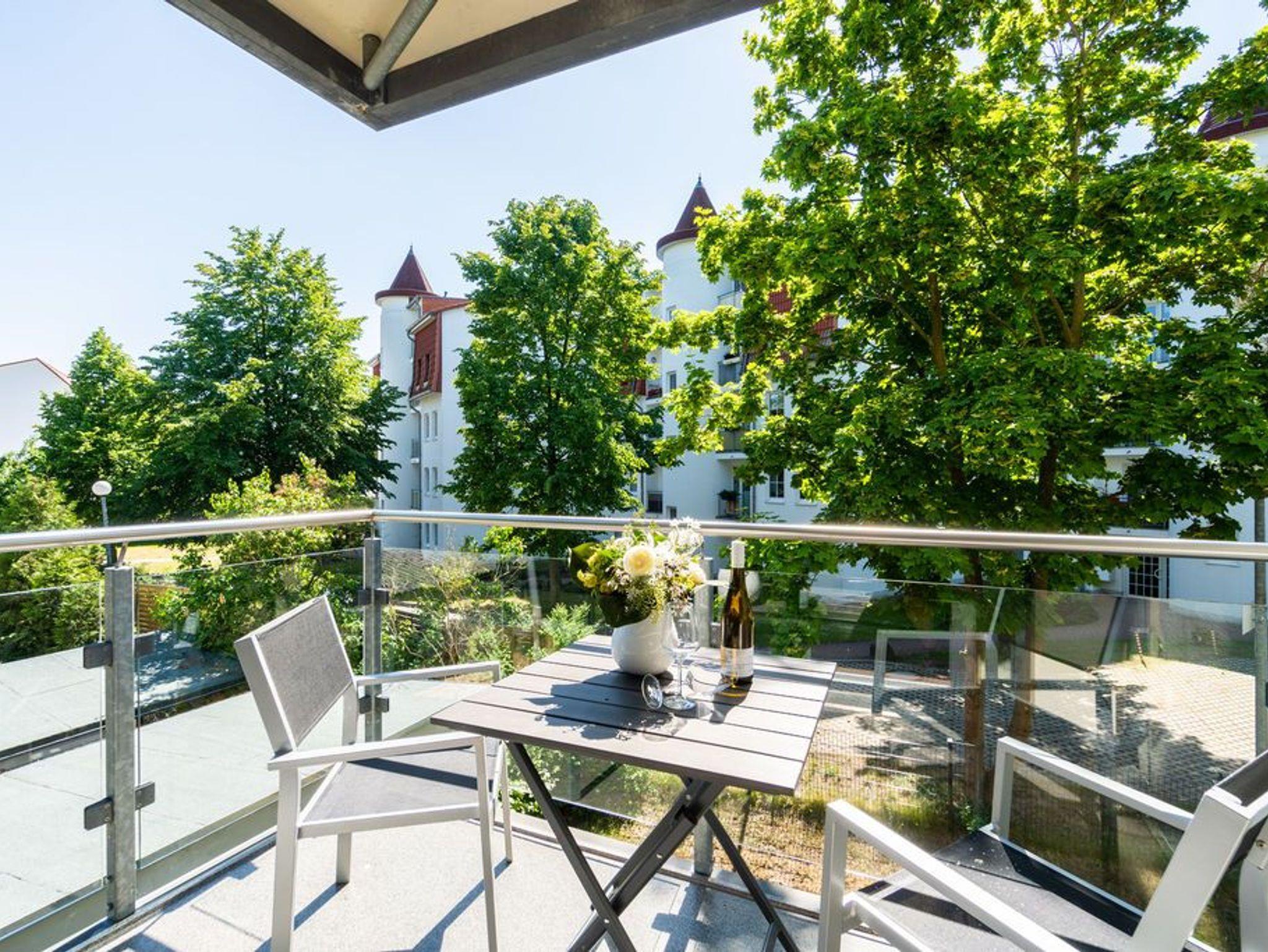Machen Sie einmal die Augen zu und stellen sich einen sonnenüberfluteten Süd-Balkon vor. In der Hand ein erfrischendes Getränk. Der Himmel färbt sich im Untergang der Sonne in flammendes Orange und Rot. Die nahe Ostsee weht eine angenehme Brise herüber. Sie haben Zeit. Zeit zum Durchatmen. Zeit zum Genießen. Ortswechsel. Im Kamin flackert fesselnd ein wohlig warmes Feuer. Eingekuschelt auf dem Sofa verfolgen Sie das Spiel der Flammen. Hier können Sie zur Ruhe kommen. Abschalten. Das Feriendomizil Nummer 4 im 1. Obergeschoss der Villa Maxim ist eine solche Ruhezone, die sie mit viel Gemütlichkeit und einem urigen Charme empfängt, um Ihnen eine herrlich entspannende Auszeit zu schenken. Auf 70 Quadratmetern finden Sie hier alles, was Sie dafür benötigen. Ein schönes, helles und modern eingerichtetes Wohn-Esszimmer mit Kaminofen und Flat-TV lädt zum Entspannen und gemeinsamen Essen ein. Eine offene und voll ausgestattete Küche lässt das Herz von Hobbyköchen höher schlagen. Essen können Sie am großen Esstisch im Wohnzimmer oder auf dem beschriebenen Balkon unter freiem Himmel. Zum Schlafen stehen den bis zu vier Personen und einem Kleinkind (im Kinderreisebett), die in dieser Wohnung Platz finden, zwei schöne Schlafzimmer zur Verfügung. In jedem steht ein komfortables und äußerst bequemes Boxspringdoppelbett (1,80 m x 2,00 m und 1,60 m x 2,00 m). In den geräumigen Schränken können Sie Ihre Urlaubsgarderobe unterbringen. Das größere der beiden Schlafzimmer hat sogar einen eigenen, kleinen Nord-Balkon. Das Tageslichtbad verfügt über eine Dusche, einen Waschtisch und ein WC. Und wünschen Sie sich einmal so richtig Entspannung, können Sie im Erdgeschoss den kleinen SPA mit zwei Saunen, Dusche und Ruheraum mit nutzen. Kostenfrei. Ebenfalls kostenfrei ist das WLAN-Netz. Ein Pkw-Stellplatz ist für Sie auf dem Gelände reserviert. Bei Ankunft sind die Betten bereits bezogen und Handtücher liegen bereit.