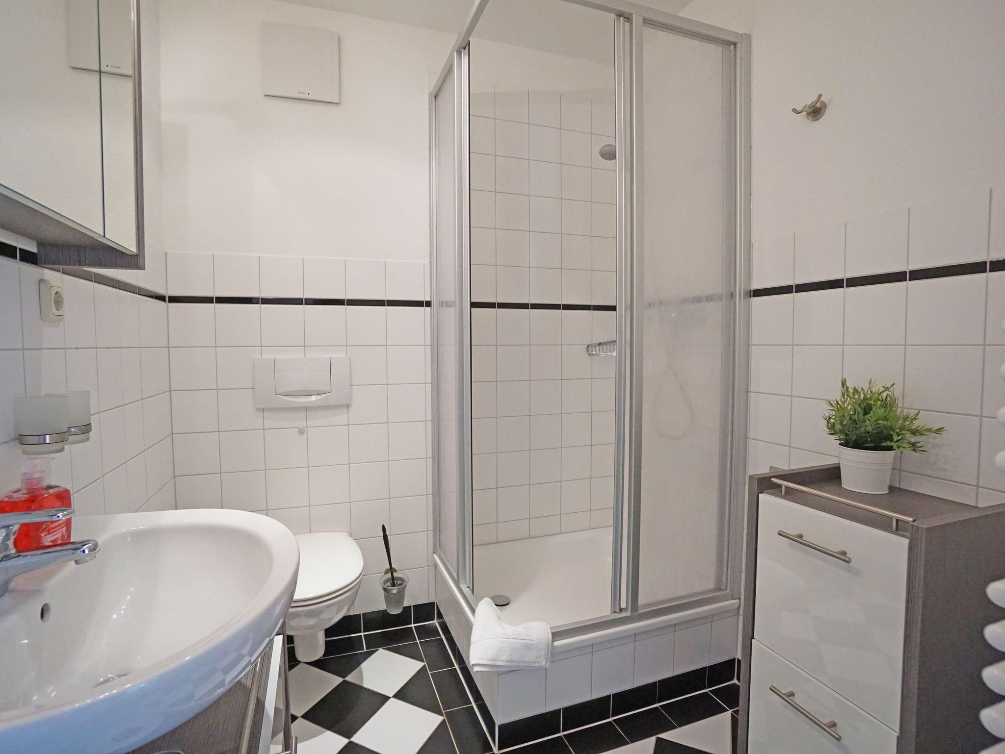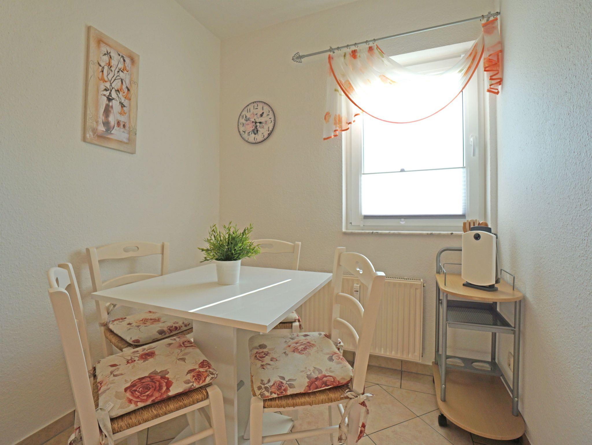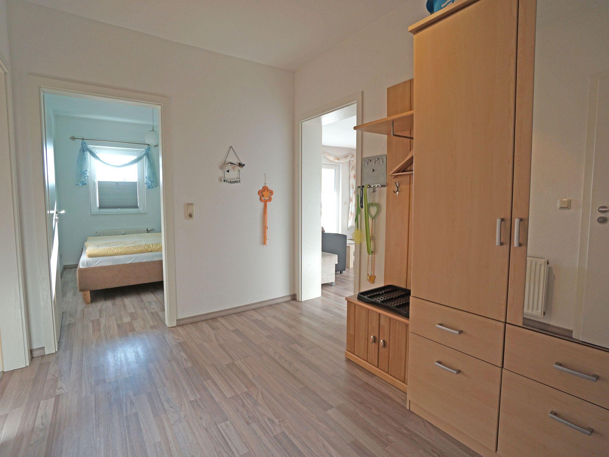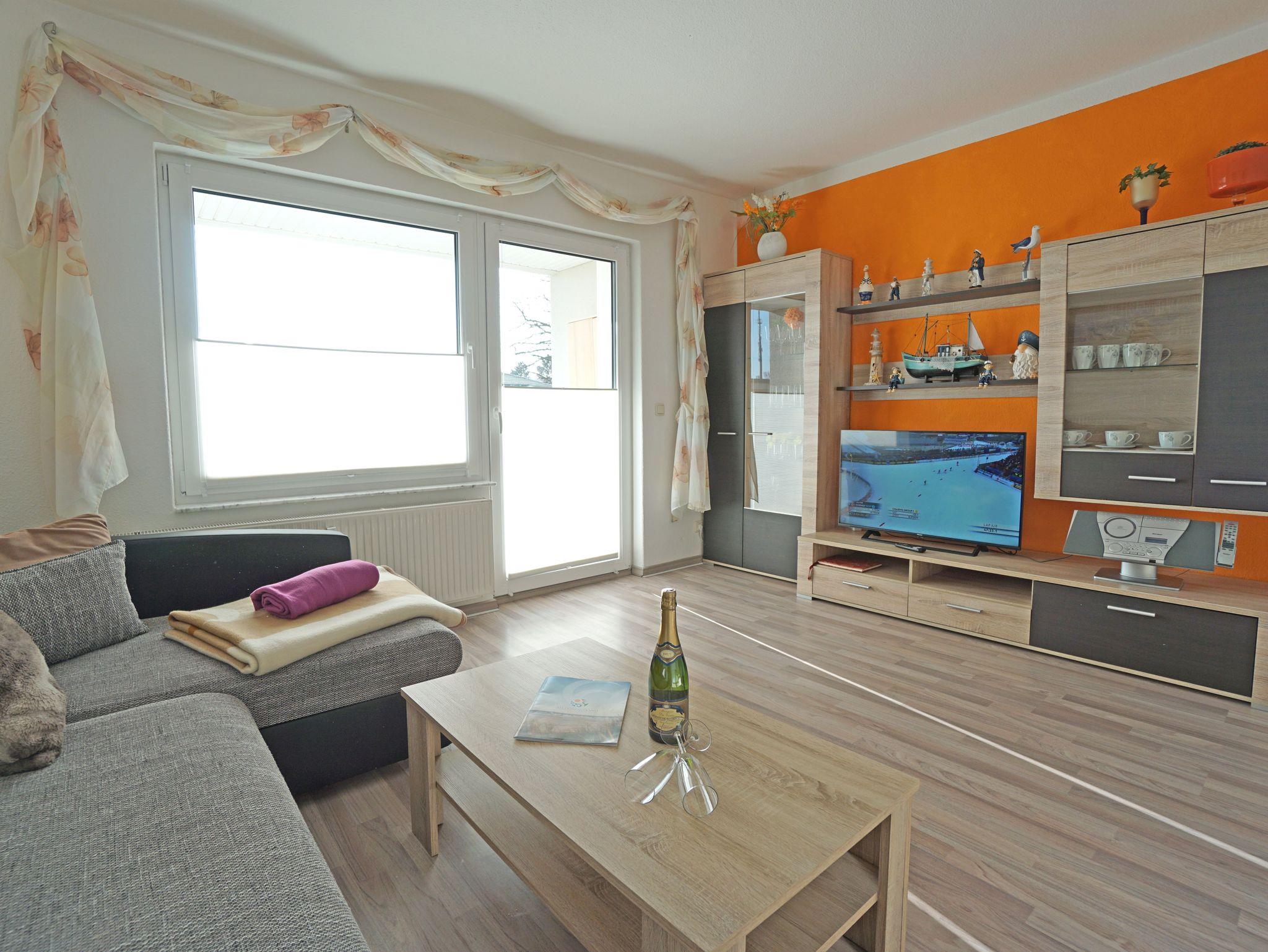 Sie wohnen in einer gemütlichen, hellen 2-Zimerwohnung in Heringsdorf. Die Wohnung befindet sich im Obergeschoß eines zweistöckigen Wohnhauses mit 5 Wohnungseinheiten. Die Wohnung besteht aus einem Wohnzimmer mit einer Doppelbettcouch, Schlafzimmer mit einem Doppelbett, separater Küche mit Essplatz, Bad mit Dusche und einem Balkon. Außerhalb der Wohnung befindet sich ein Abstellraum für z.B. Fahrräder und ein kostenloser Stellplatz für ein Auto.