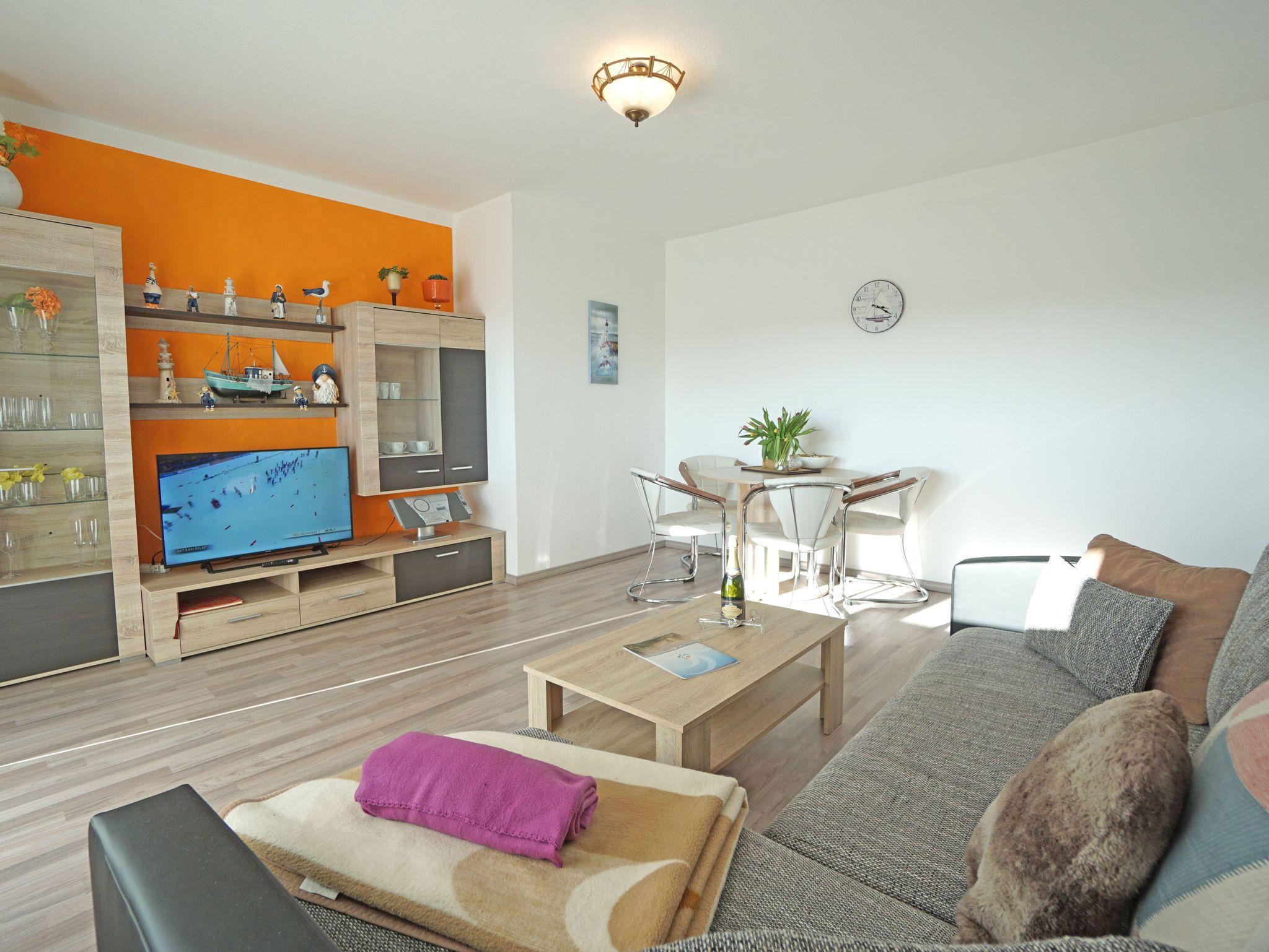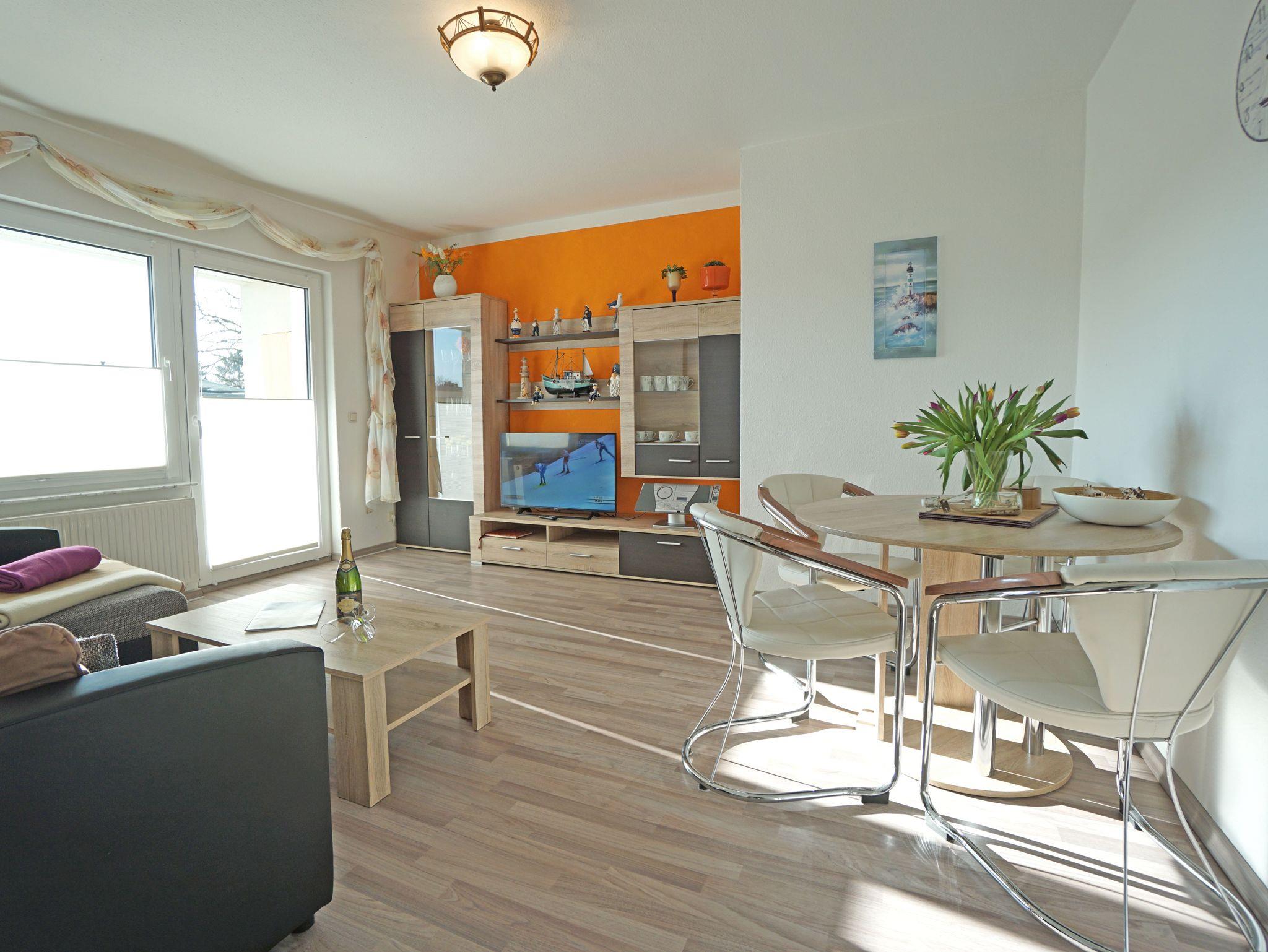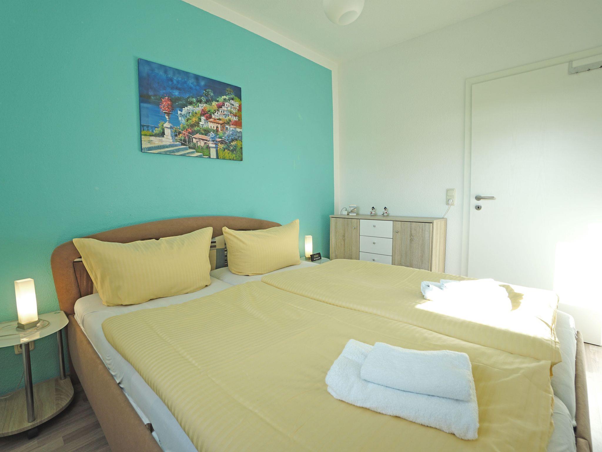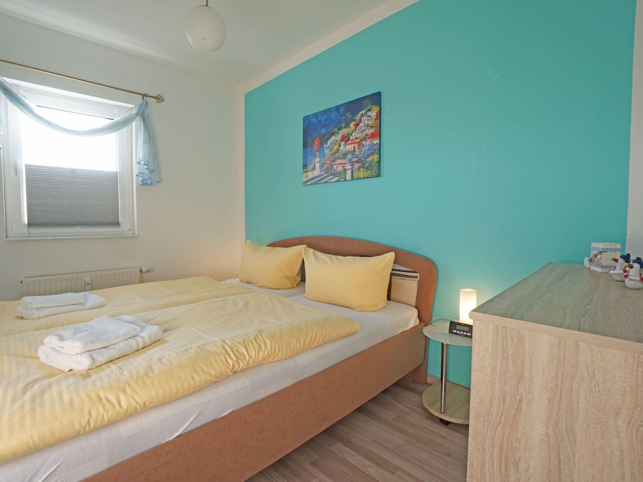 Sie wohnen in einer gemütlichen, hellen 2-Zimerwohnung in Heringsdorf. Die Wohnung befindet sich im Obergeschoß eines zweistöckigen Wohnhauses mit 5 Wohnungseinheiten. Die Wohnung besteht aus einem Wohnzimmer mit einer Doppelbettcouch, Schlafzimmer mit einem Doppelbett, separater Küche mit Essplatz, Bad mit Dusche und einem Balkon. Außerhalb der Wohnung befindet sich ein Abstellraum für z.B. Fahrräder und ein kostenloser Stellplatz für ein Auto.