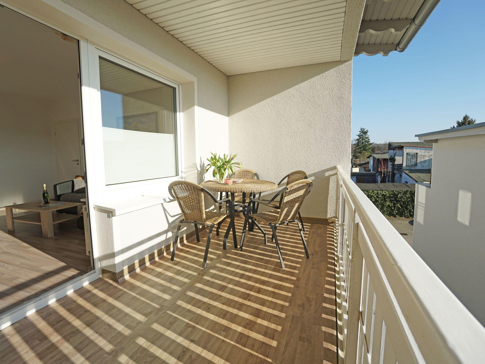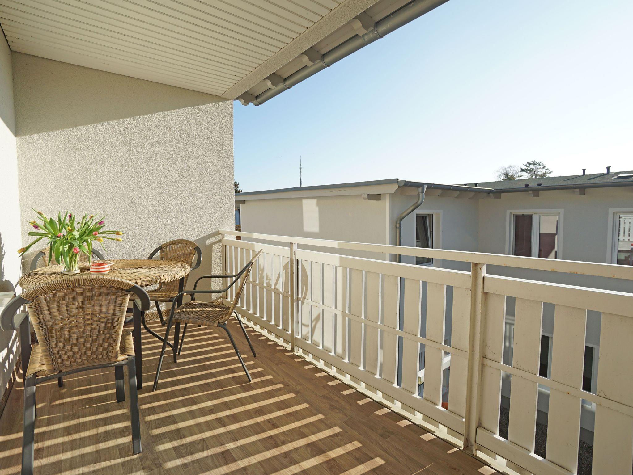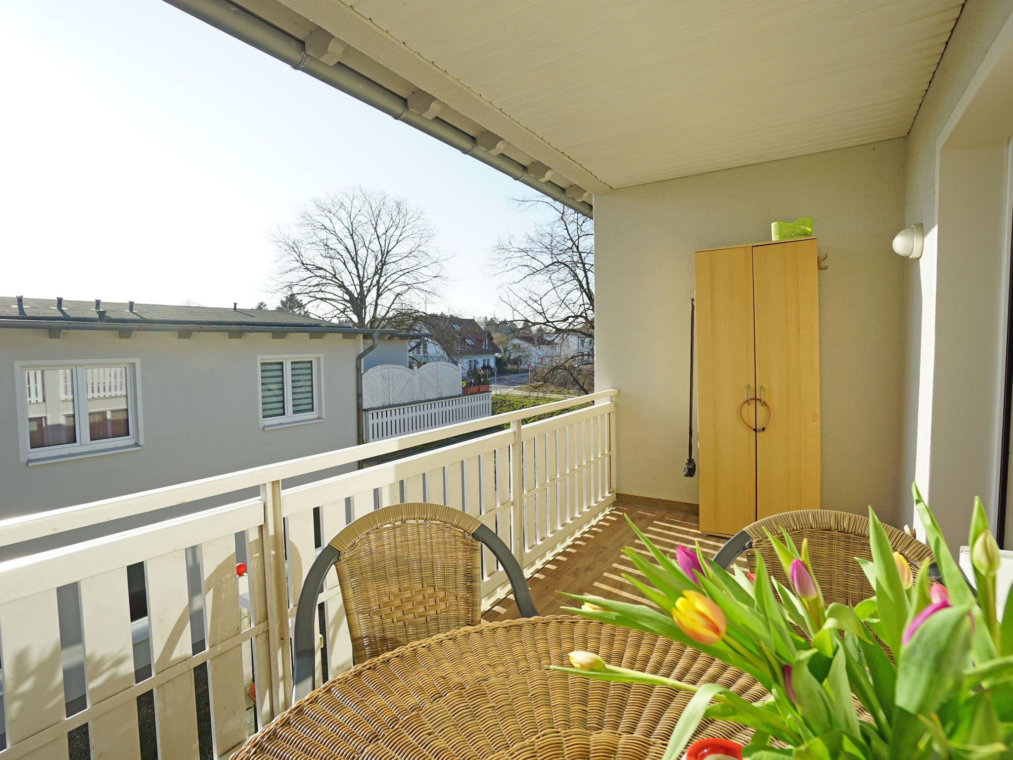 Sie wohnen in einer gemütlichen, hellen 2-Zimerwohnung in Heringsdorf. Die Wohnung befindet sich im Obergeschoß eines Zweistöckigen Wohnhauses mit 5 Wohnungseinheiten. Die Wohnung besteht aus einem Wohnzimmer mit einer Doppelbettchouch, Schlafzimmer mit einem Doppelbett, separater Küche mit Essplatz, Bad mit Dusche und einem Balkon. Außerhalb der Wohnung befindet sich ein Abstellraum für z.B. Fahrräder und ein kostenloser Stellplatz für ein Auto.