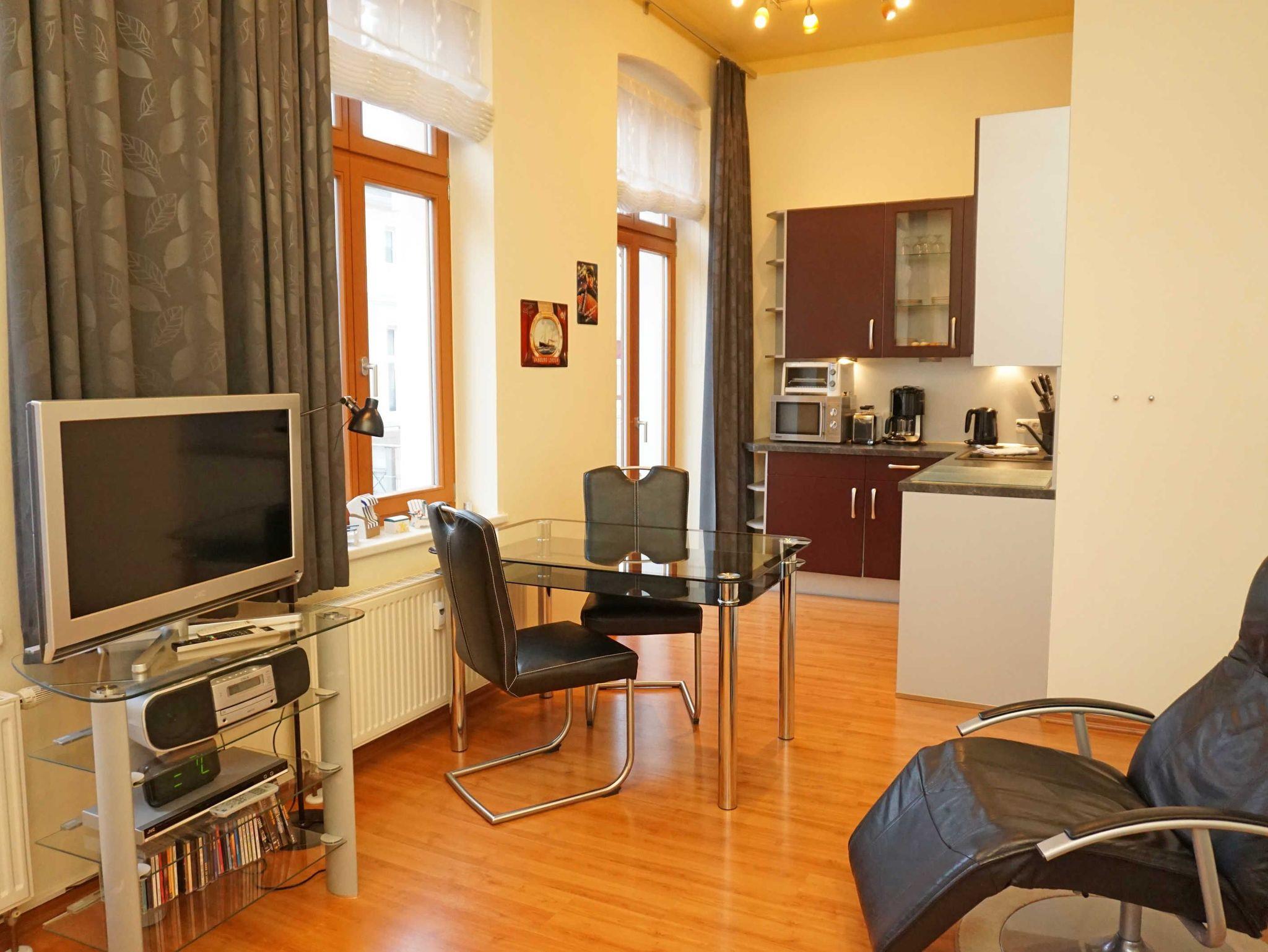 Im Sommer 2012 komplett neu gestaltet & sehr geschmackvoll und modern eingerichtet - so empfängt Sie die 1-Raum-Ferienwohnung (30 qm) in der zweiten Etage des Hauses. Es bietet Platz für 2 Personen und ein Baby (im Kinderreisebett). Das Appartement ist aufgeteilt in einen Wohnschlafbereich mit Sitzgruppe, bequemem Doppelbett ( getrennte Matratzen 0,80m x 2,00m) und gut ausgestatteter Küchenzeile, sowie ein Bad mit Dusche & WC. Ein Pkw-Stellplatz im Parkhaus Heringsdorf (ca. 5 Gehminuten) ist im Preis enthalten. Auf Wunsch stellen wir für unsere kleinen Gäste ein Kinderreisebett (ohne zusätzliche Matratze & Bettzeug) und einen Kinderhochstuhl ( gegen einen Aufpreis) zur Verfügung.