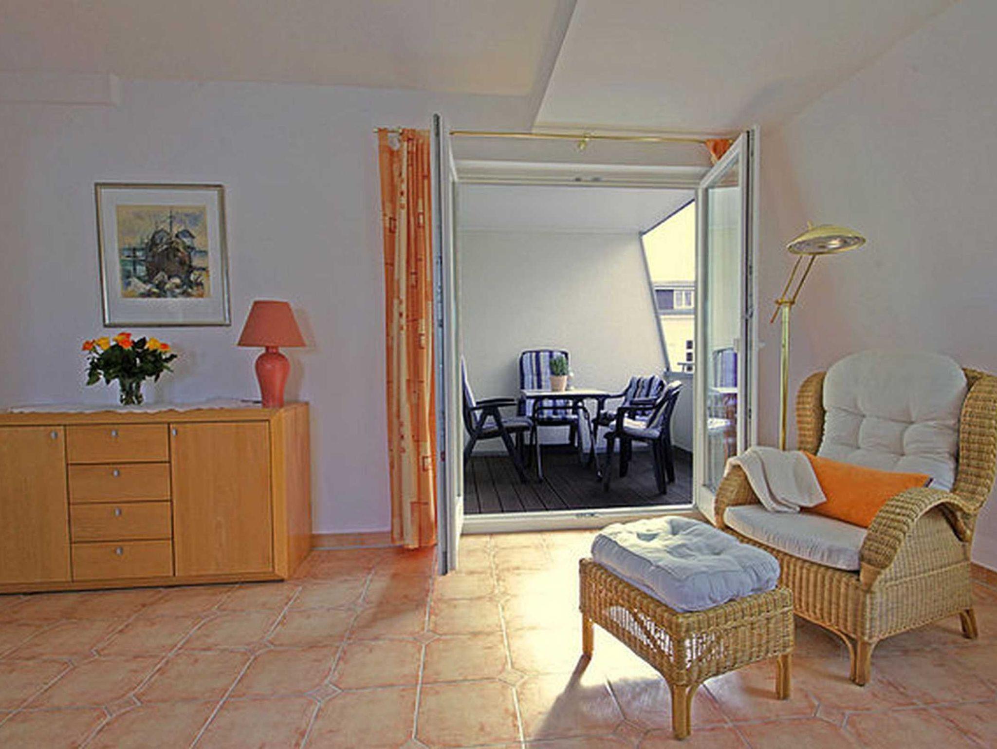 Die individuell gestaltete Dachgeschosswohnung bietet eine Logia (Süd/West), ein Schlafzimmer mit Doppelbett, ein großes Wohnzimmer mit einer Schlafgelegenheit für weitere zwei Personen sowie eine luxeriöse Wohnküche und ist modern eingerichtet. Für diese Ferienwohnung steht ein Garagenplatz kostenfrei im Haus zur Verfügung. Das WLAN-Netzwerk steht Ihnen kostenfrei zur Verfügung. Für Fahrräder gibt es einen Fahrradkeller. Im Keller stehen Ihnen eine Waschmaschine und ein Trockner im Münzbetrieb zur Verfügung.