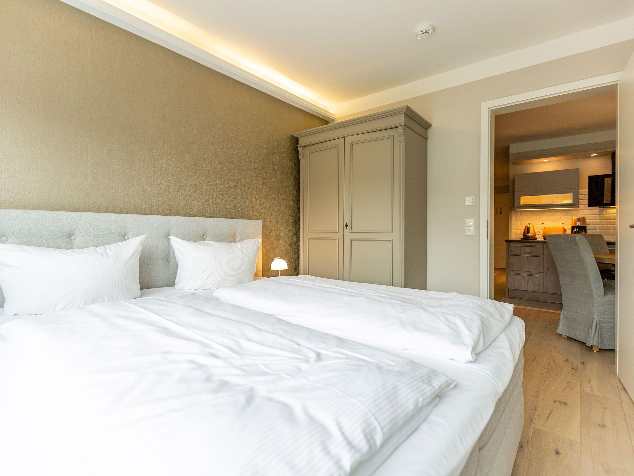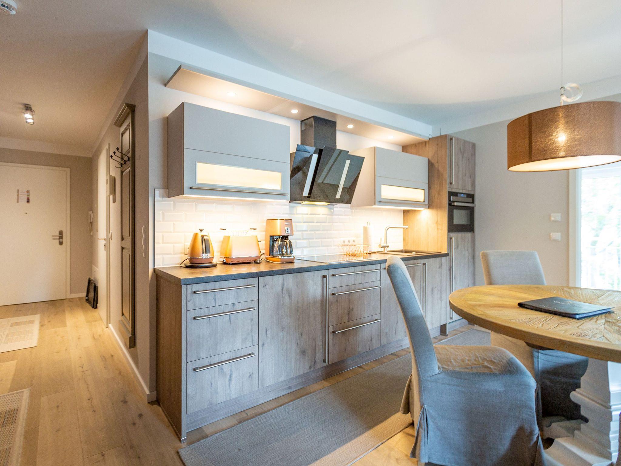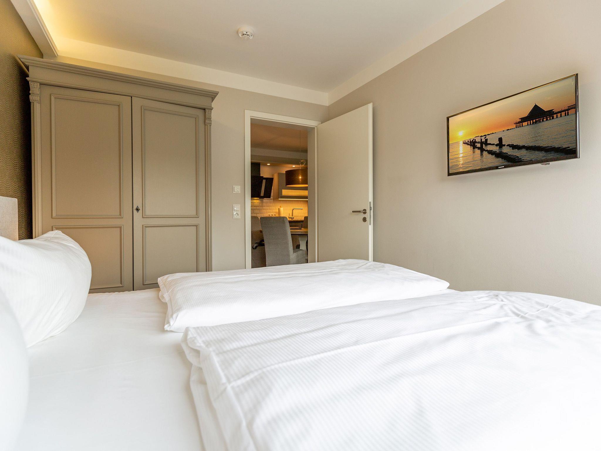 Sie lieben das Besondere? Sie schätzen Design und Geschmack? Willkommen im Appartement 17! Freuen Sie sich auf ein von Innenarchitektenhand designtes Wohnkonzept, dass überzeugt und begeistert. Geschmackvolles Design, wertige Stoffe und abgestimmte Farben sorgen für Hochwertigkeit, Stil und Behaglichkeit. Ein ideales Urlaubziel für bis zu 4 Personen. Schon beim Eintreten empfängt Sie der große, stylische Eingangsbereich. Zentrales Herz der Wohnung ist die moderne, komplett ausgestattete Küche mit tollem Essplatz, der nicht nur perfekt zum Dinieren, sondern auch ideal als lebendige Kommunikationsinsel dient. Der helle, lichtdurchflutete Wohnbereich ist loungig, cool und gemütlich zugleich. Auf Ihrer stylischen Sofainsel lässt es sich herrlich lümmeln und relaxen. Ein moderner Elektrokamin (mit Heizmöglichkeit) schafft per Knopfdruck eine kuschlige Wohlfühlatmosphäre. Auch die weitere technische Ausstattung des Appartements ist ebenfalls sehr überzeugend: insgesamt 3 Flat-TV's (Wohnzimmer sowie jedes Schlafzimmer) sowie Mini-Hifianlage mit iPod-Dock verstehen sich von selbst. Beide, sehr geschmackvoll gestaltete Schlafzimmer empfangen Sie mit komfortablen Doppelboxspringbetten (1,80m x 2,00m) und sorgen für entspannte Nächte, von einem haben Sie einen seitlichen Blick zur Ostsee. Die Betten sind bei Anreise bezogen und Handtücher liegen bereit (Erstausstattung). Das schicke Wellnessbad bietet neben der großen Dusche eine moderne Sauna, ein besonderes Highlight nicht nur in der Nebensaison. Der Südbalkon, selbstverständlich mit wertigen Gartenmöbel ausgestattet, bietet schöne Ausblicke auf die Umgebung der Maxim-Gorki-Straße. Auch die Ostsee schimmert durch die Kiefern der Dünen. Sie haben Ihr perfektes Design-Domizil ganz nahe am Meer gefunden! Ein PKW-Stellplatz steht in der Tiefgarage zur Verfügung (max. Einfahrtshöhe 1,85 m). Das WLAN-Netz ist kostenfrei nutzbar. Ihre Fahrräder können Sie gern im wohnungseigenen Kellerraum abstellen.