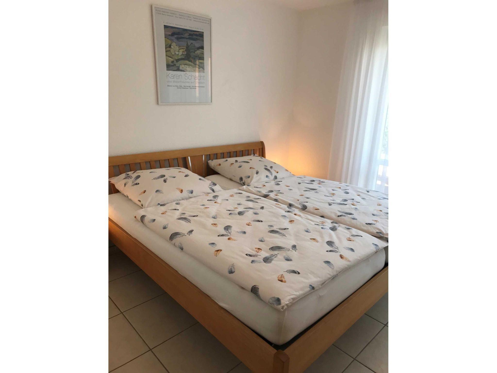 Beide Schlafzimmer sind mit einem Doppelbett und einem Kleiderschrank eingerichtet. Die gesamte Wohnung ist gefliest. Die beiden möblierten Terrassen, die ebenfalls zur Wohnung gehören laden zum Entspannen und Erholen ein, es stehen Ihnen zwei Sonnenliegen zur Verfügung. Alle Fenster der Ferienwohnung sind mit elektrischen Rollos ausgestattet.