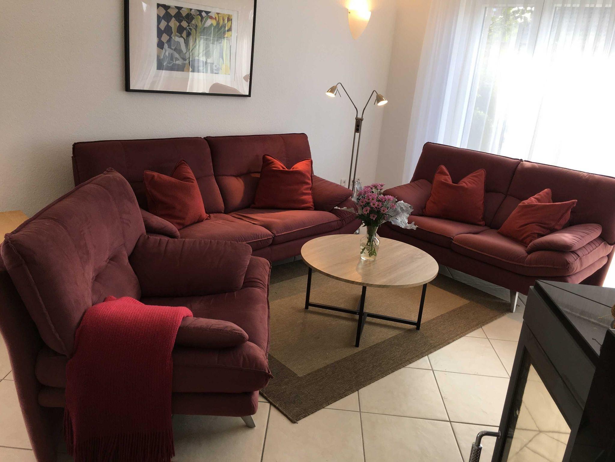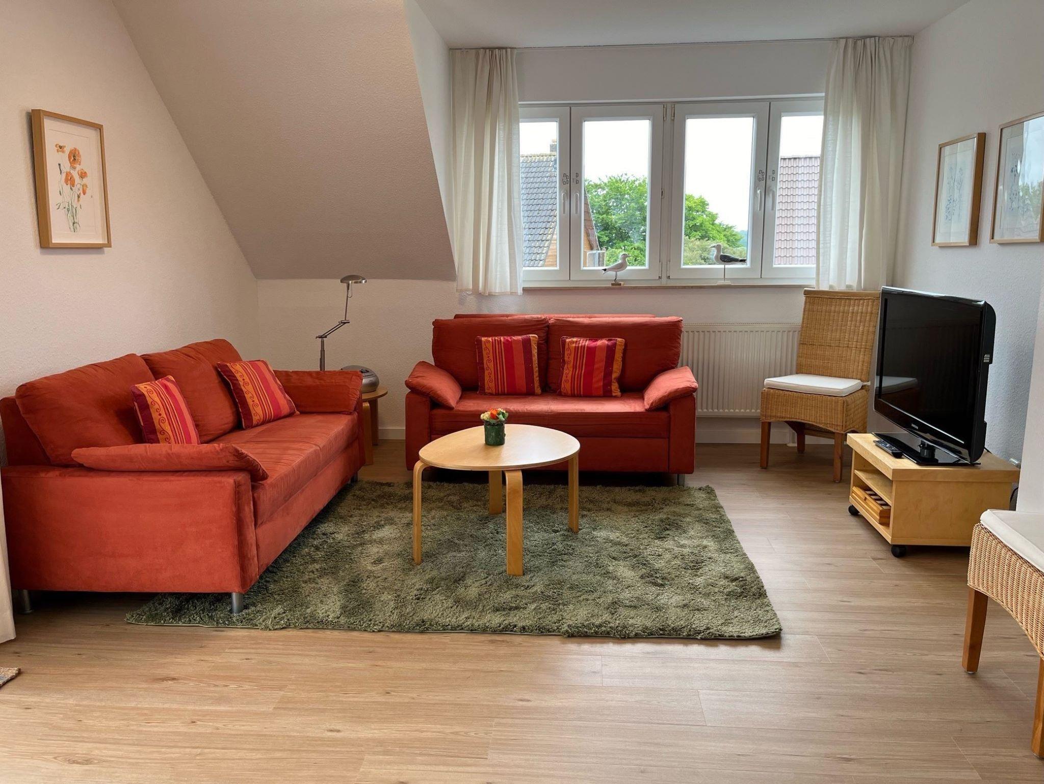 Der Wohnraum ist ausgestattet mit einem Smart-TV, einer Couchsitzecke, einem Couchtisch, einem Esstisch mit 5 Stühlen, Kabel-TV, DVD-Player sowie Radio mit Kassetten-& CD-Teil.