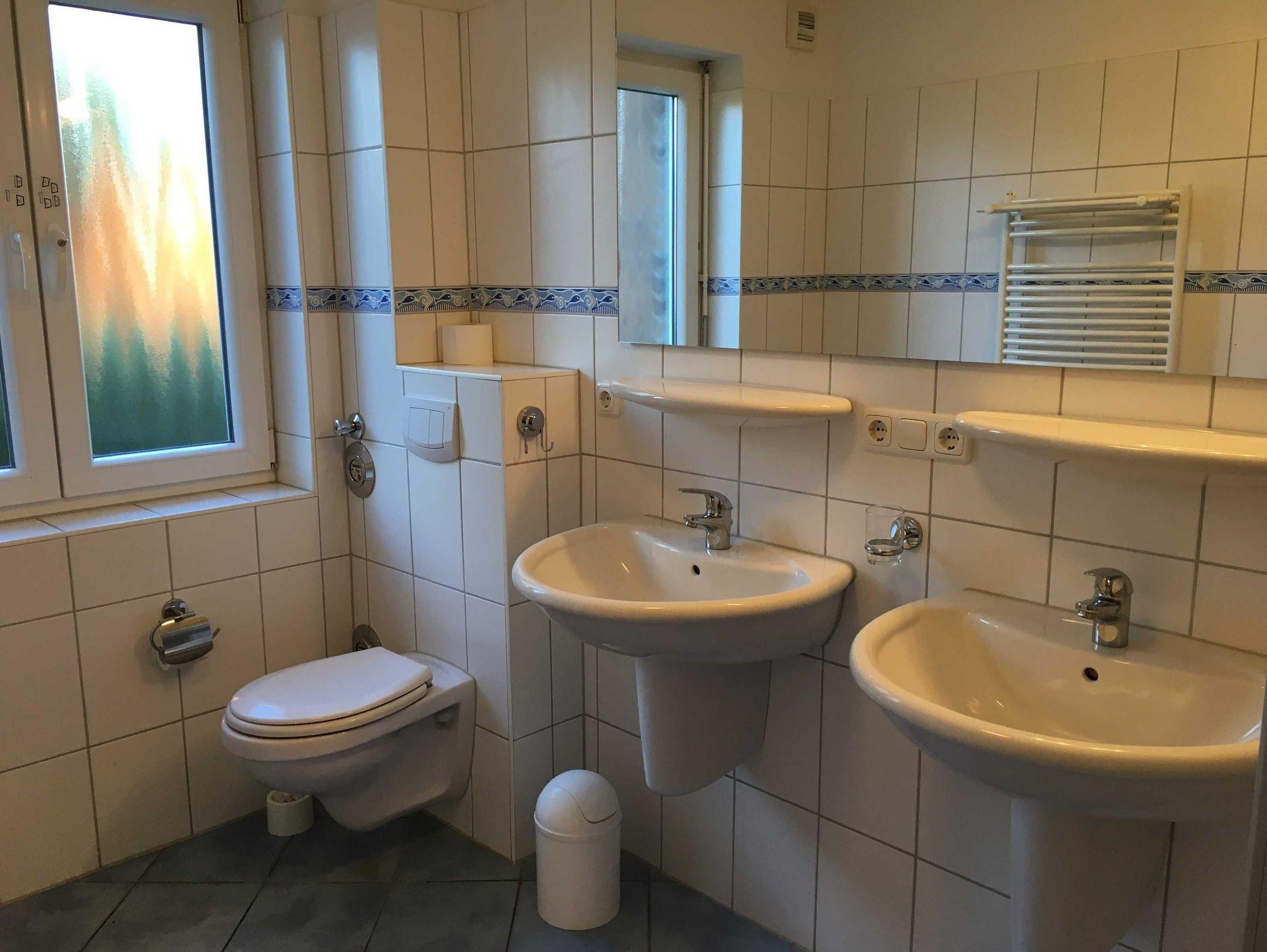 Die separate Küche verfügt über einen Geschirrspüler, Mikrowelle, 4-Platten Ceranherd, Backofen, Kühlschrank, Kaffeemaschine, Toaster und Wasserkocher. Das Badezimmer ist mit zwei Waschbecken und mit einer Dusche ausgestattet.