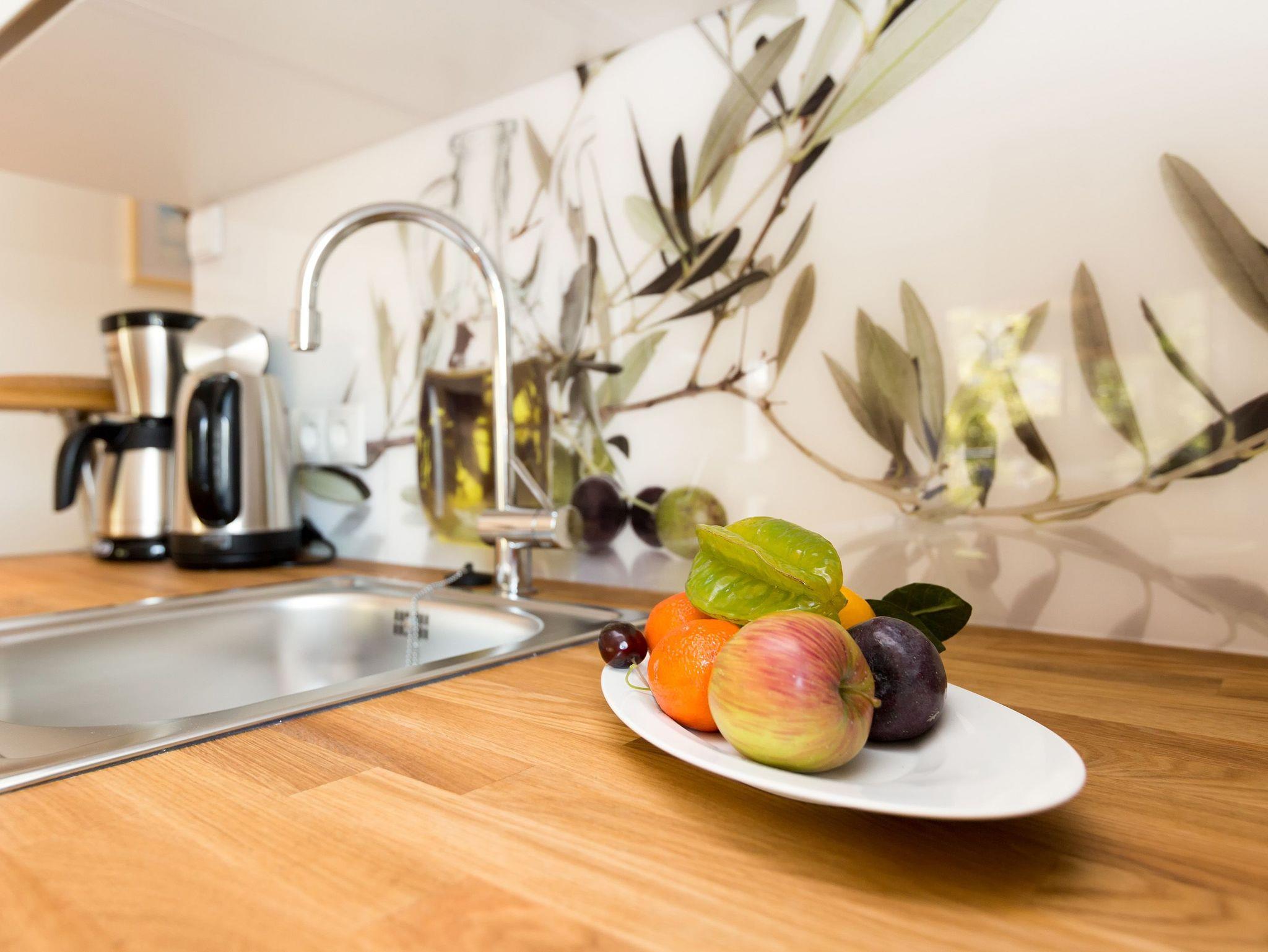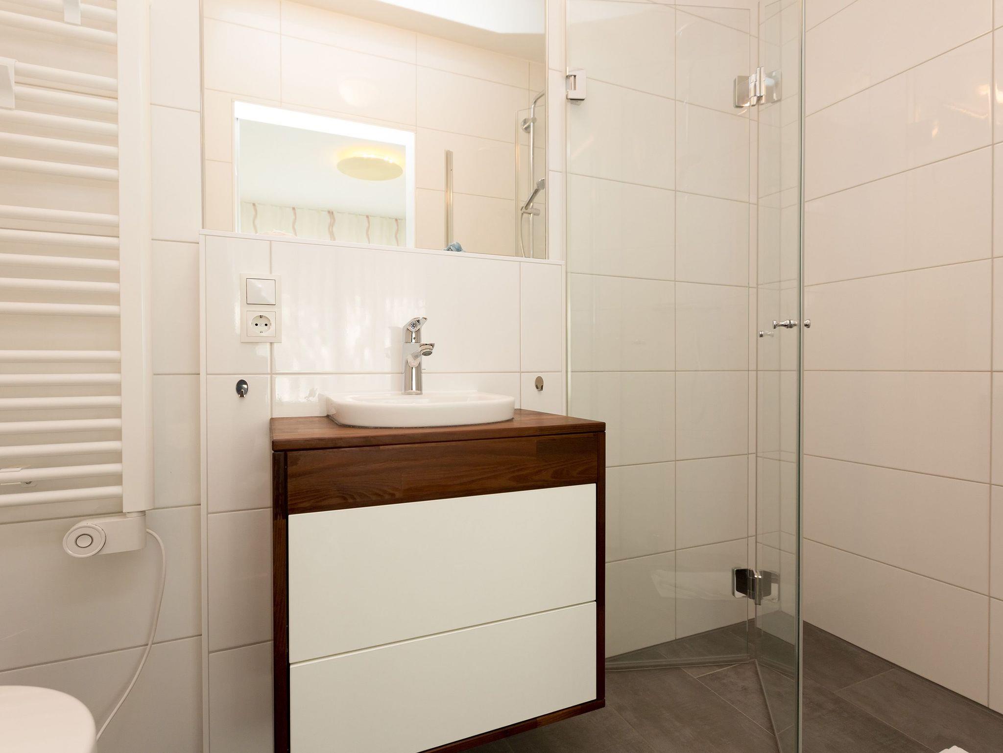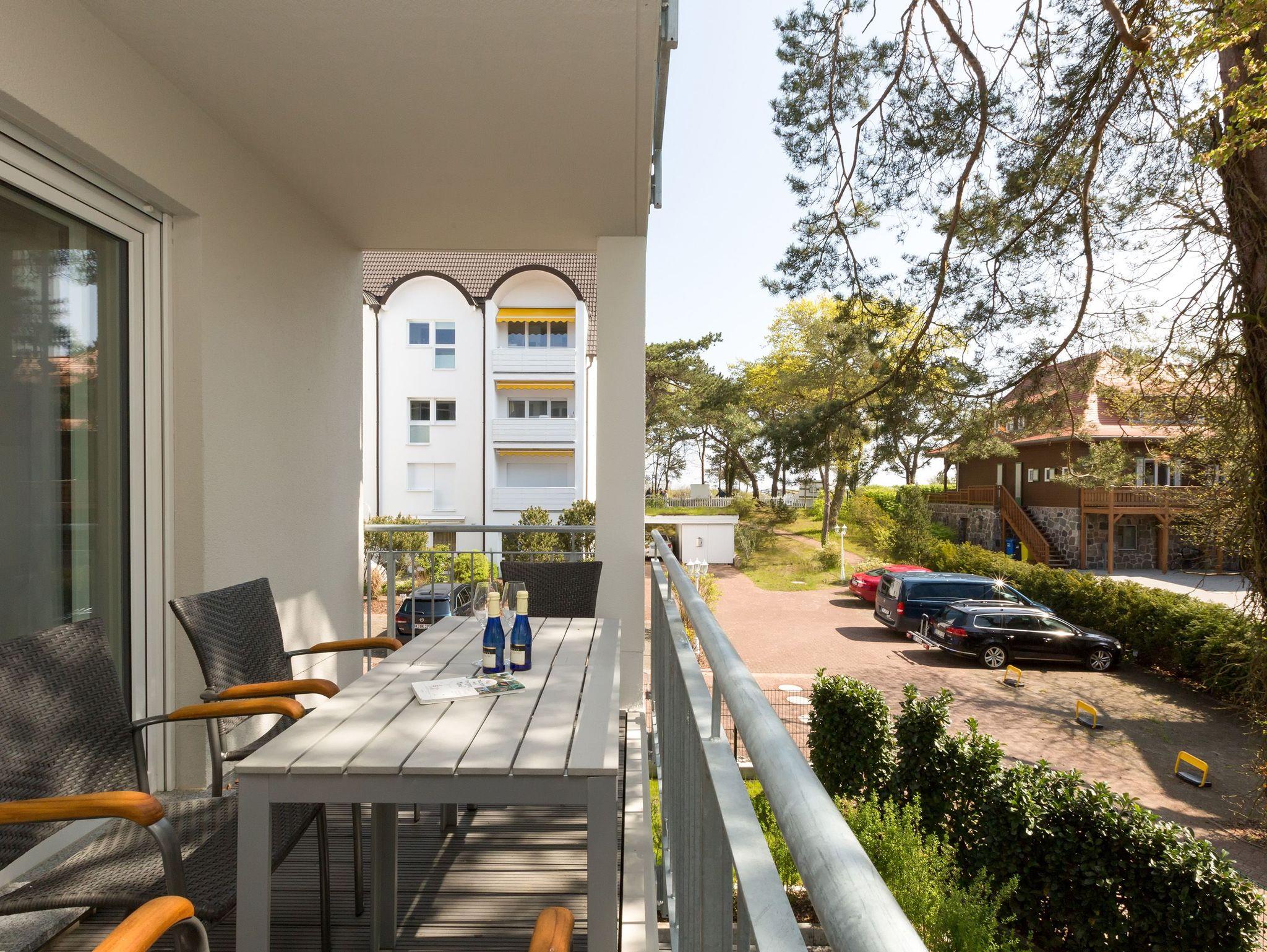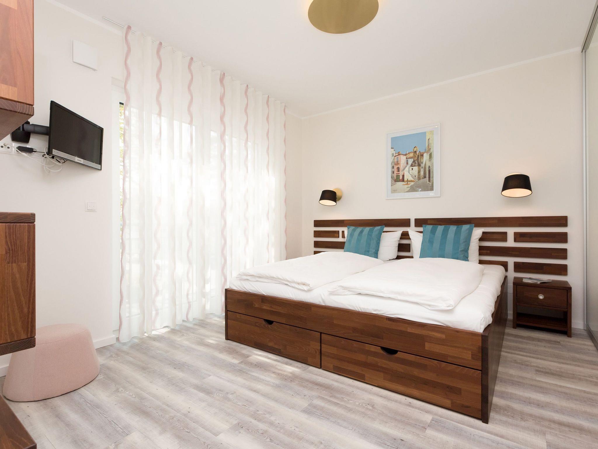 Urlaubsfeeling zum Wohlfühlen. Unsere neue 3-Raum-Ferienwohnung (62 qm) im 1.Obergeschoss der Dünenresidenz empfängt Sie mit hellen Farben und liebevollen Dekorationen. Wertige Einbauten aus Eiche [&] Akazie und eine gelungene Raumaufteilung schaffen hier ein schönes Urlaubziel für 4 Personen und ein Kleinkind bis 3 Jahre (als Aufbettung im Babyreisebett). Schon beim Eintreten offeriert sich der helle Wohnbereich, ausgestattet mit einer modernen Sitzgruppe und Flat-TV. Die angrenzende, offene Küche mit Essplatz fügt sich harmonisch ein und ist natürlich komplett ausgestattet. Zwei Schlafzimmer mit jeweils eigenem Bad bieten einen idealen Rückzugsort. Das erste Schlafzimmer verfügt über ein komfortables Doppelbett mit Bettkasten (1,80m x 2,00m) und Flat-TV, ein kleines Duschbad und Zugang zum Balkon. Das zweite Schlafzimmer wartet mit einem bequemen Doppelbett (1,60m x 2,00m) und Flat-TV auf, angrenzend gibt es hier ein Bad mit Dusche und WC. Klein aber fein, die wohnungseigene Sauna bietet nicht nur in der kalten Jahreszeit eine erholsame Abwechslung. Die Usedomer Sonne und das Meeresrauschen genießen Sie schon beim Frühstück auf dem Ostbalkon, ausgestattet mit Gartenmöbeln. Hier kann man bei ein bisschen Meerblick wunderbar Relaxen. Für Ihren Komfort sind die Betten bei der Anreise bezogen und Handtücher liegen bereit. Ein Pkw-Stellplatz steht in der Tiefgarage zur Verfügung (max. Einfahrtshöhe 1,85 m). Das Wlan-Netz kann kostenlos genutzt werden.