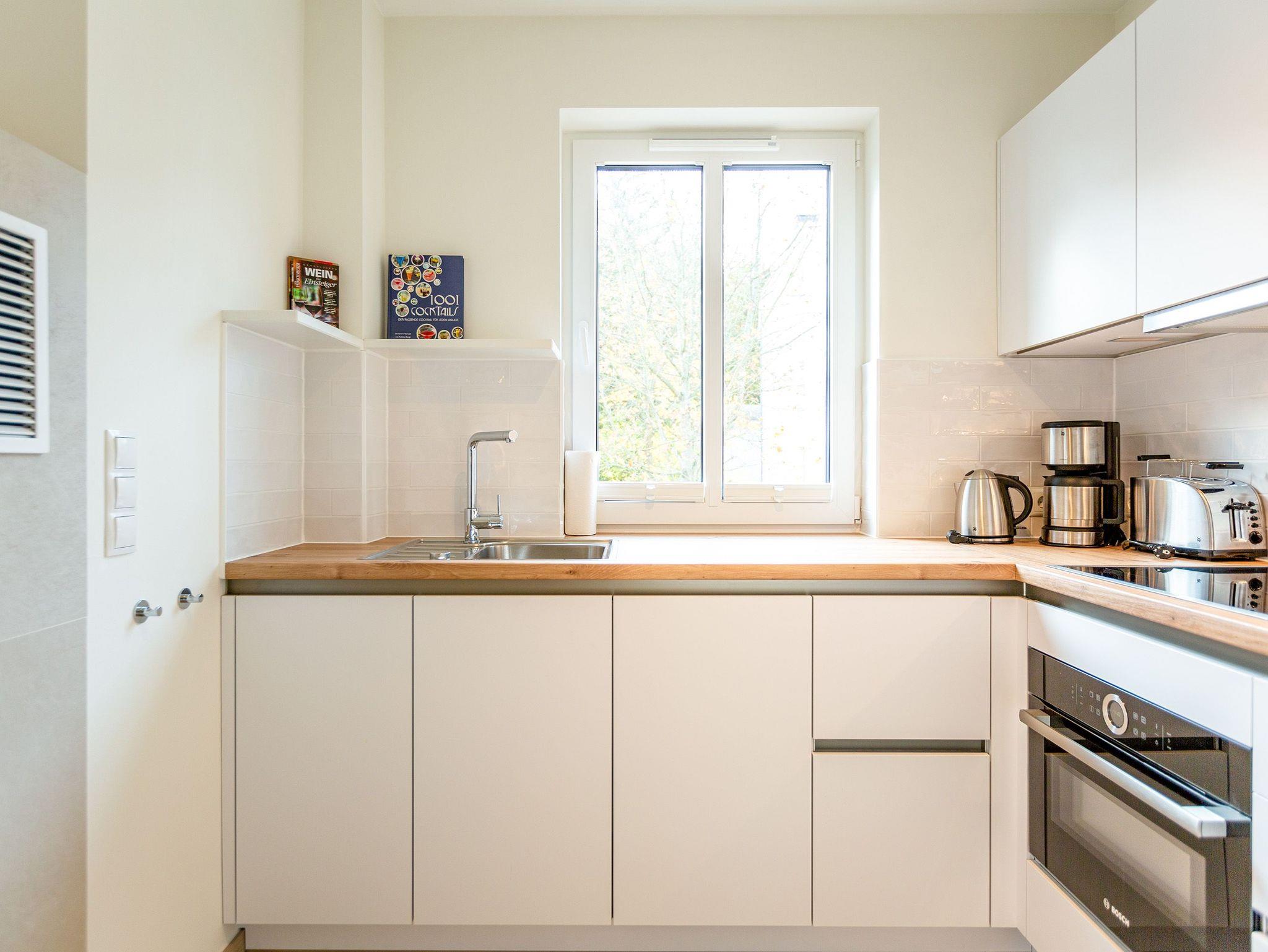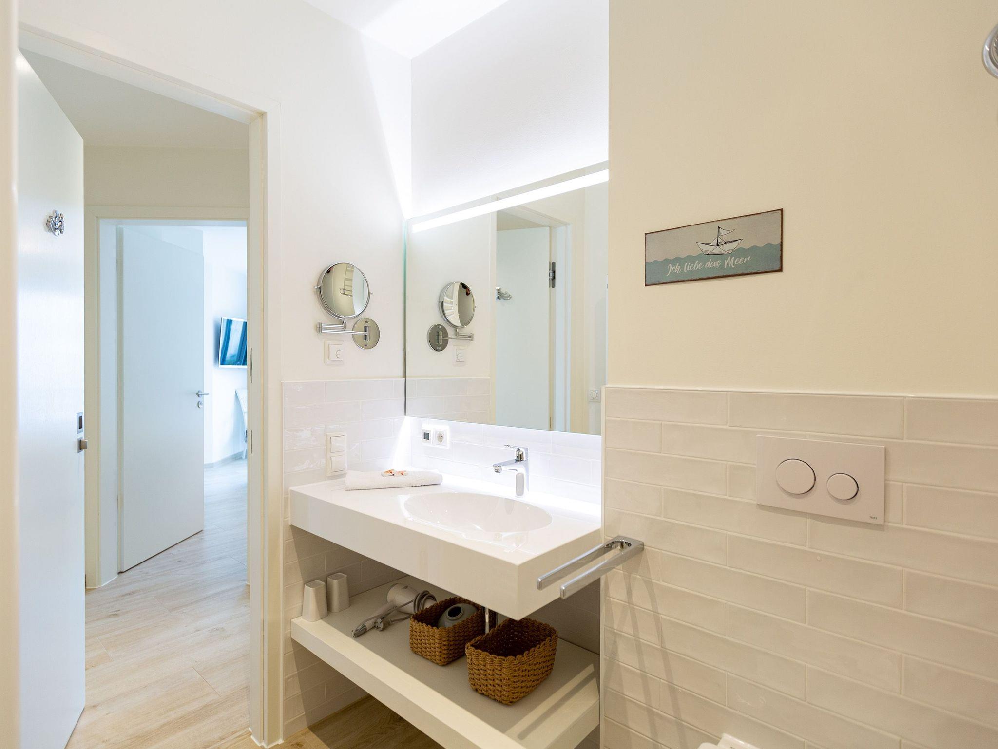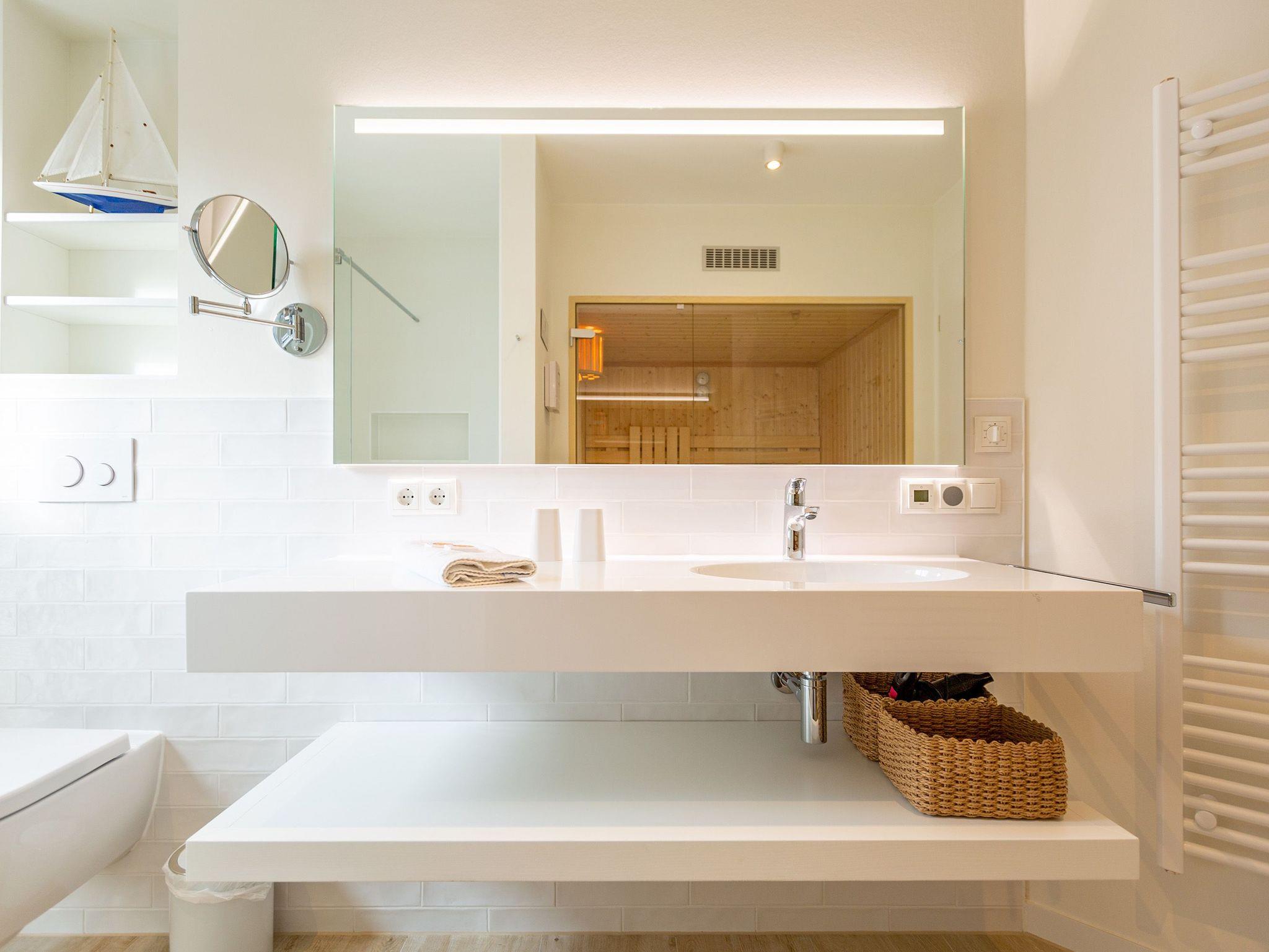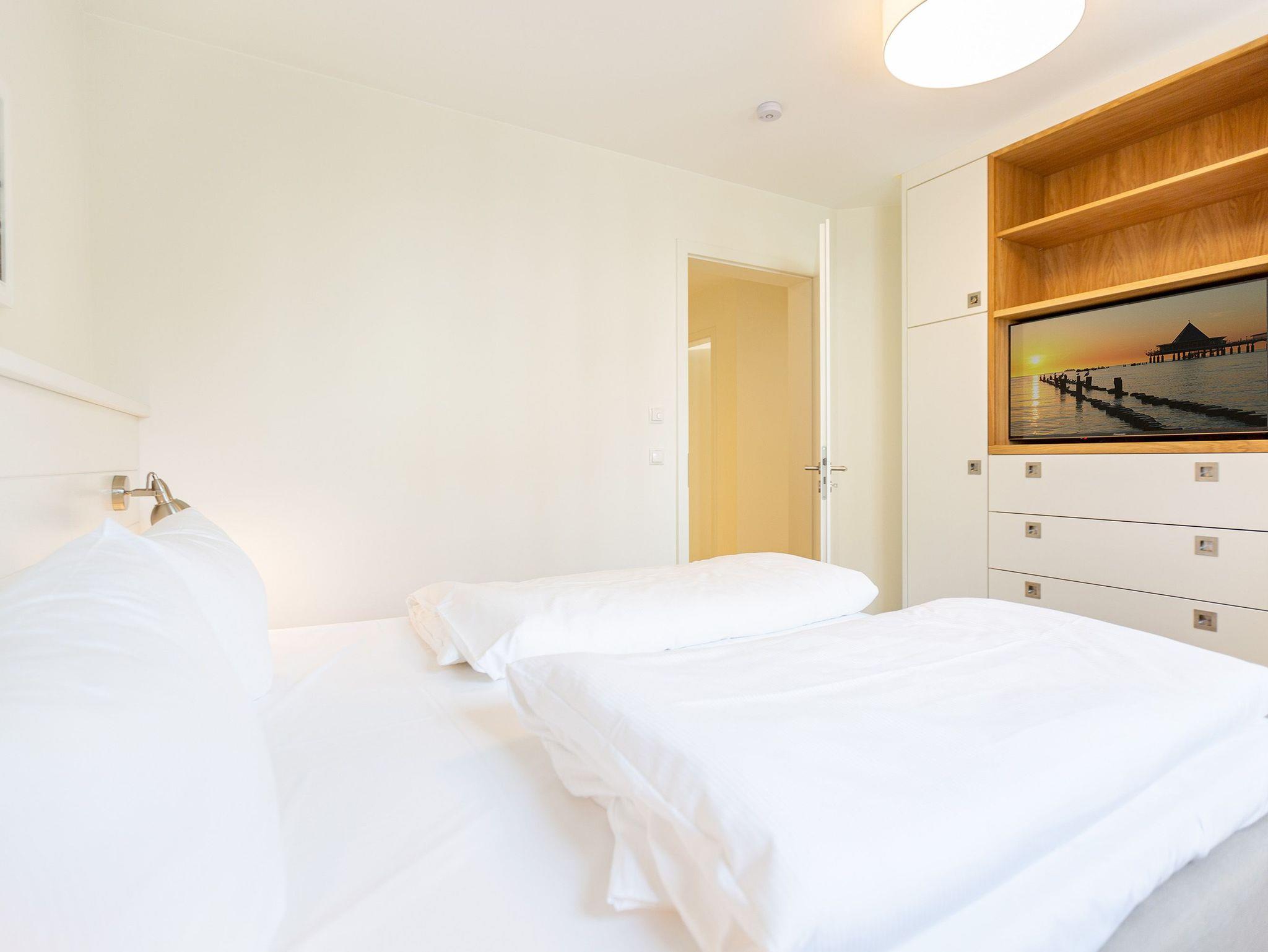 Ein außergewöhnliches und stylisches Ferien-Appartement wartet in der Nummer 4 nur darauf, Ihnen und Ihren bis zu drei weiteren Mitauszeitlern einen unvergesslichen und entspannten Ostseeurlaub zu bereiten. Die helle und großzügig geschnittene Drei-Raum-Wohnung im 1. Obergeschoss bietet auf 79 Quadratmetern allen nur denkbaren Wohnkomfort. Ein schönes, großes und gemütlich eingerichtetes Wohnzimmer mit einer vollausgestatteten und offenen Küche, zwei Schlafzimmer, zwei Bäder und vieles mehr. Ein sonniger Süd-Ost-Balkon (6,8 Quadratmeter) mit bequemen Balkonmöbeln lädt zum Essen an der frischen Ostseeluft und zum ausgiebigen Sonnenbaden ein. Denn hier haben Sie bis in den Nachmittag hinein Sonne. Das Wohnraum-Innere ist ebenso ansprechend und freundlich wie das Äußere. Eine große Sitzlandschaft mit Sofa, Sessel und Hocker bietet ausreichend Platz zum Relaxen bei einem spannenden Film auf dem großen 65 Zoll Flat-TV, beim Rundfunk hören vom bereitgestellten Radio oder beim Träumen vor den Flammen des Gas-Kamins. Zum Essen geht?s an den großzügigen Esstisch mit den bequemen Designer-Stühlen von Philippe Starck. Die zum Wohnzimmer hin offene Küche enthält alles Nötige zum Kochen, Backen, Sich-am-Herd-austoben. Eine Spülmaschine, ein Backofen mit integrierter Mikrowelle, ein Induktionsherd, ein Kühlschrank mit Gefrierfach sowie eine Kaffeemaschine und ein Toaster sind vorhanden. Auch erlesenes Geschirr finden Sie in den Schränken der Küchenzeile. Beide Schlafzimmer sind außergewöhnlich geschnitten und verfügen jeweils über ein Boxspring-Doppelbett (1,80 m x 2,00 m), einen Flat-TV und extra maßangefertigte Einbauschränke. Viel Platz also für Hose, Hemd und die Strandutensilien. Alle drei Räume sind durch die bodentiefen Fenster licht und hell und offerieren Ausblicke auf die wunderschönen Bädervillen ringsum. Es gibt zwei Bäder mit Dusche,[nbsp][nbsp]WC und WLAN-Radio, wovon eines ein Tageslichtbad ist. Das Masterbad beherbergt zudem eine kleine Finnische Sauna. Freuen Sie sich daher schon mal auf die kühleren Tage. Denn hier kommen Sie ordentlich ins Schwitzen. Im Hauswirtschaftsraum befindet sich ein Waschtrockner. Der Stellplatz Nr. 4 im Hof ist für Sie reserviert. Das WLAN können Sie kostenfrei nutzen. Bei Anreise liegen Handtücher für Sie bereit und die Betten sind bezogen.