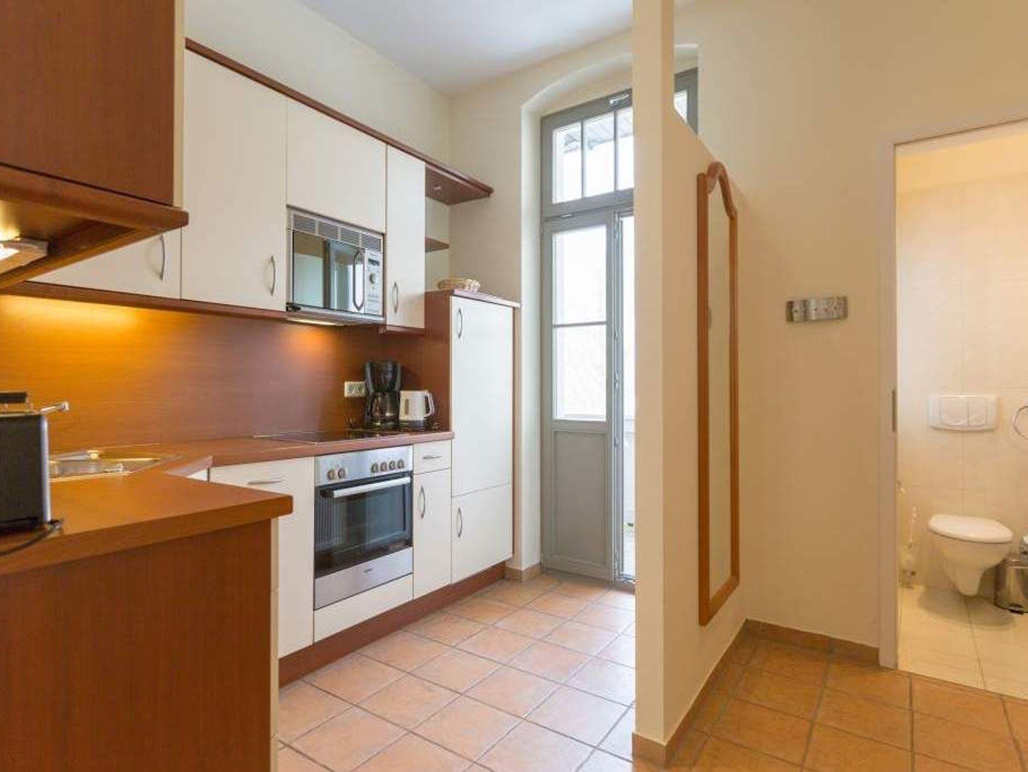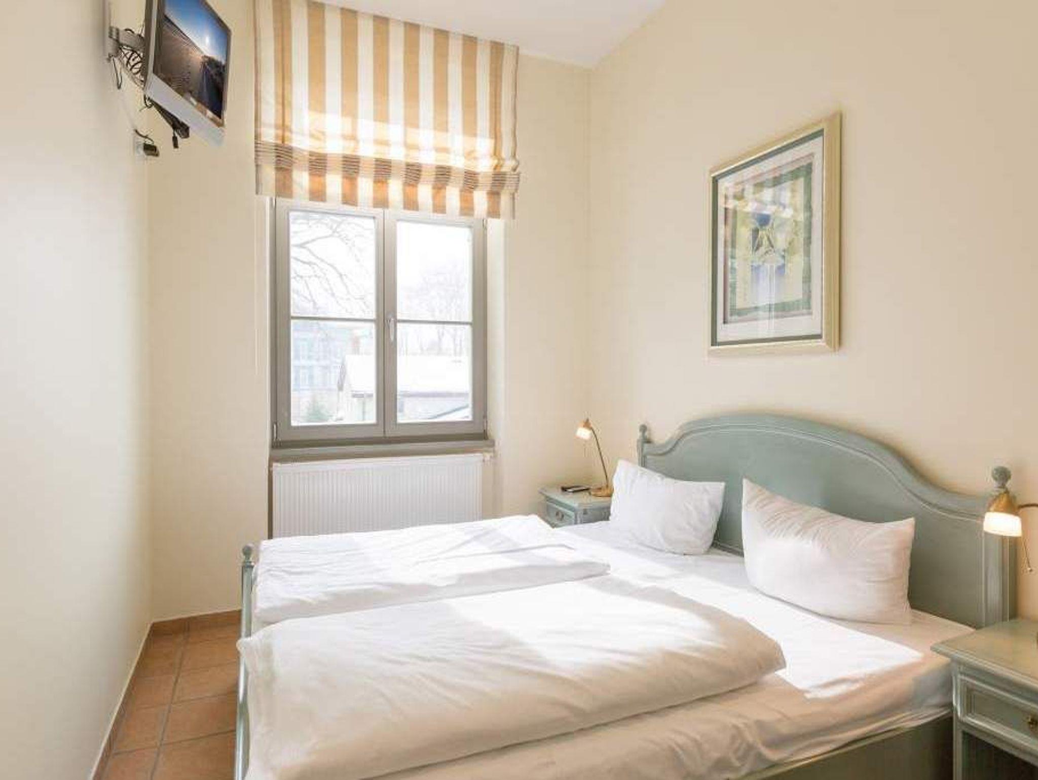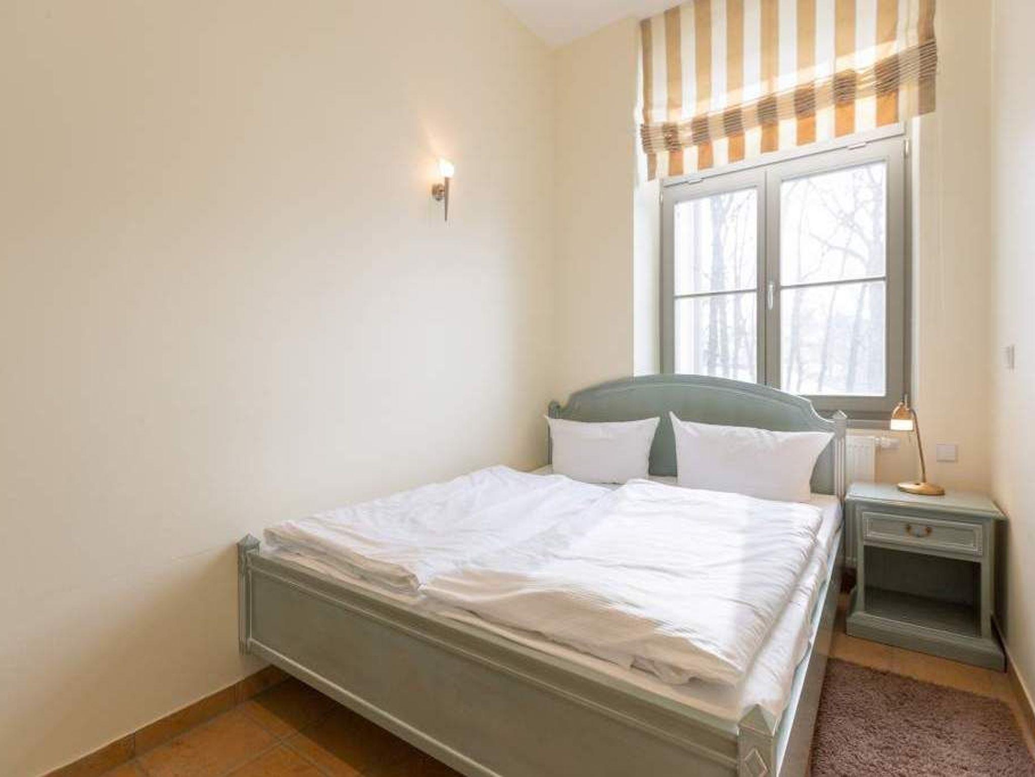 Inmitten einer parkähnlichen Anlage, umgeben von viel Grün und wunderschönen alten Bäumen können Sie in der Wohnung Nummer 5 im ersten Stock der liebevoll sanierten Bäderarchitekturvilla Villa San Marino Urlauben wie zu Kaisers Zeiten. Das 63 Quadratmeter große 3-Zimmer-Appartement bietet allen Komfort für bis zu vier auszeithungrige Erwachsene. Die grenzenlos blaue Weite der Ostsee legt sich Ihnen hier schon beim Frühstücken auf dem Balkon in den Blick. Die Küche, von der aus Sie auf den Balkon treten, ist mit hochwertigen Geräten und Geschirr voll ausgestattet. Mittelpunkt dieses exklusiven Feriendomizils ist das große Wohnzimmer mit gemütlicher Sitzgruppe und 32 Zoll Flat-TV. Ganz besonders behaglich wird es an kühlen Tagen oder Abenden, wenn im Kaminofen ein Feuer lodert. Zum Wohnbereich gehört eine offene Veranda mit einladendem Essplatz. Das Appartement verfügt über zwei Schlafzimmer. Die beiden Doppelbetten (einmal 1,80 m x 2,00 m und einmal 1,60 m x 2,00 m) sind bequem und sorgen für einen erholsamen Schlaf. Kleiderschränke bieten Platz zur Ablage. Eines der Schlafzimmer hat einen Flat-TV. Das Badezimmer mit Dusche, Waschtisch und Toilette ist sehr geräumig. In der Wohnung gibt es ein zusätzliches Gäste-WC. Damit Sie sich in Ihrem Urlaub wirklich um nichts kümmern müssen, liegen Handtücher für Sie bereit und die Betten sind bezogen (als Erstausstattung). Um auf das Grundstück zu gelangen, erhalten Sie bei Ihrer Anreise eine Fernbedienung. Auf dem Gelände ist dann ein Pkw-Stellplatz für Sie vorgehalten. Im Keller finden Sie eine Waschmaschine und einen Trockner (gegen Gebühr).