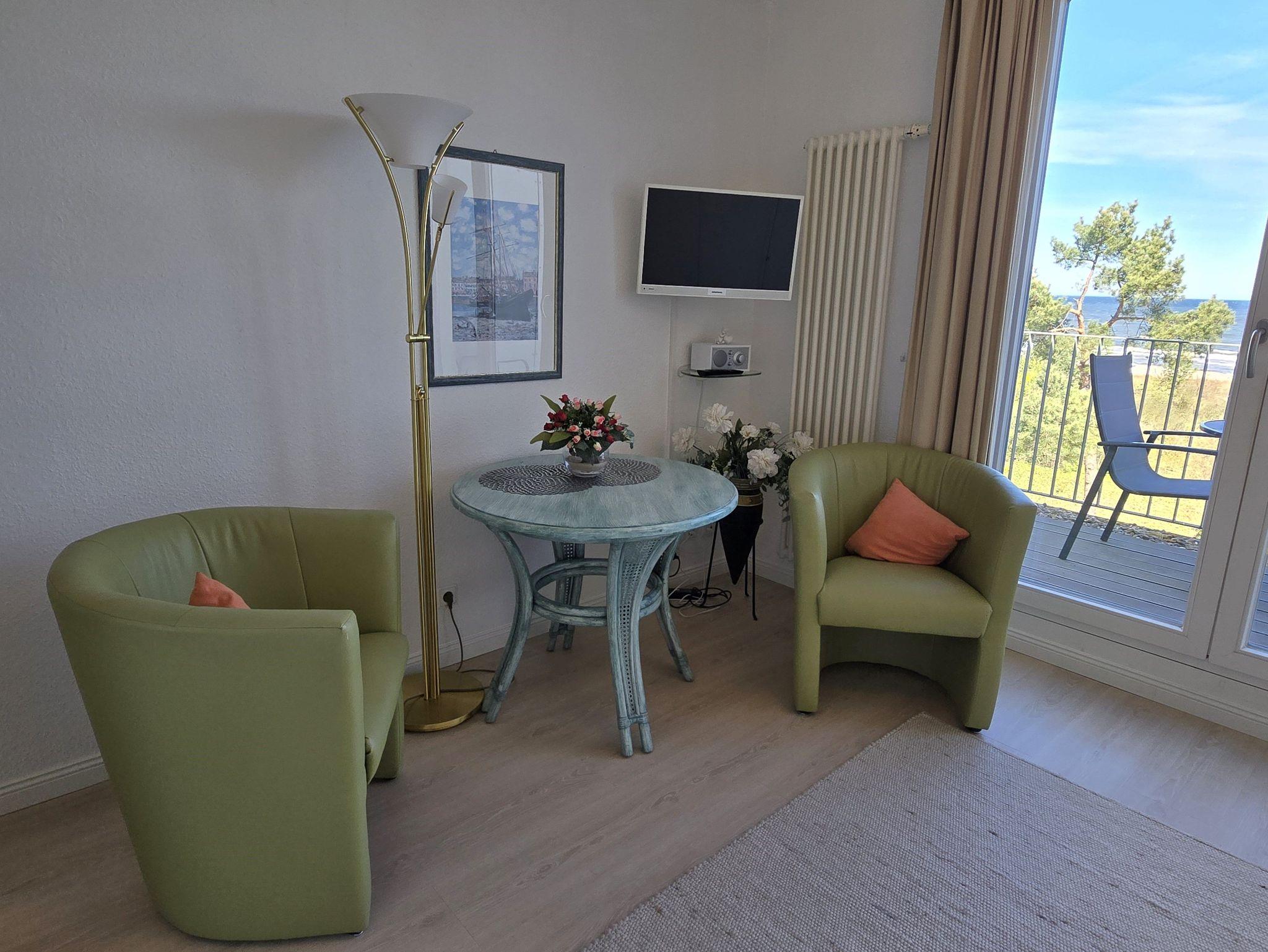 Komfortables, modernes Appartement (30 qm) in der 3. Etage mit Balkon und einem herrlichen Meerblick. Ein kombinierter Wohn-u. Schlafraum, einer Küchenzeile (mit Geschirrspüler, Mikrowelle, E-Herd, Kühlschrank, Kaffeemaschine etc.), W-Lan, Kabel-TV, Radio, Safe sowie ein Bad mit DU/WC + Haarfön. Parkplatz. Die Erstausstattung Bettwäsche und Handtücher ist inklusive.
